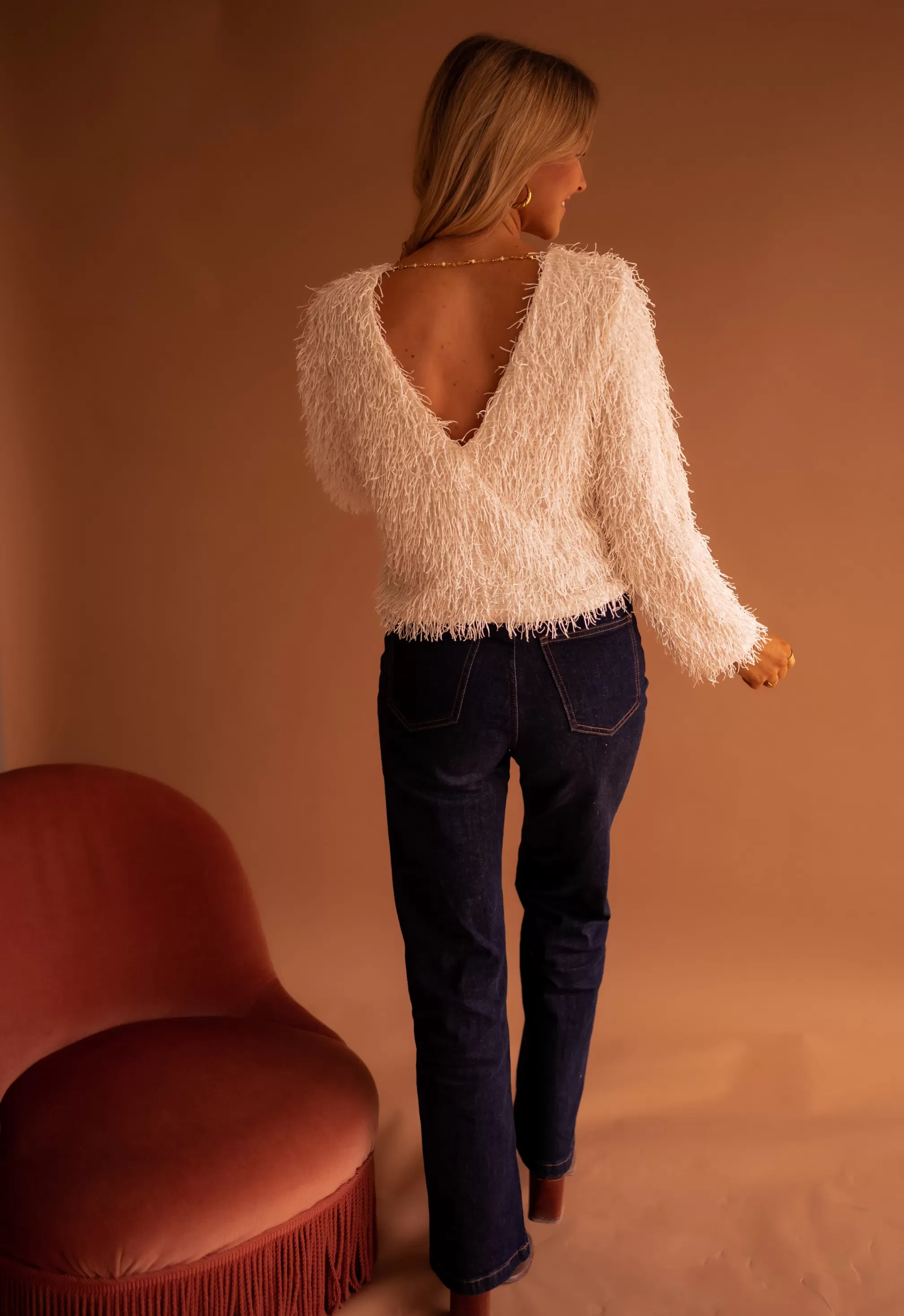 Deep neckline in the backRemovable silvery chainsBackground slightly glittery Ecru thread…