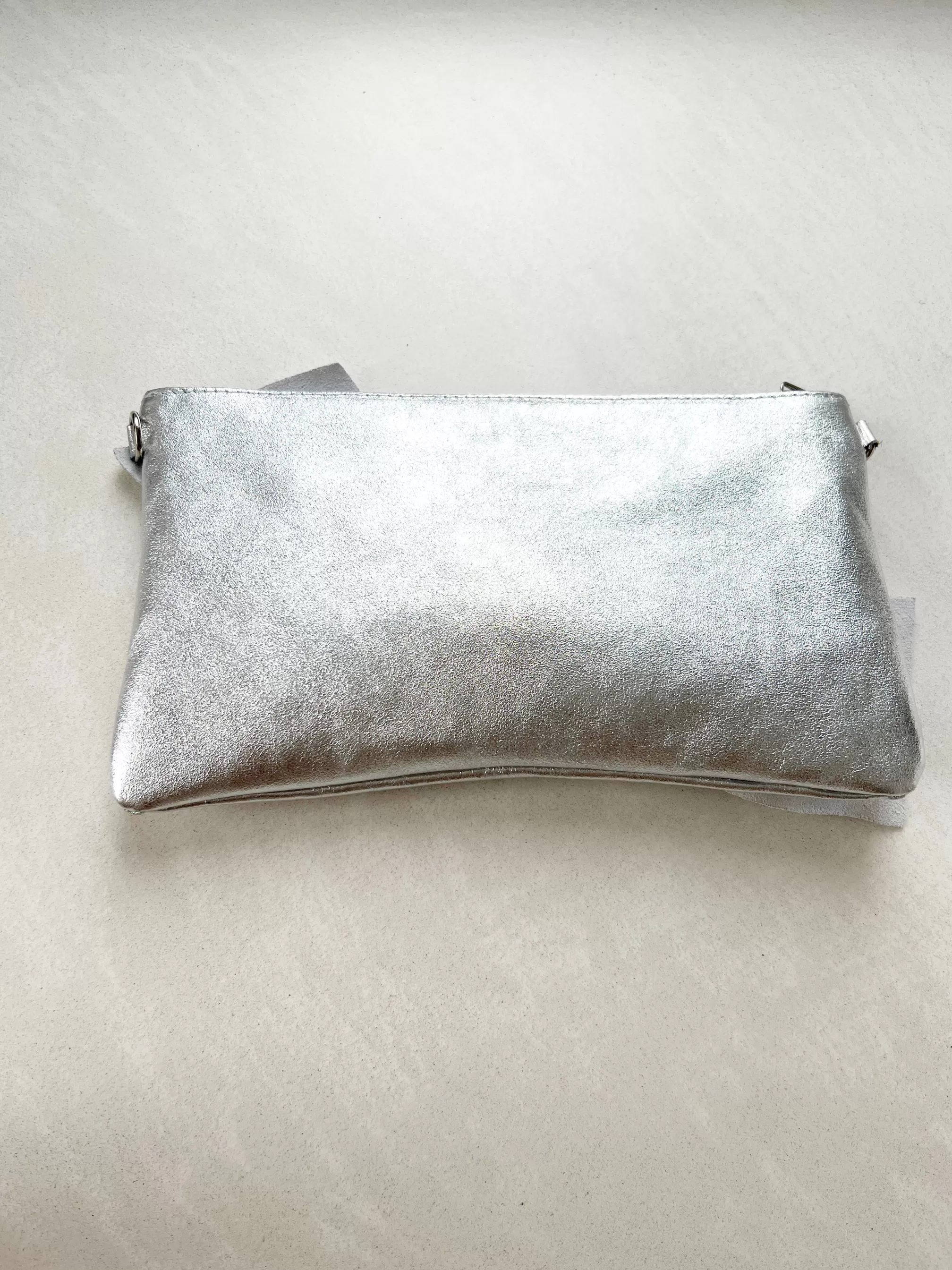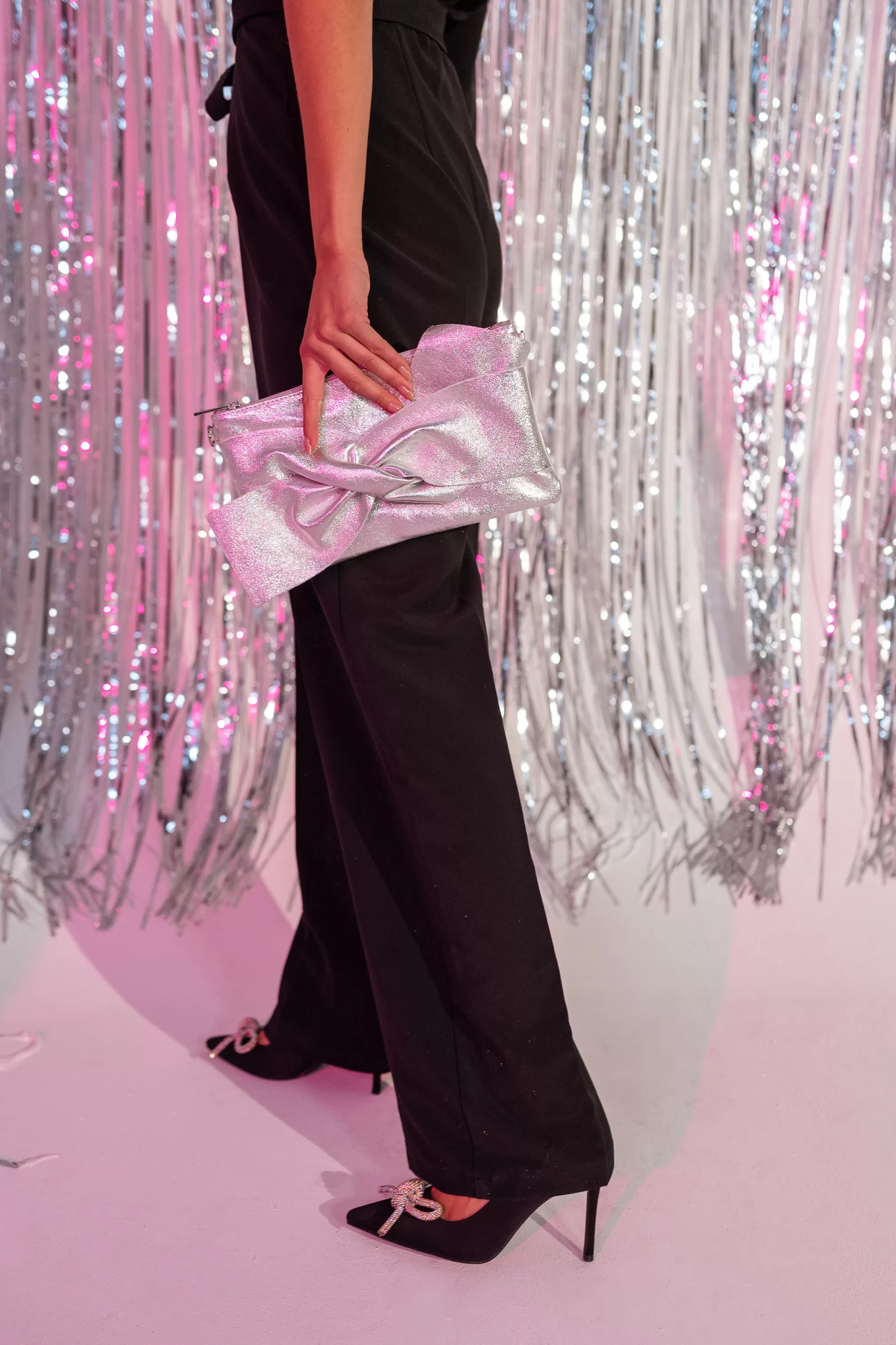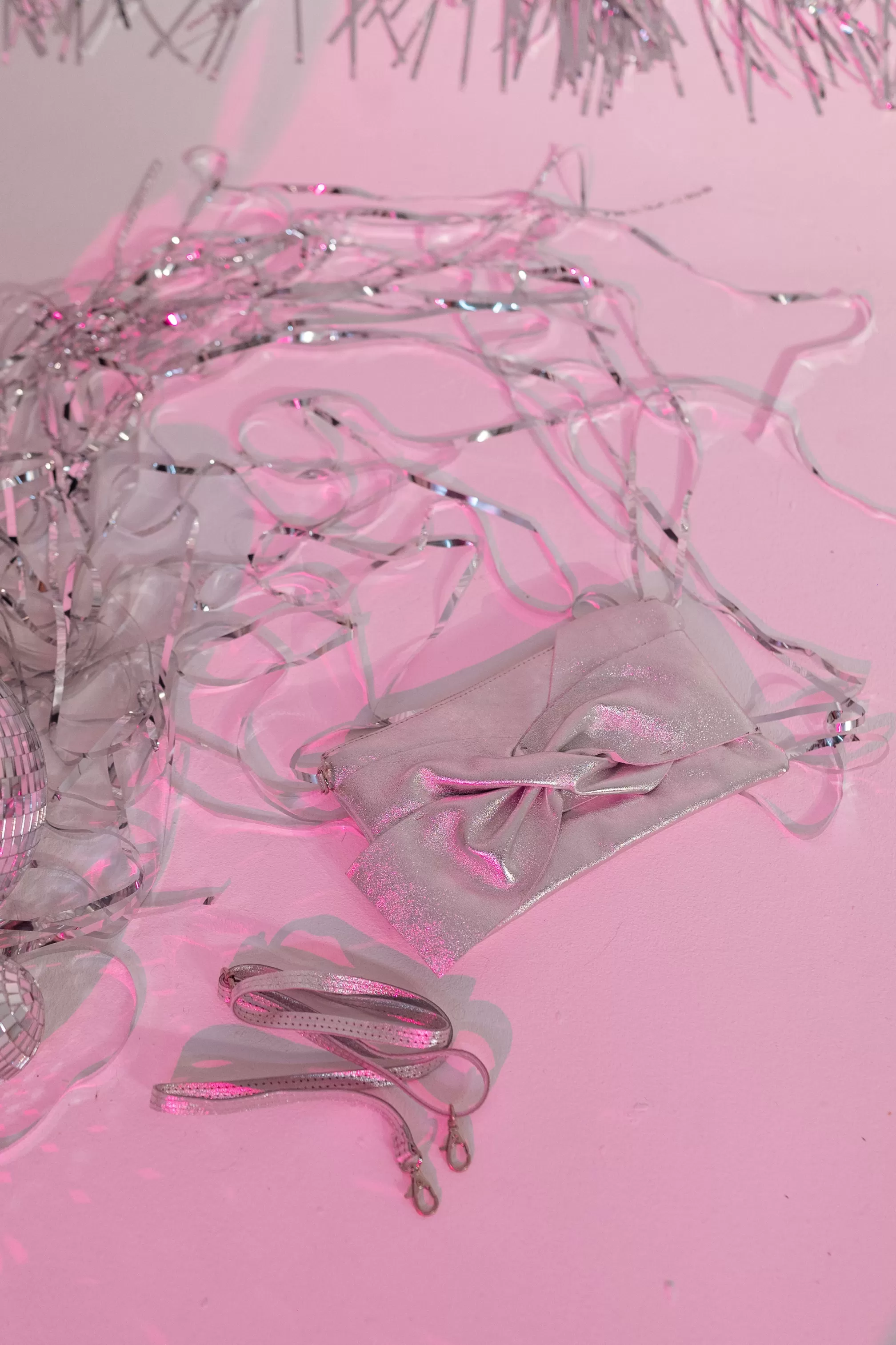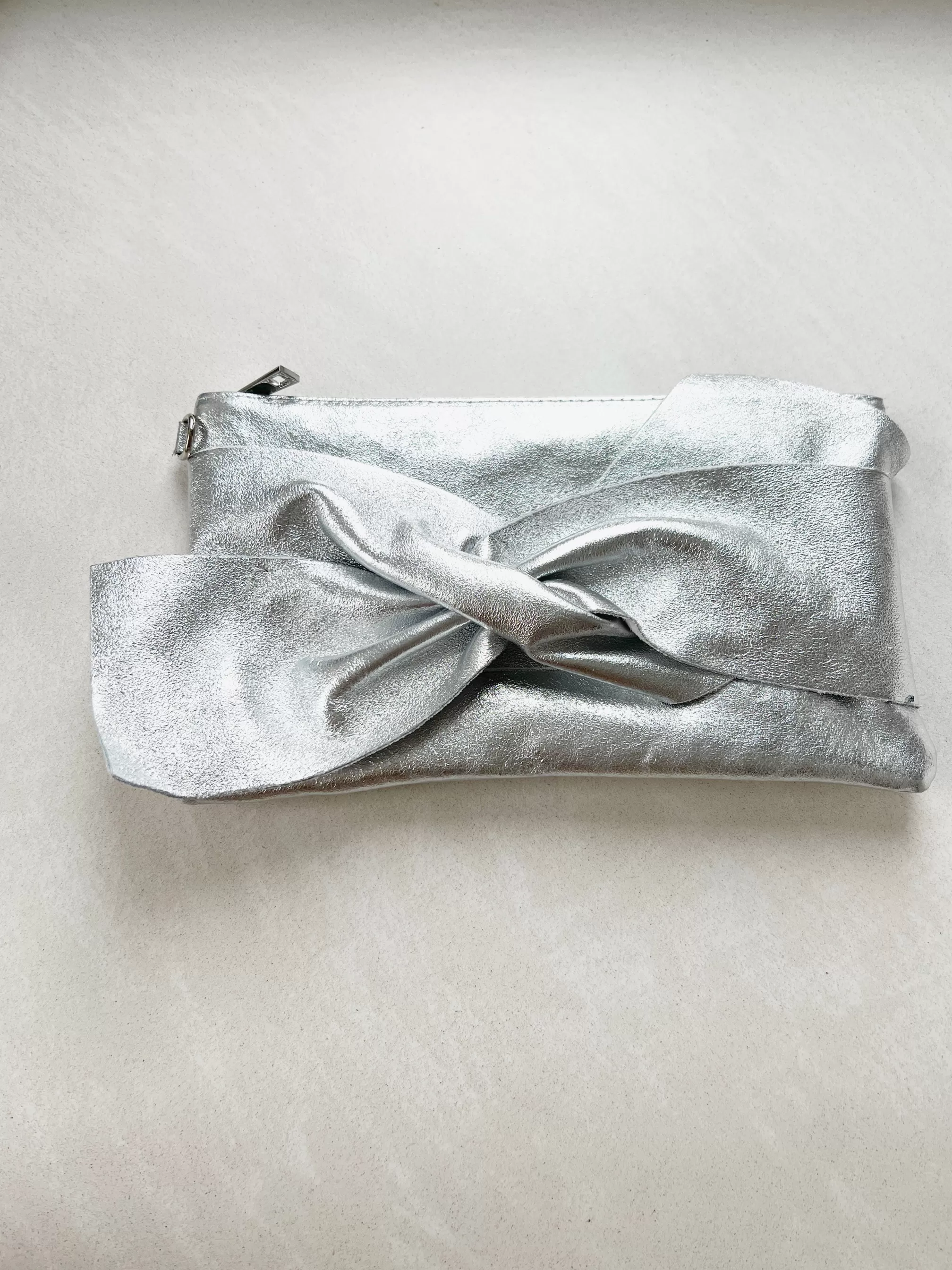 Rectangular pocket Bow on the front Bag strap furnishedSilvery finishLength 28 cm – …