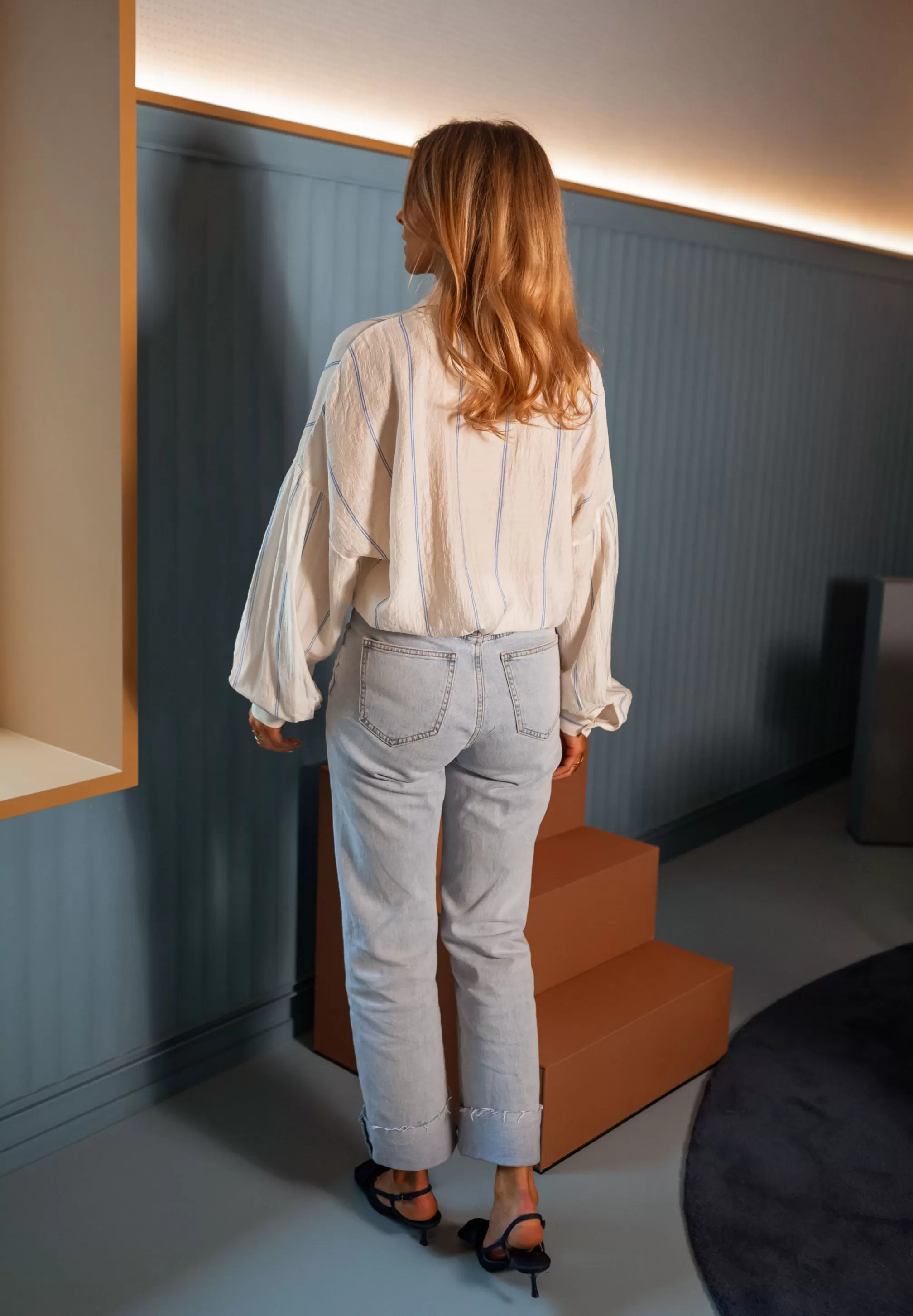 Shirt collarLong sleevesOphelie is 1m68 and wears a size S-MFluidBlue linesSizes : S-M / M-LS-…