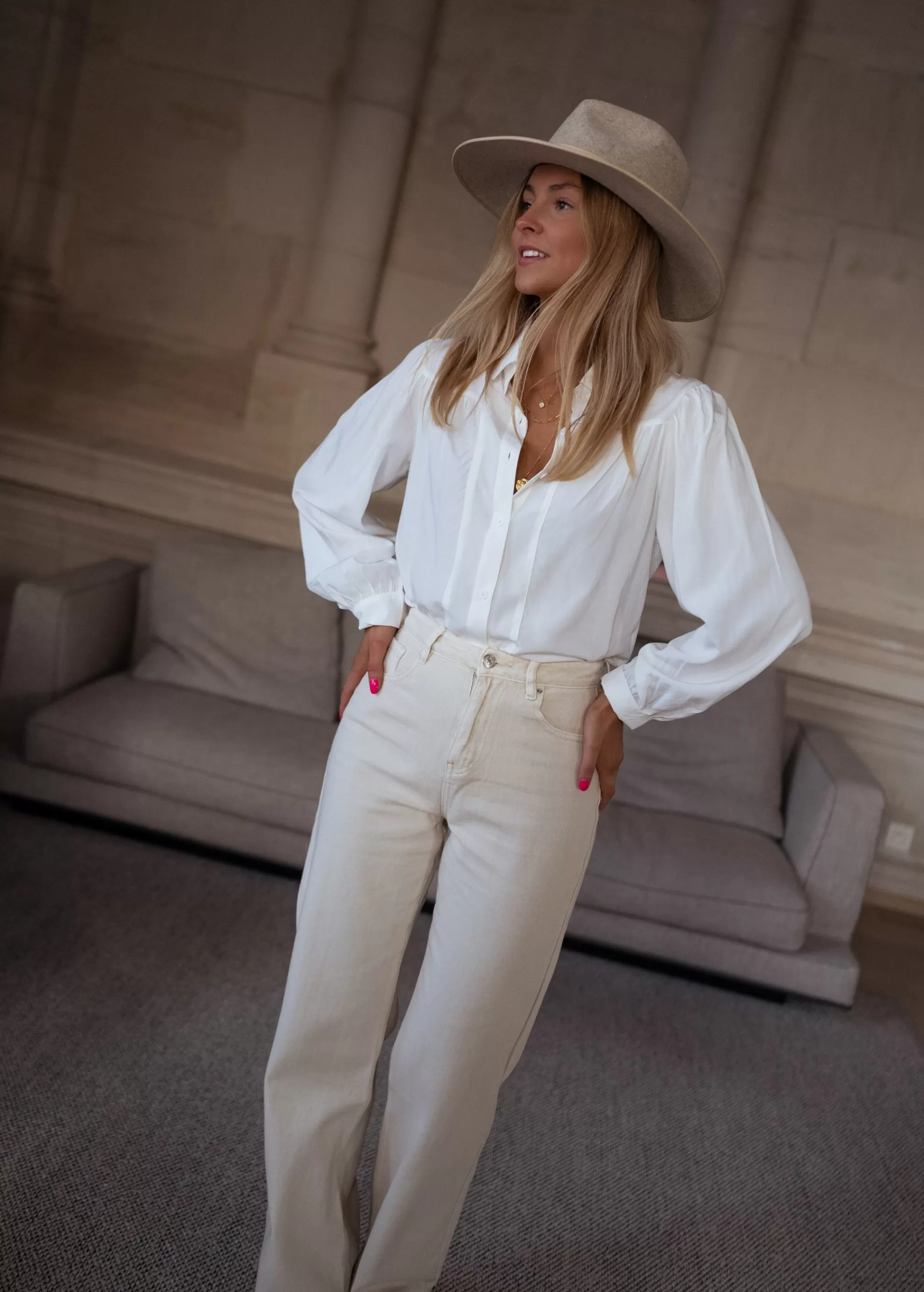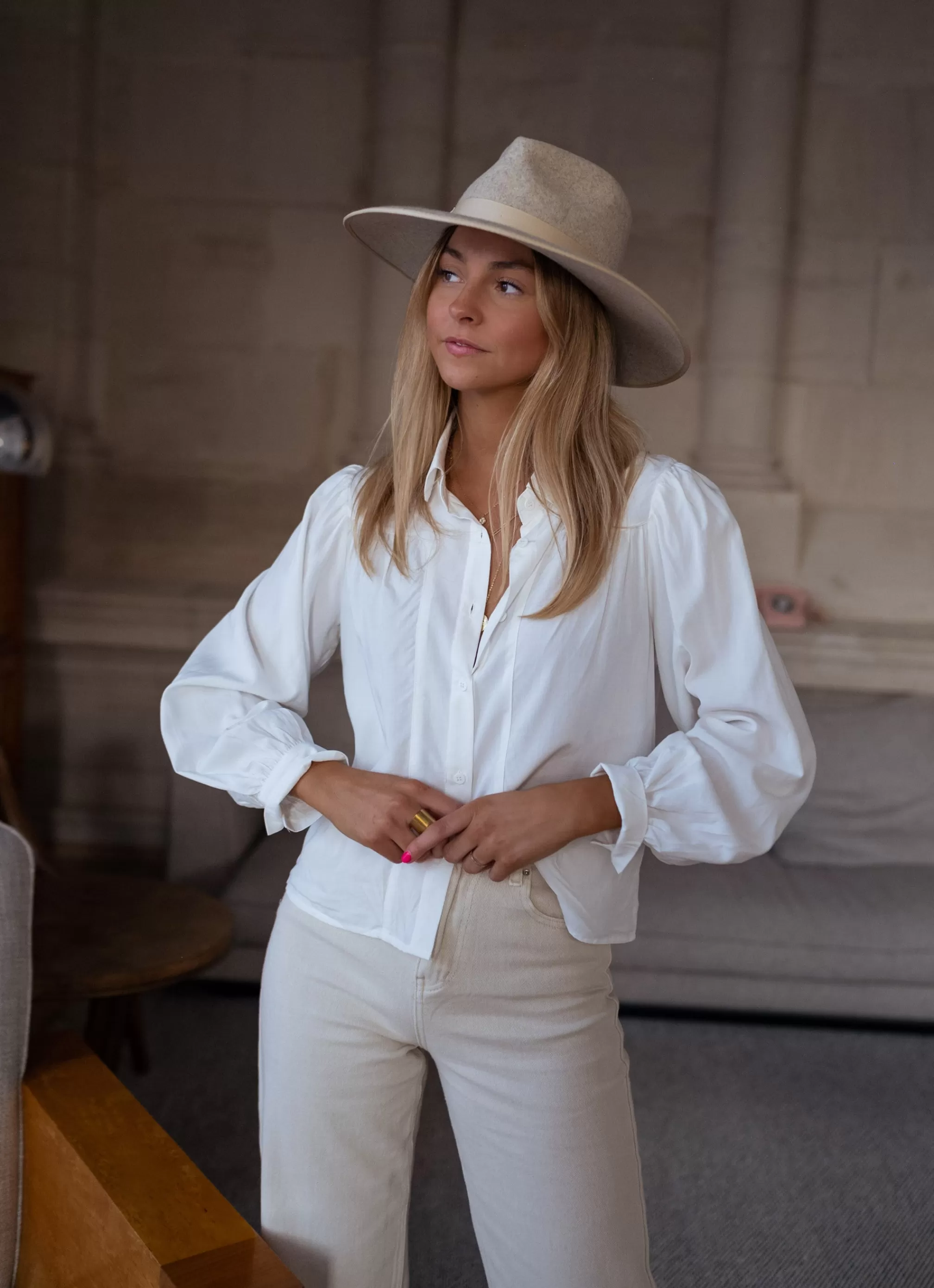 - Slightly balloon long sleeves