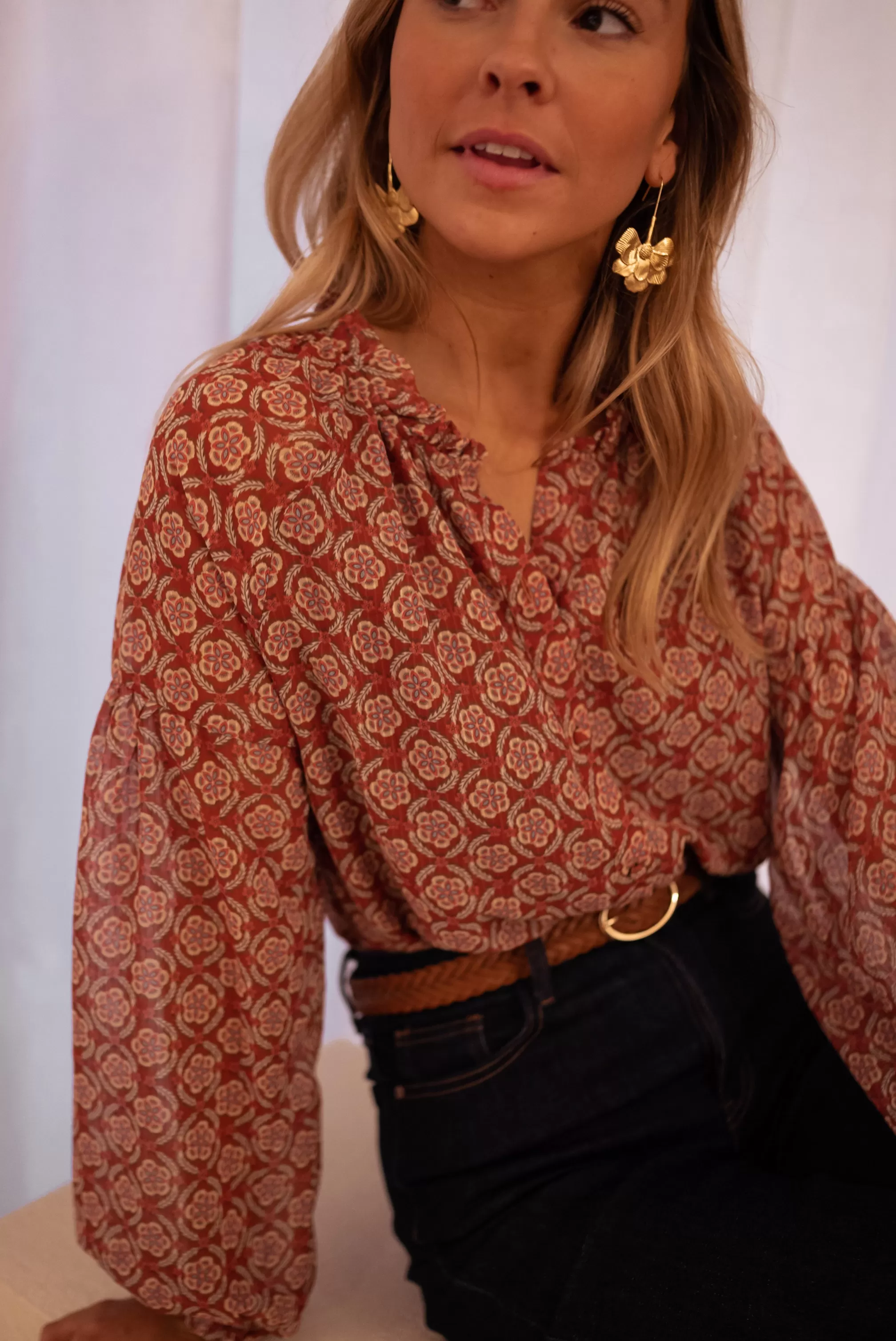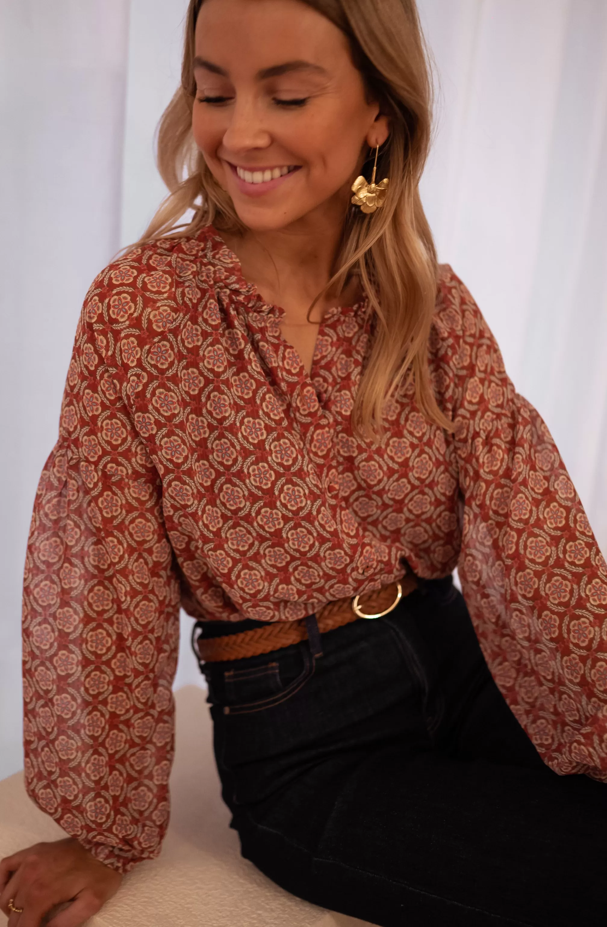 Patterned Blouse Juliana | Orange & Brunette | Women's Clothing | Summer 2023-Easy Clothes Clearance