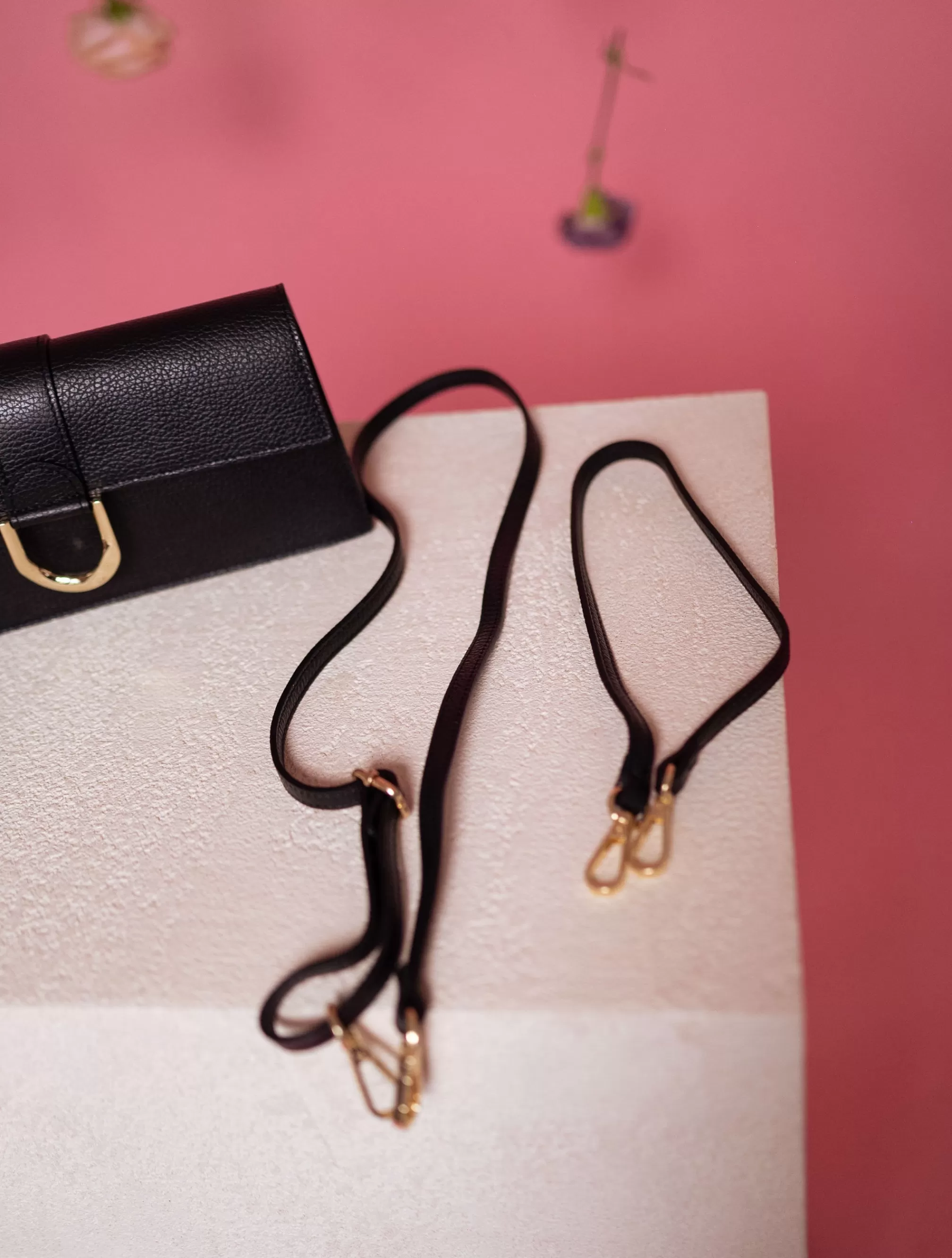 Rectangular shapeGolden buckleTwo straps provided : one short / one longColors : black Le…