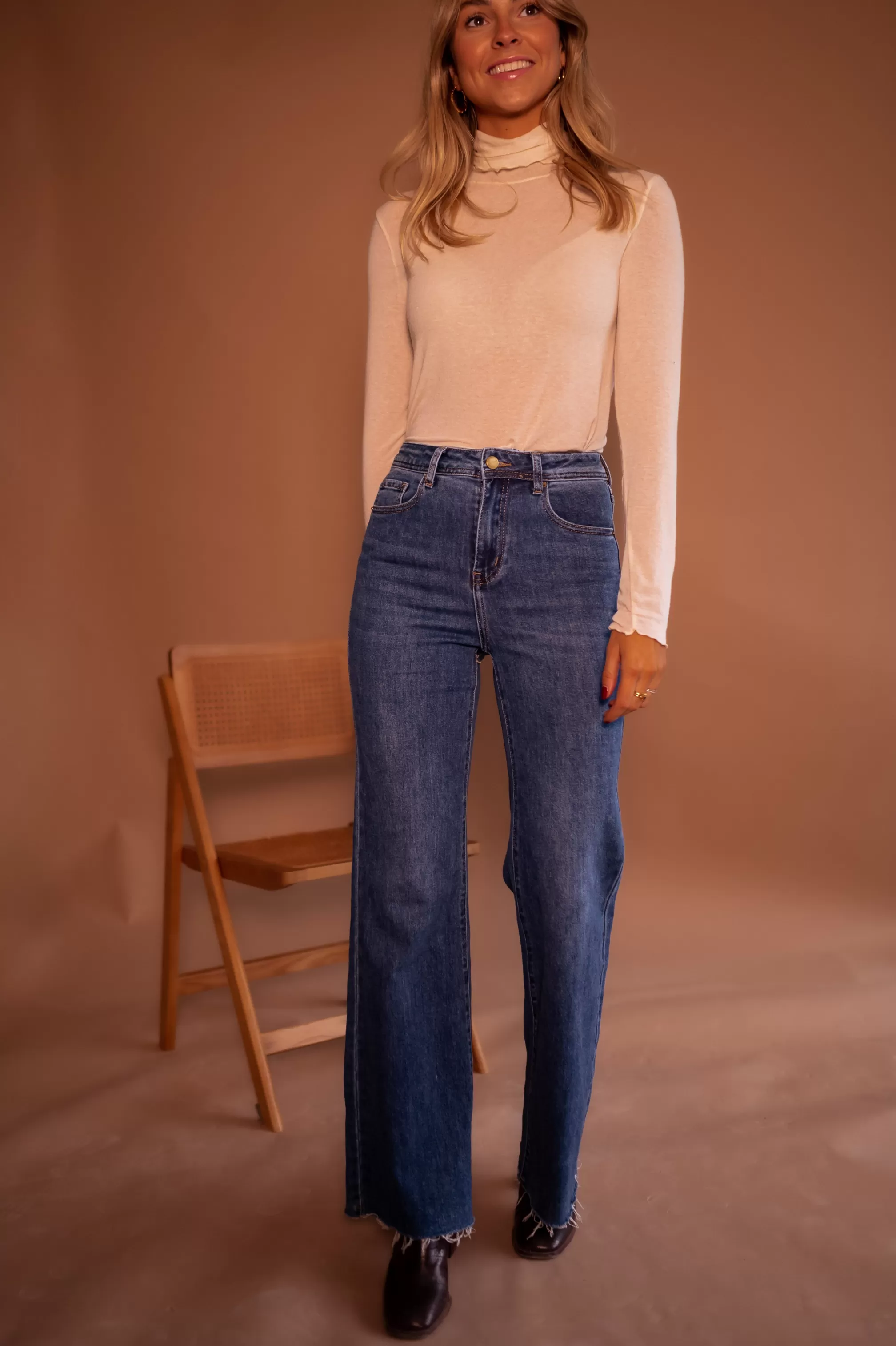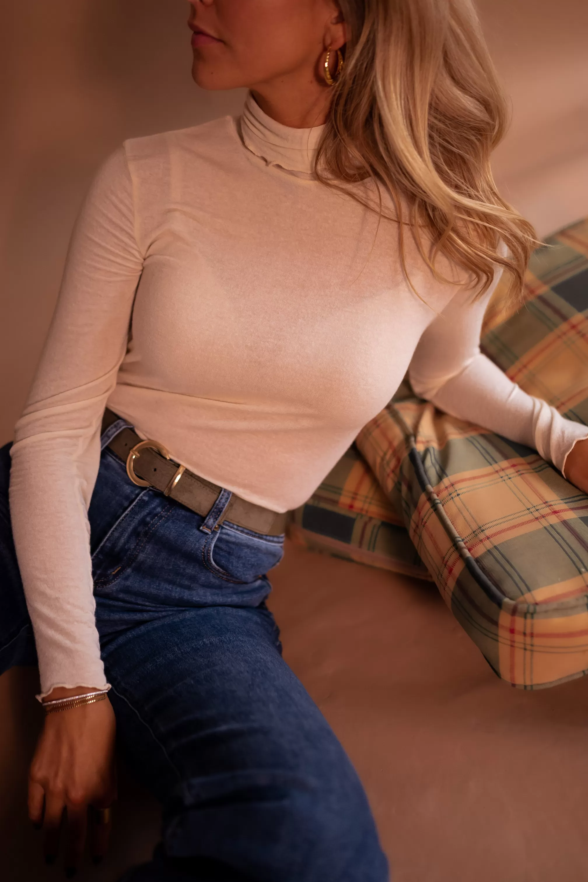 Soft, cashmere mixThin and light topIdeal to wear under a sweaterMockneckSlightly transparent&…