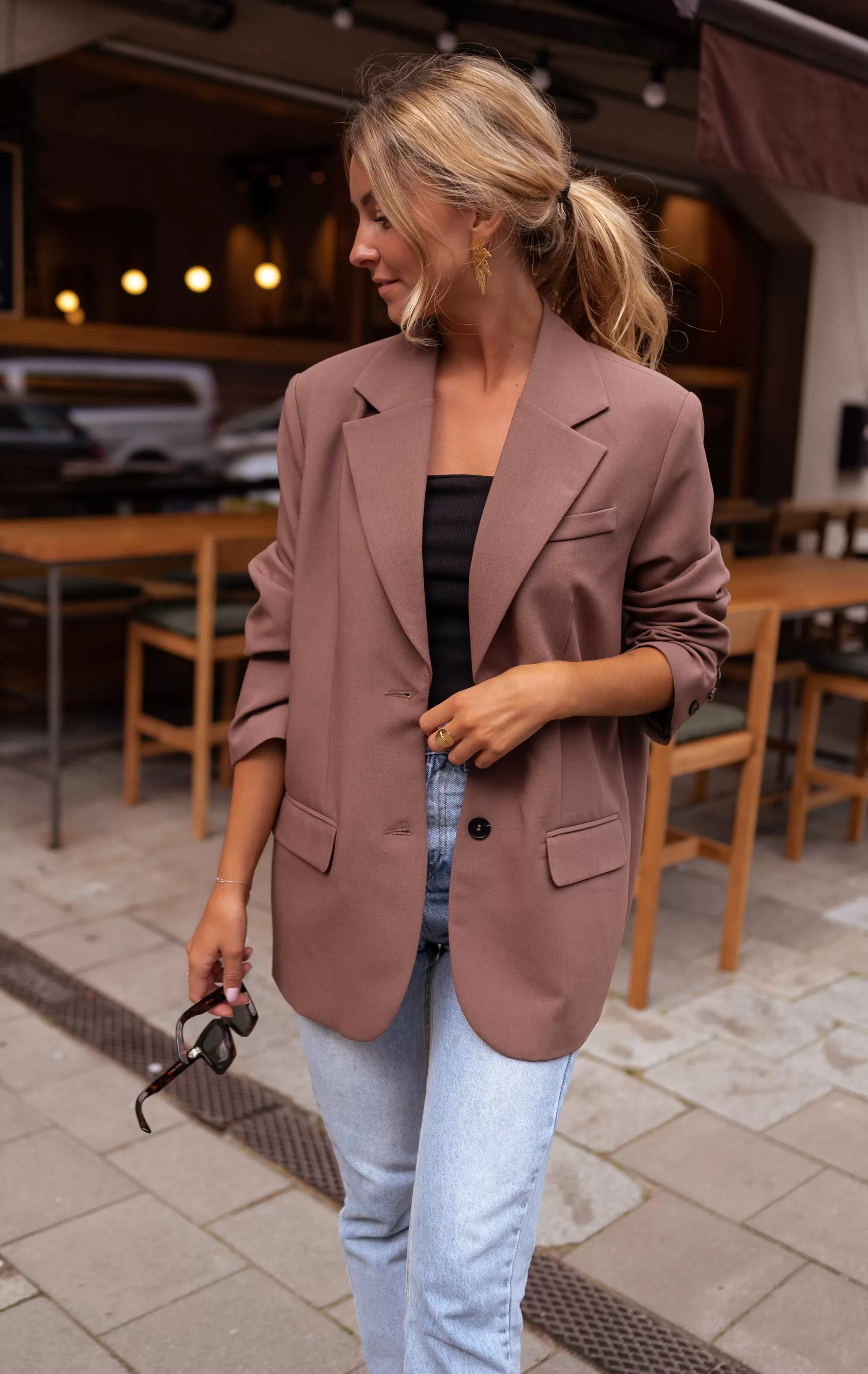 Loose fit Black buttons Shoulder pads Long fit Ophélie is 1m68 and wears …