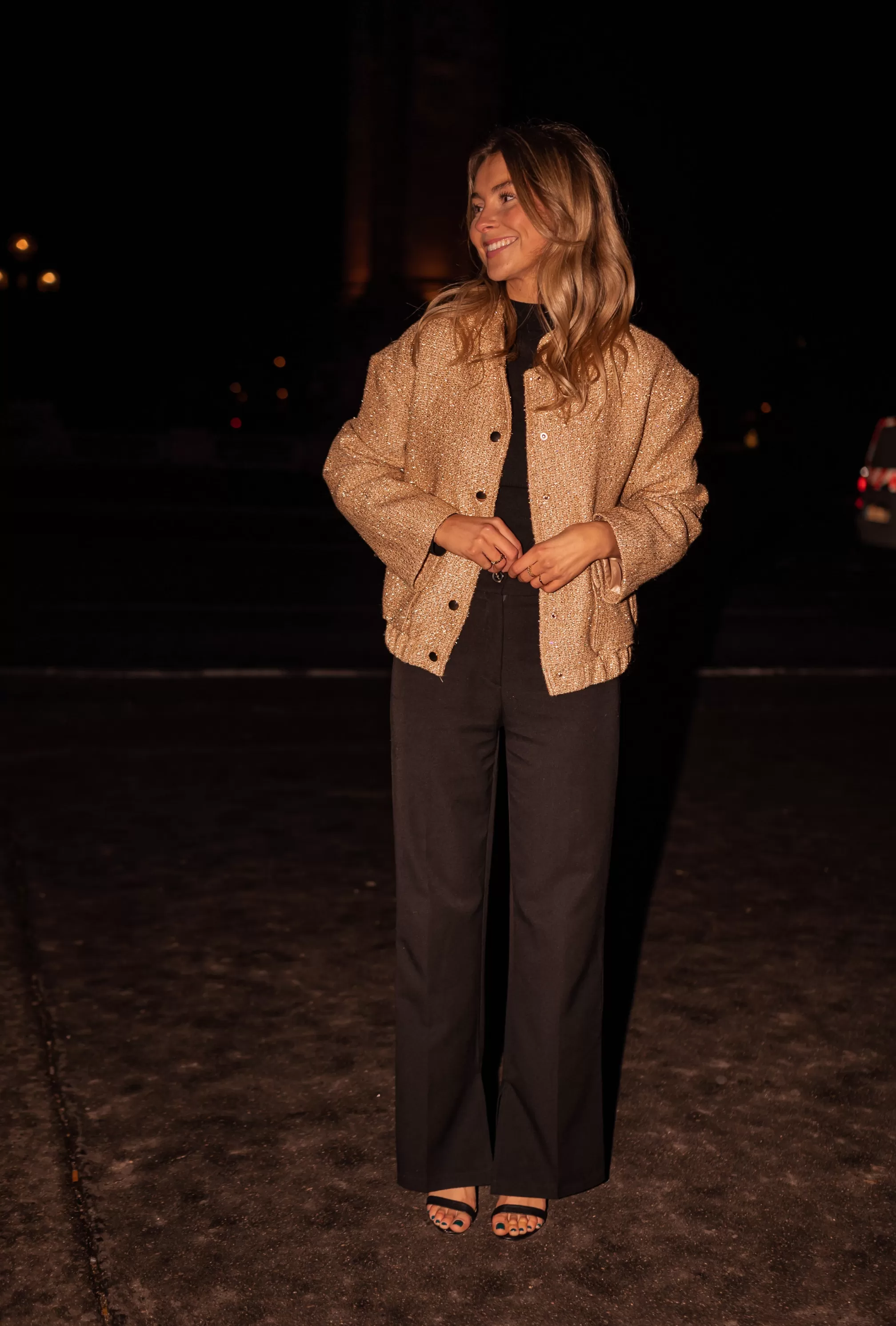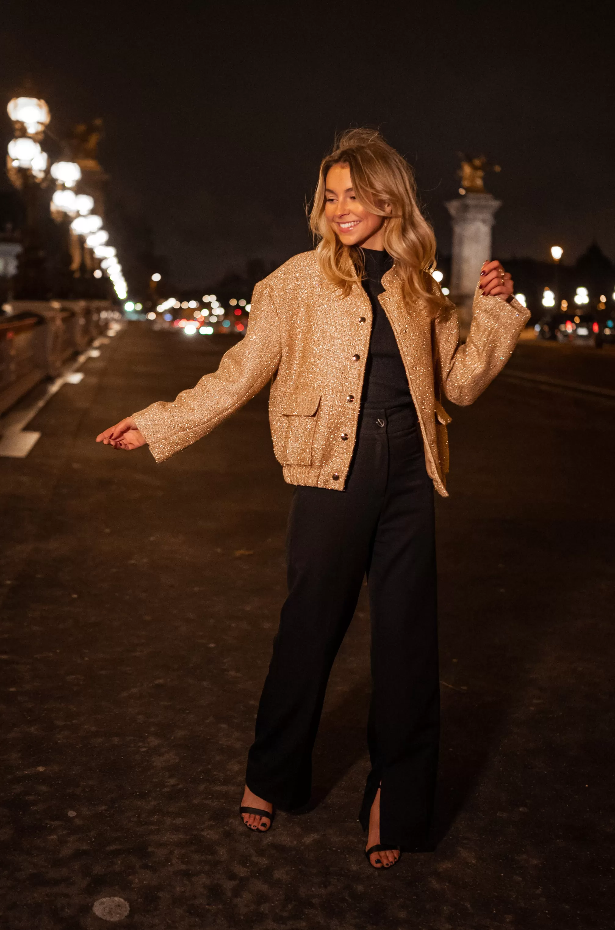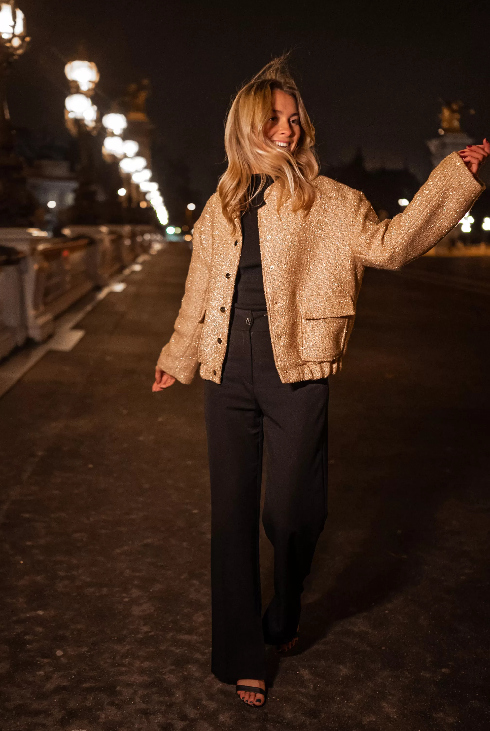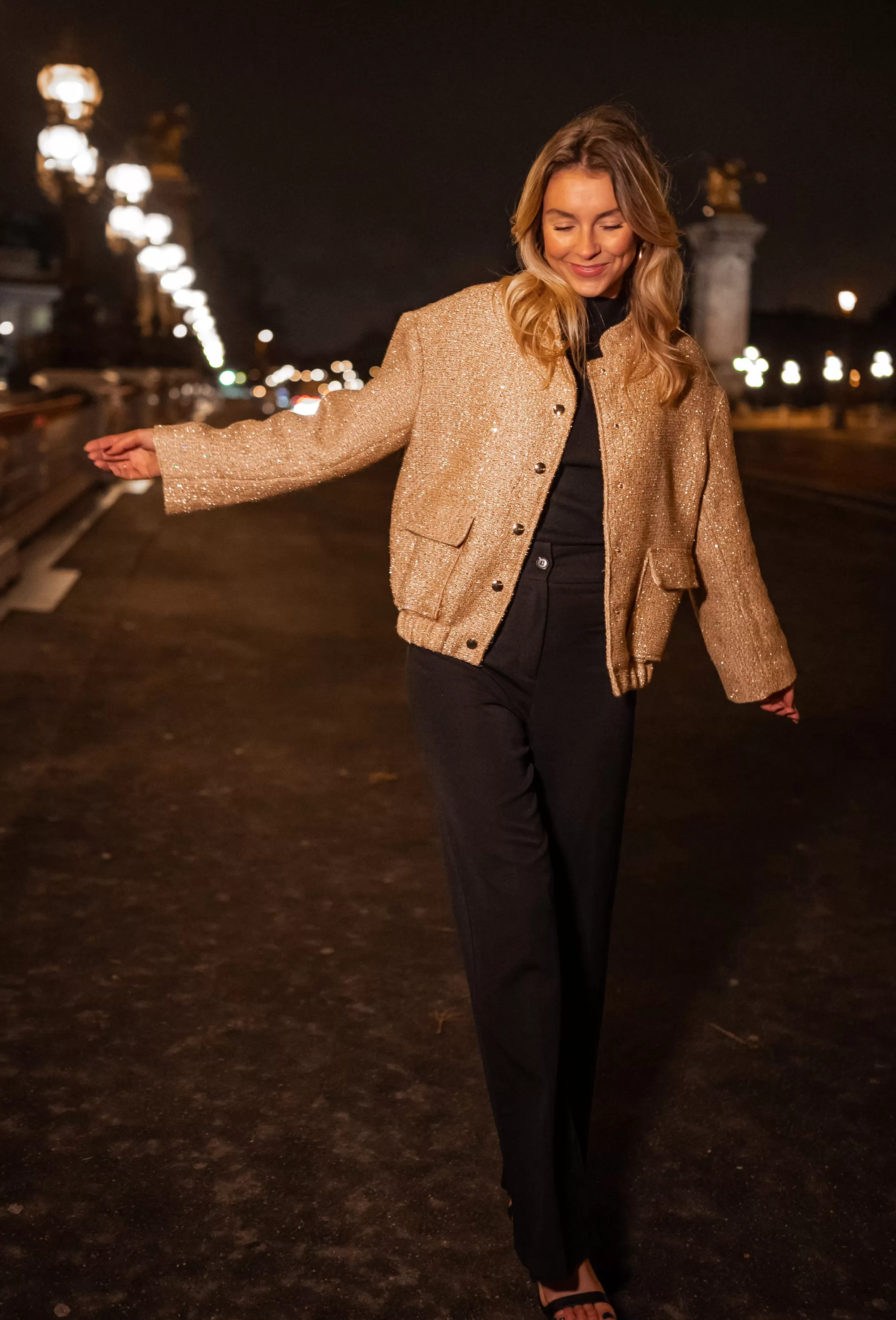 - Golden glitter on the entire bomber