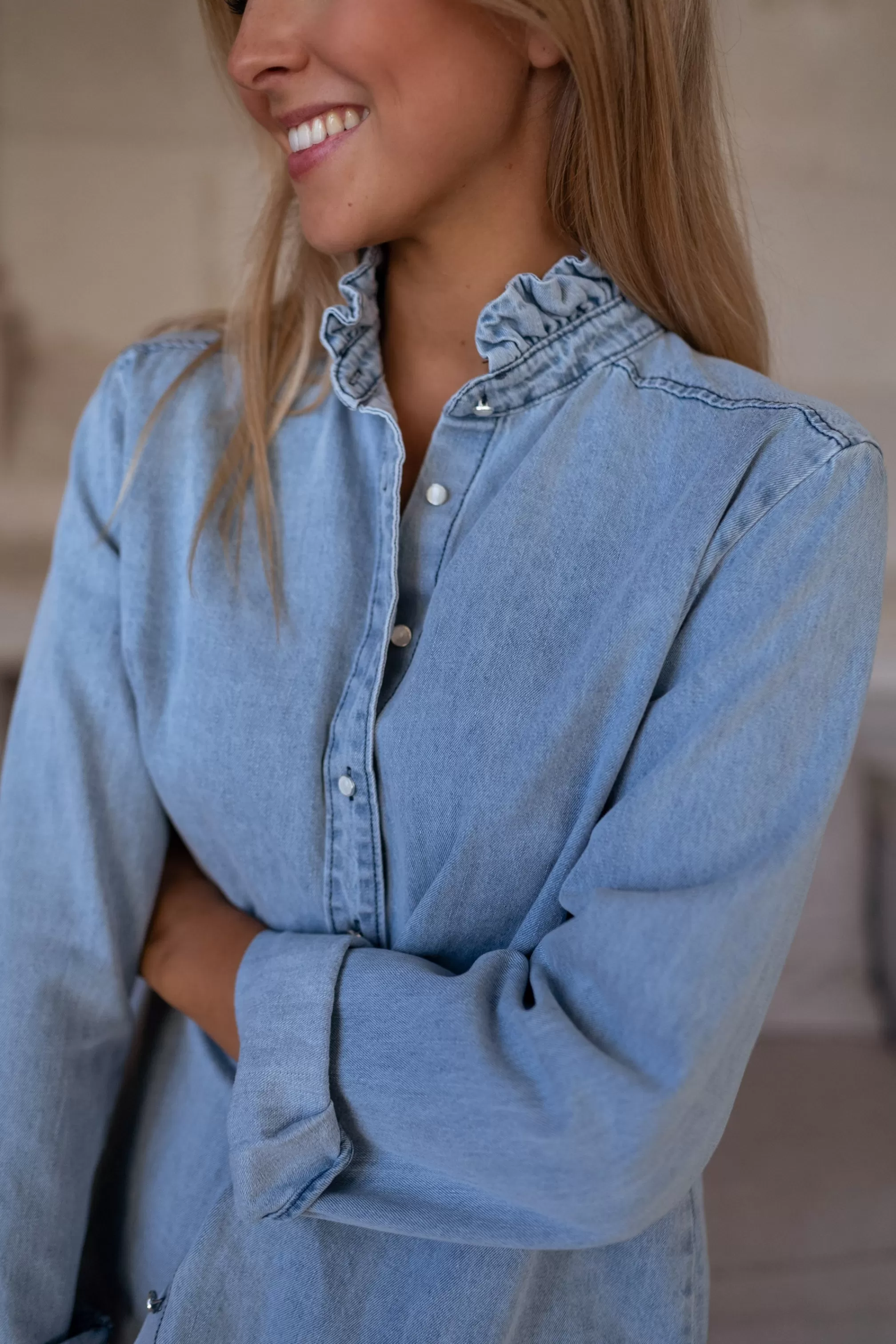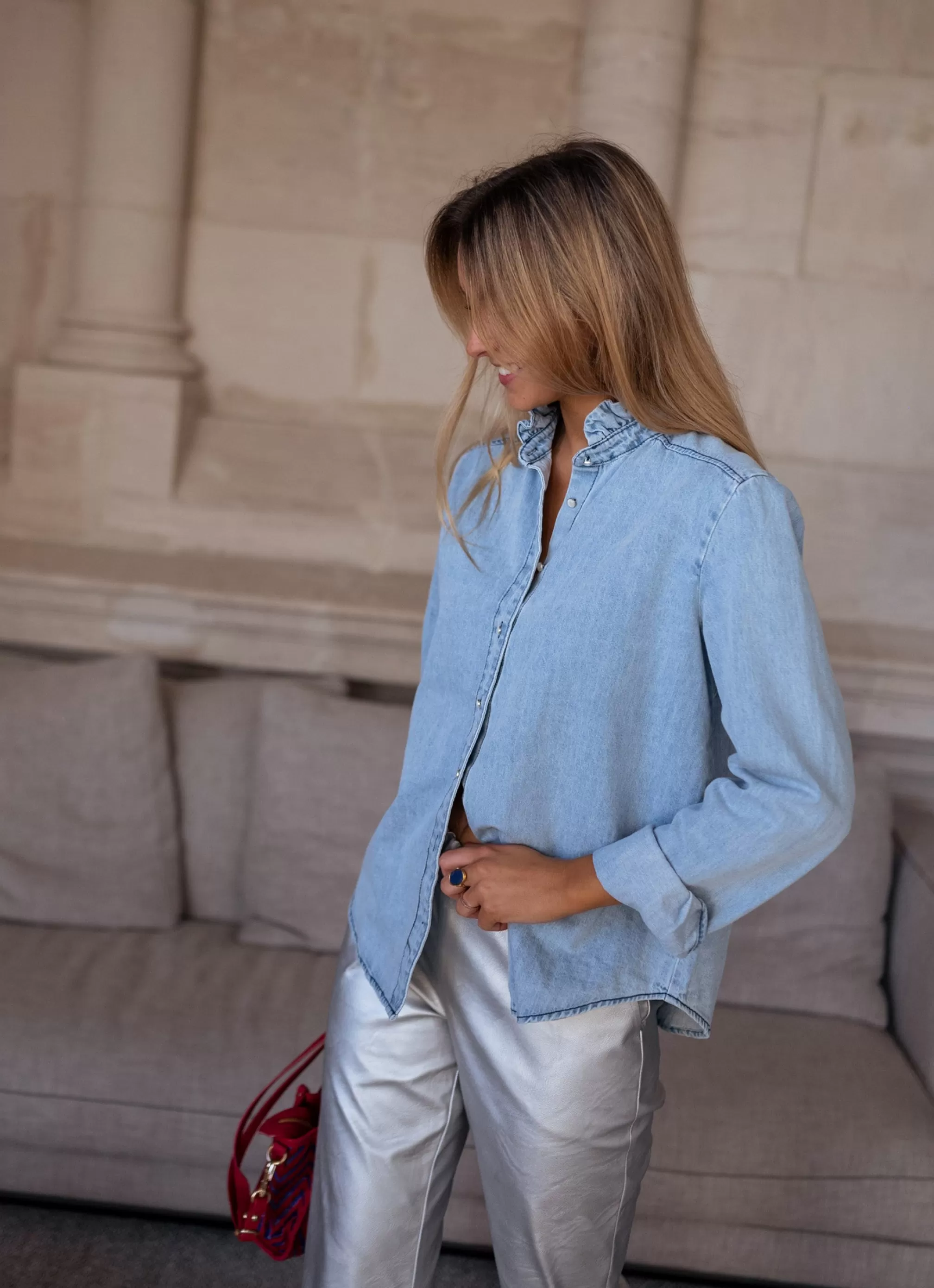 Long sleevesOphélie is 1m68, Larissa is 1m74 and they are wearing a Size SDenim shirt Ruffles…