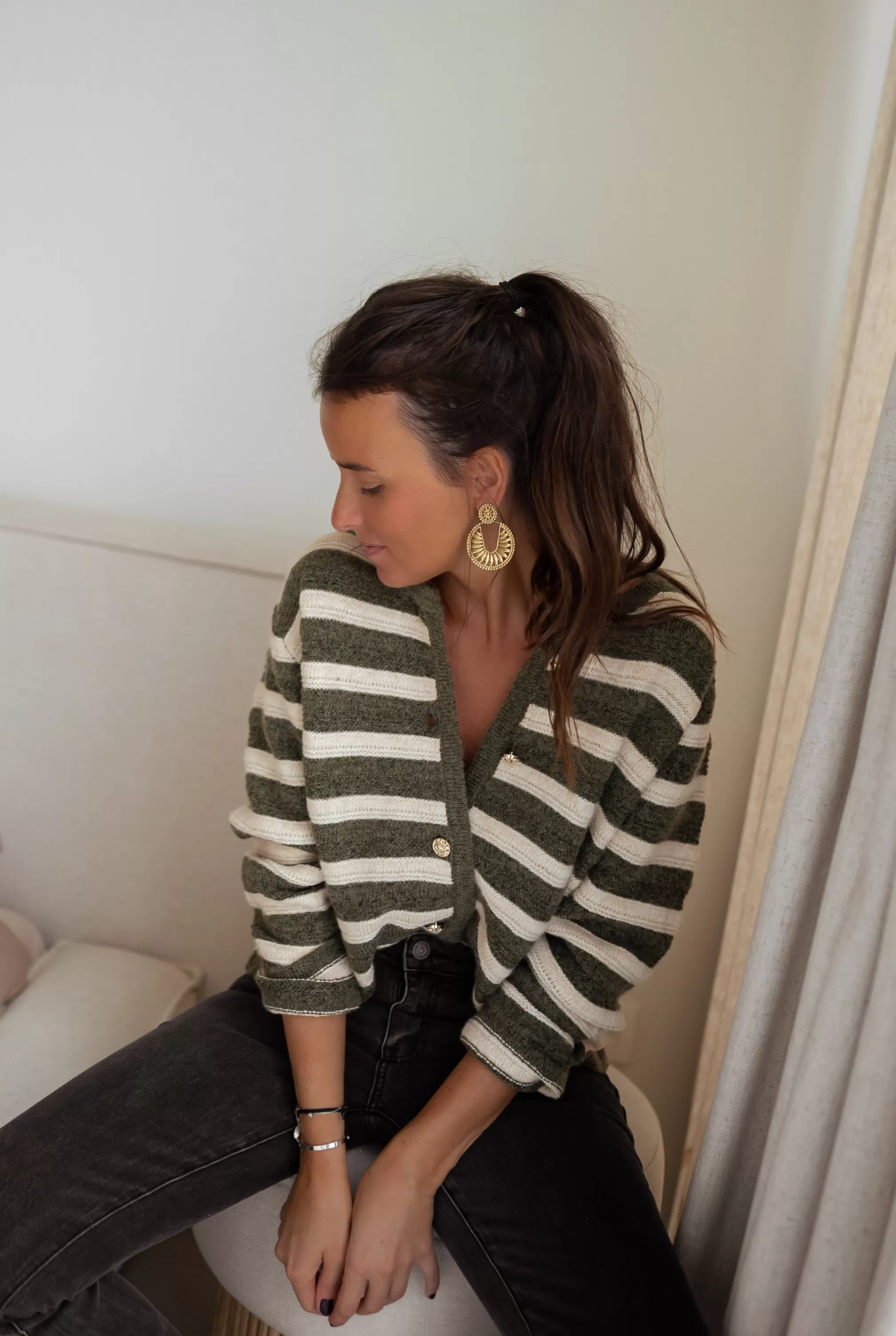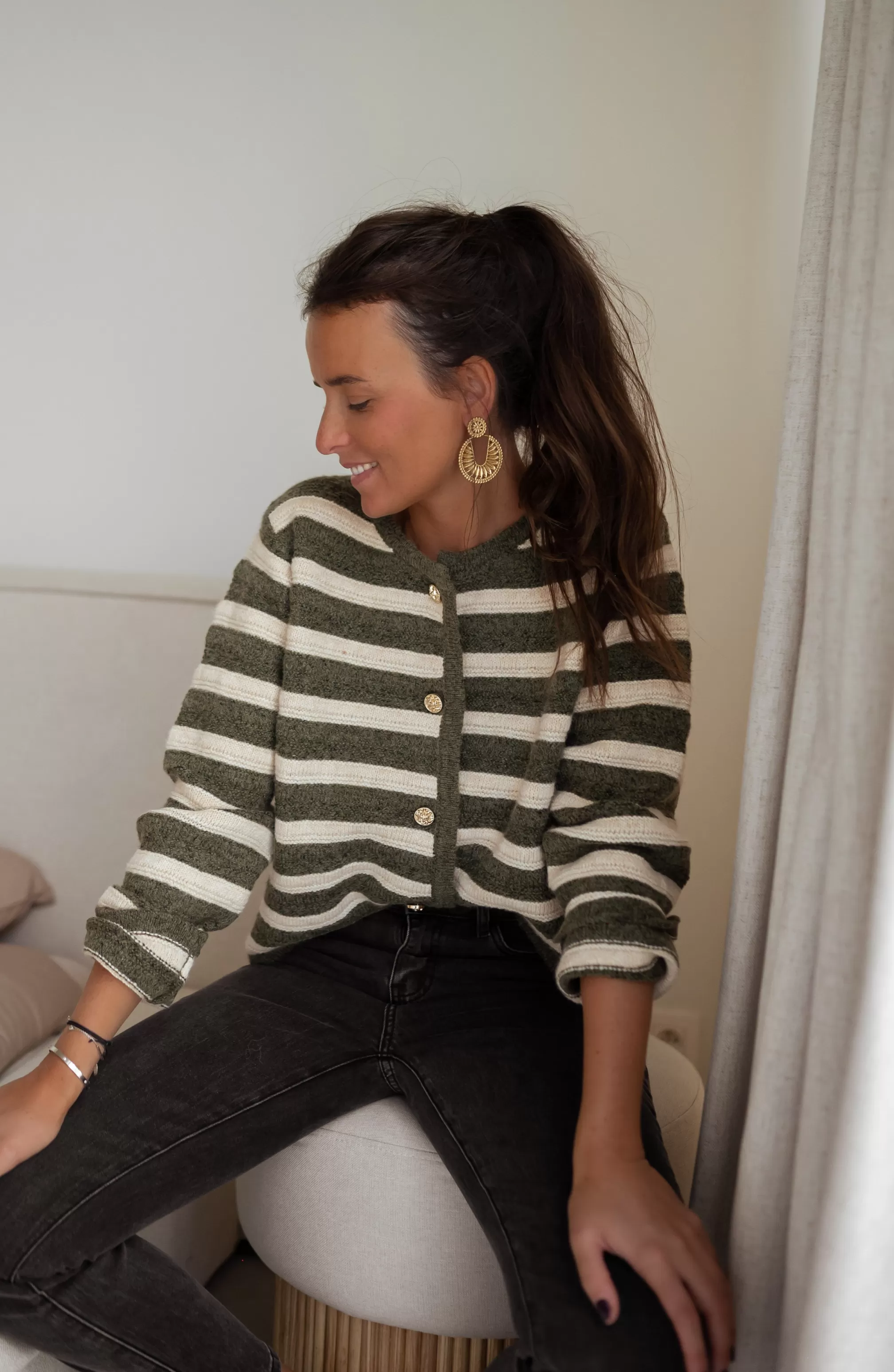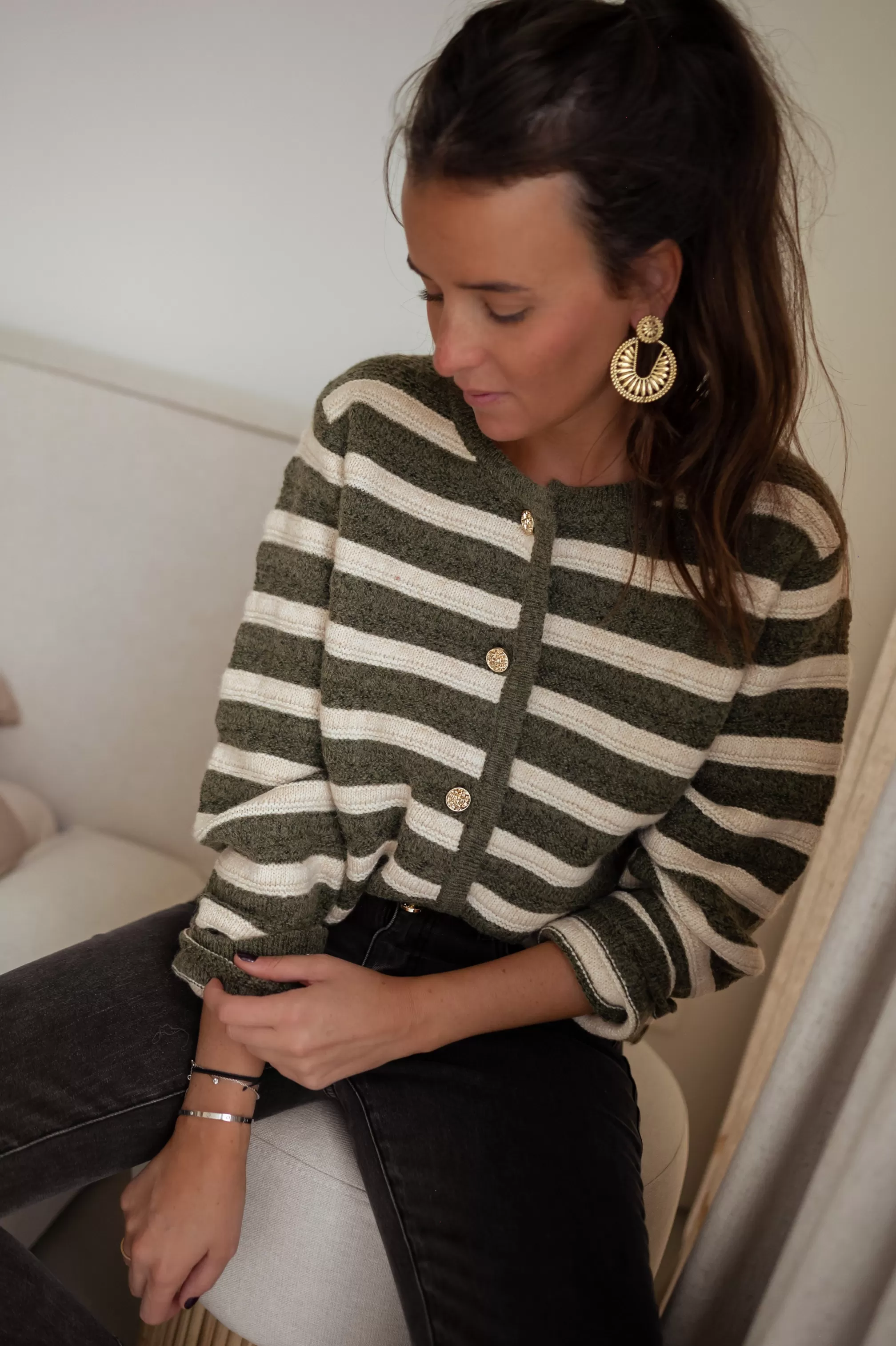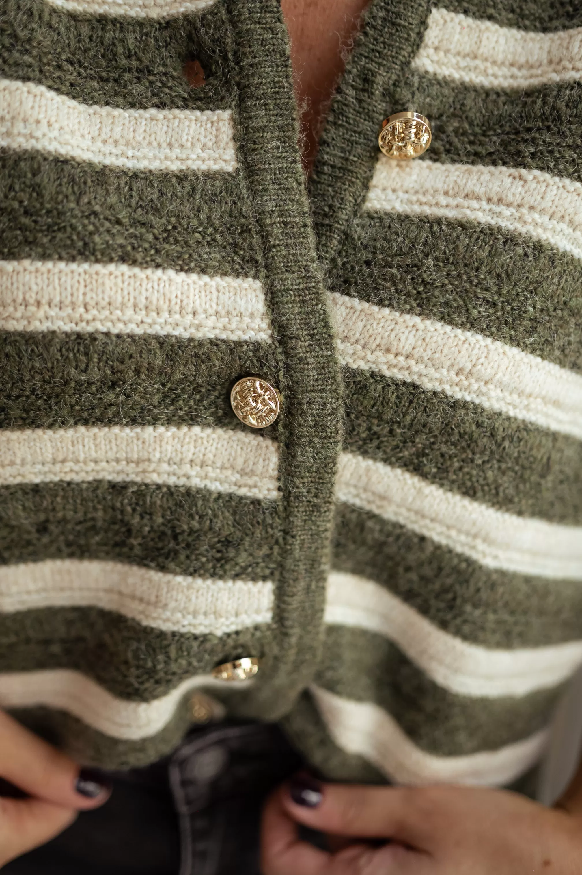 Long sleevesSoftKhaki and beige linesGold buttons all along the vestDetachable buttonsONE SIZE…