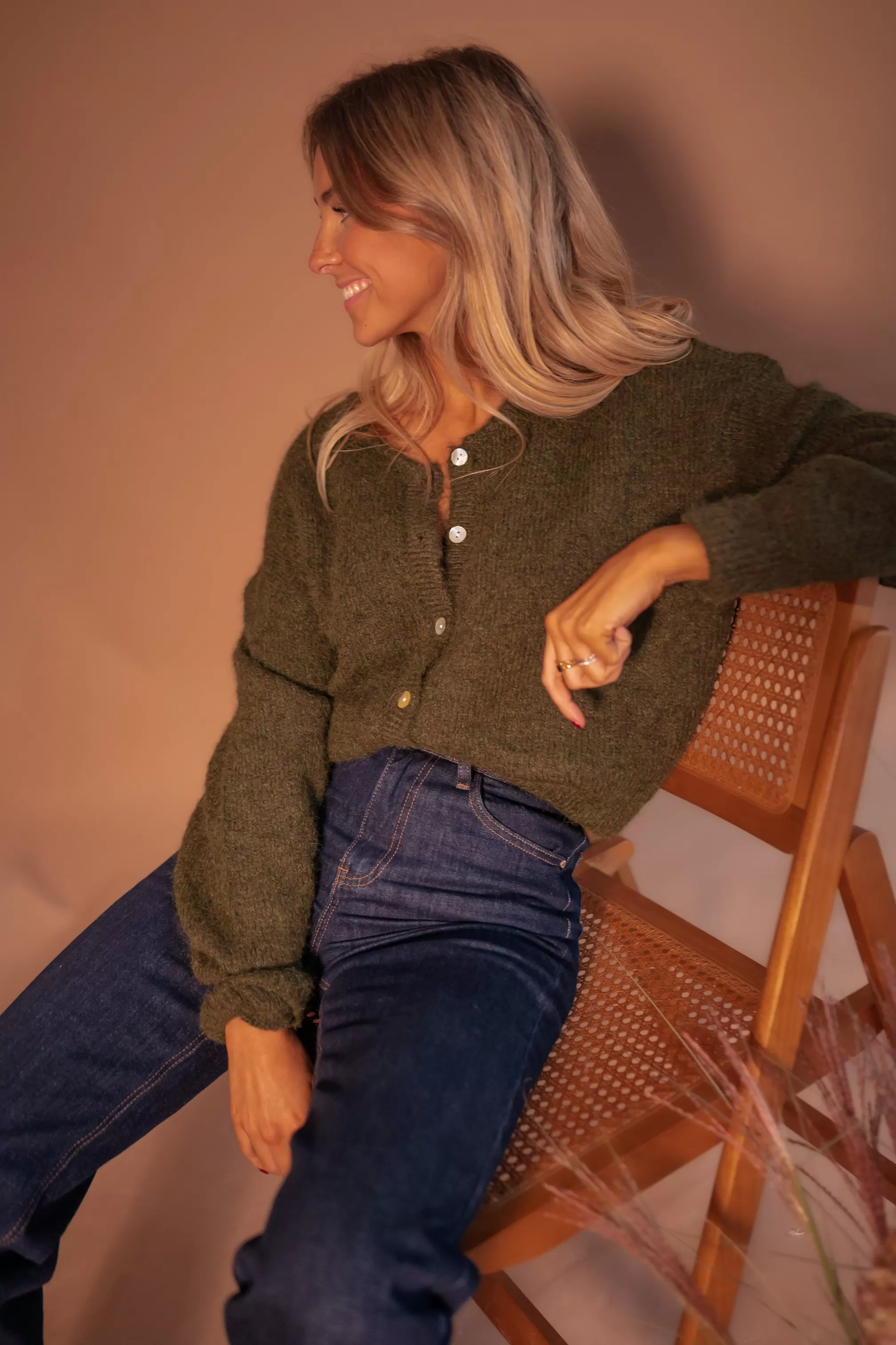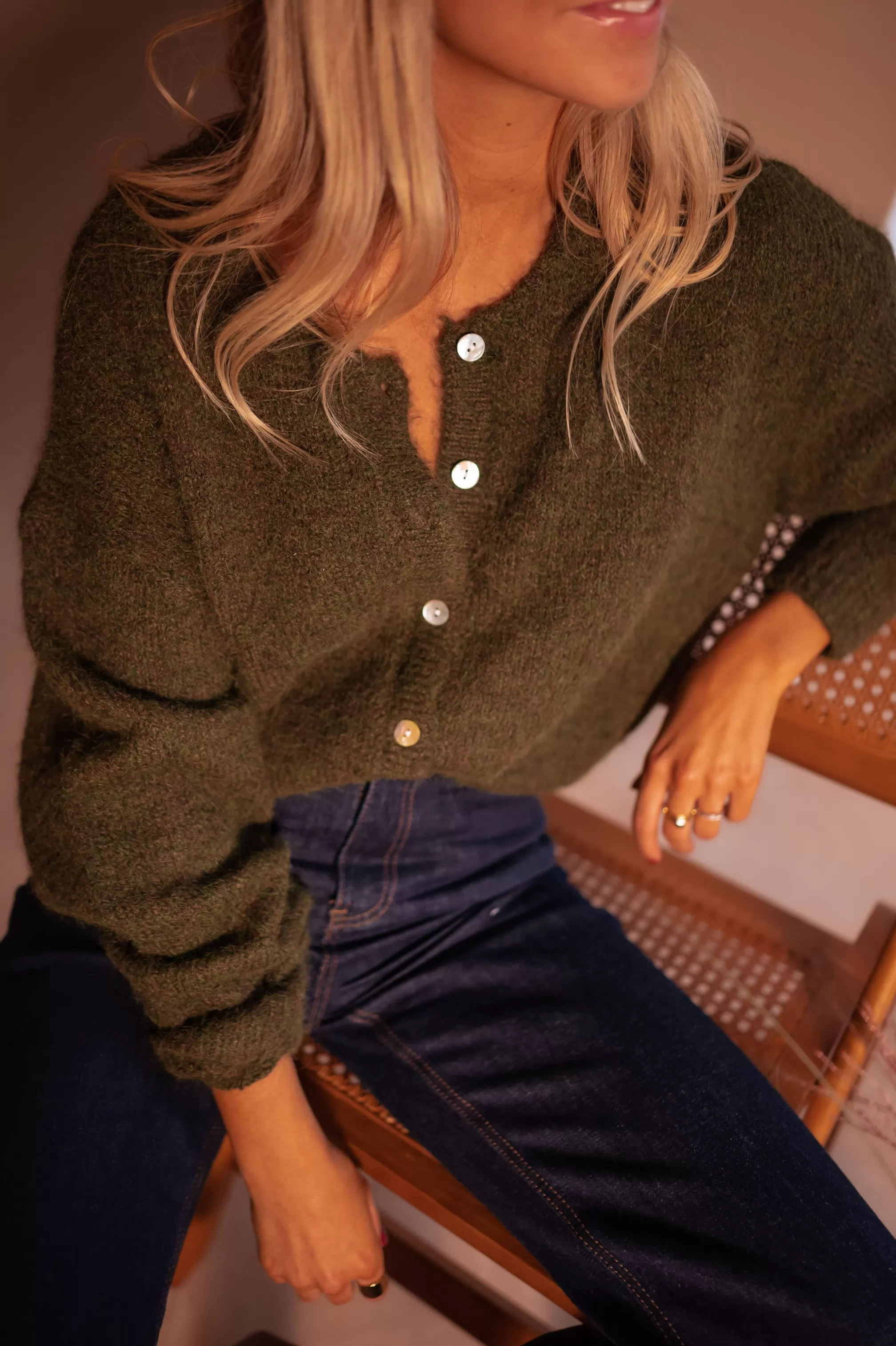 - Pearly buttons all along the cardigan