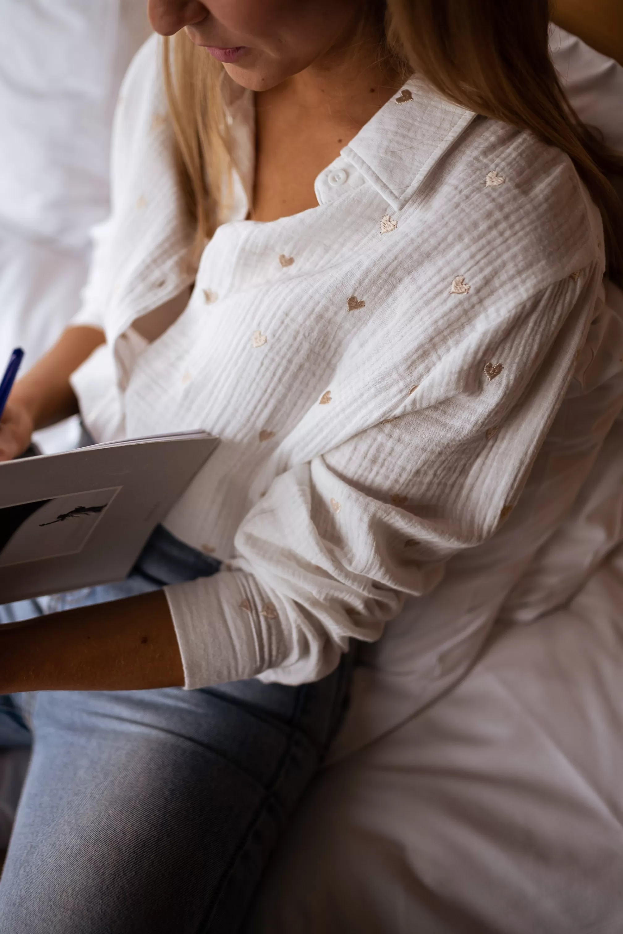 Shirt collarLong sleevesOphélie is 1m68 and wears a size S Fluid Embroidered golden…