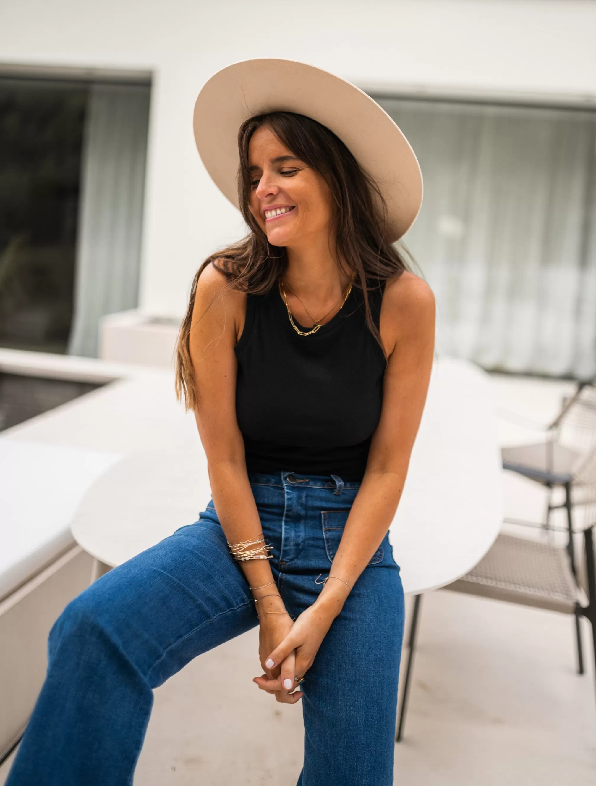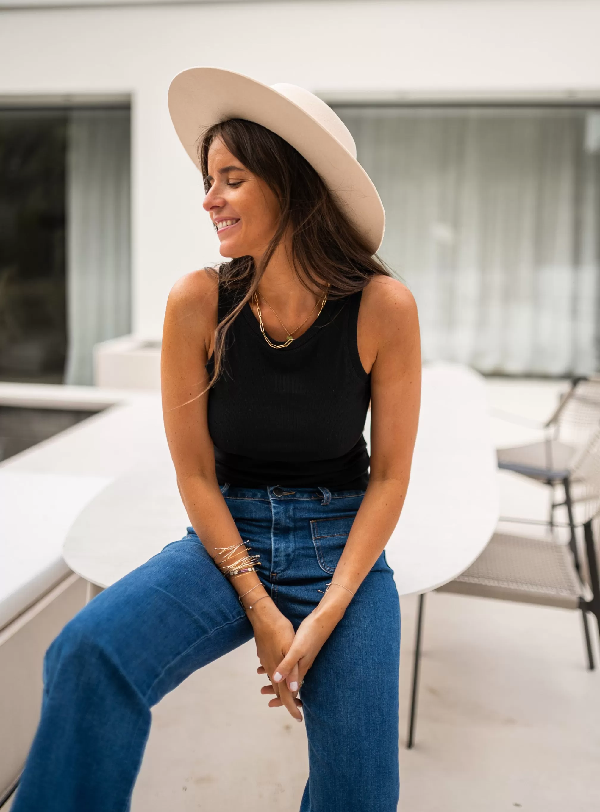 M-L : Length 57 cm – Width 39 cm - Marine is 1m70, Ophélie is 1m68 and both wear a size S-M