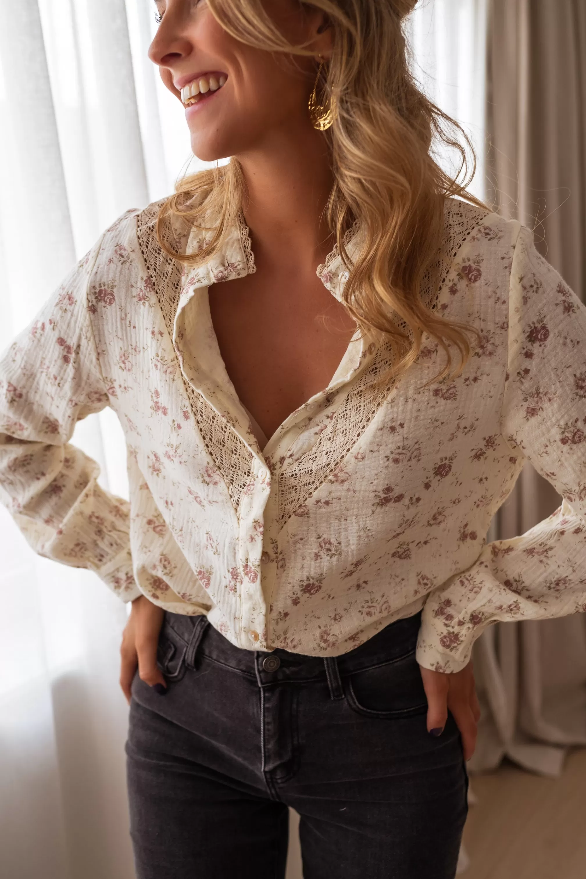 Long sleevesCotton gauze Embroidery PatternPearly buttons Sizes : S / M / L&nbs…