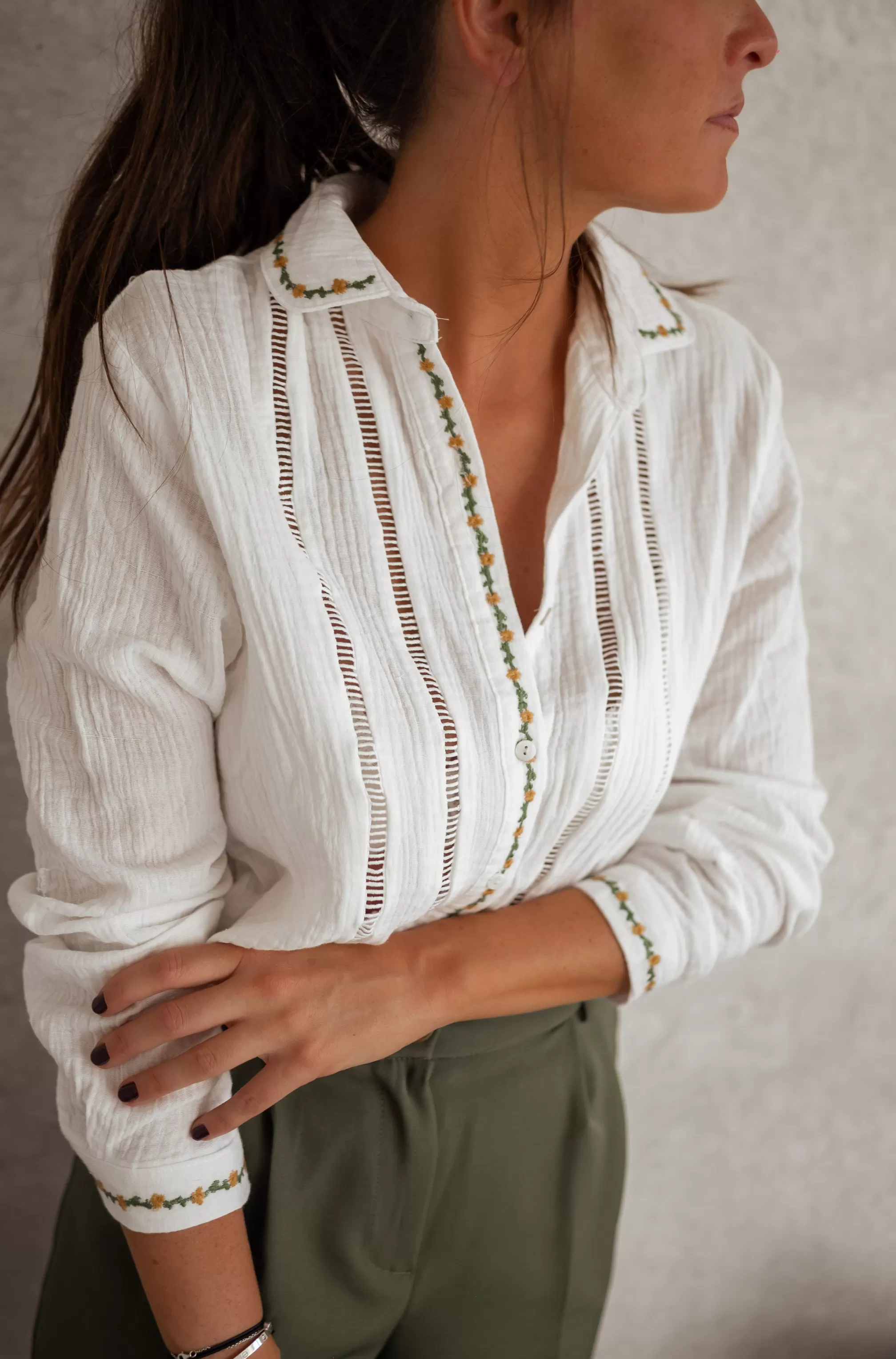 Long sleeves Cotton gauze Flowers embroideredButtons all along the shirt Sizes …