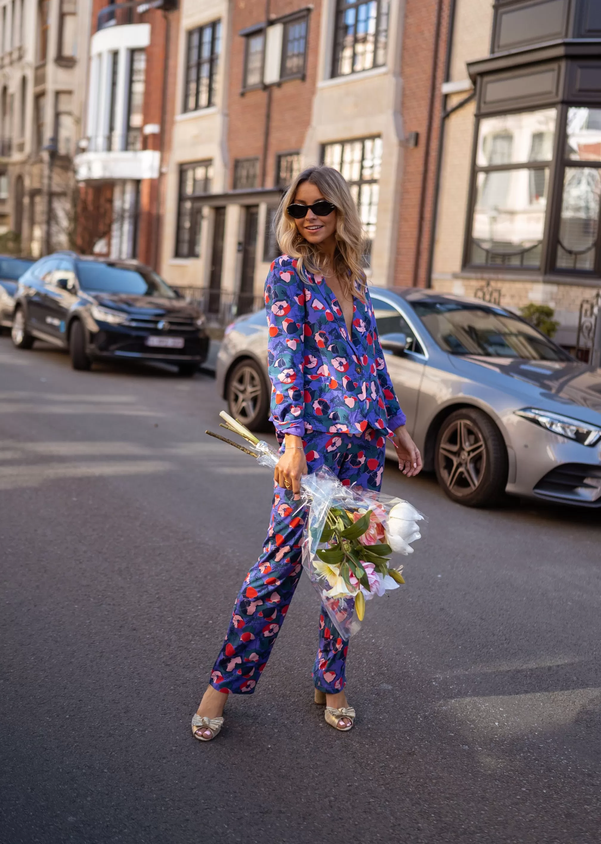 Long sleevesOphélie is 1m68 and wears a size SLining Fluid Purple background with c…