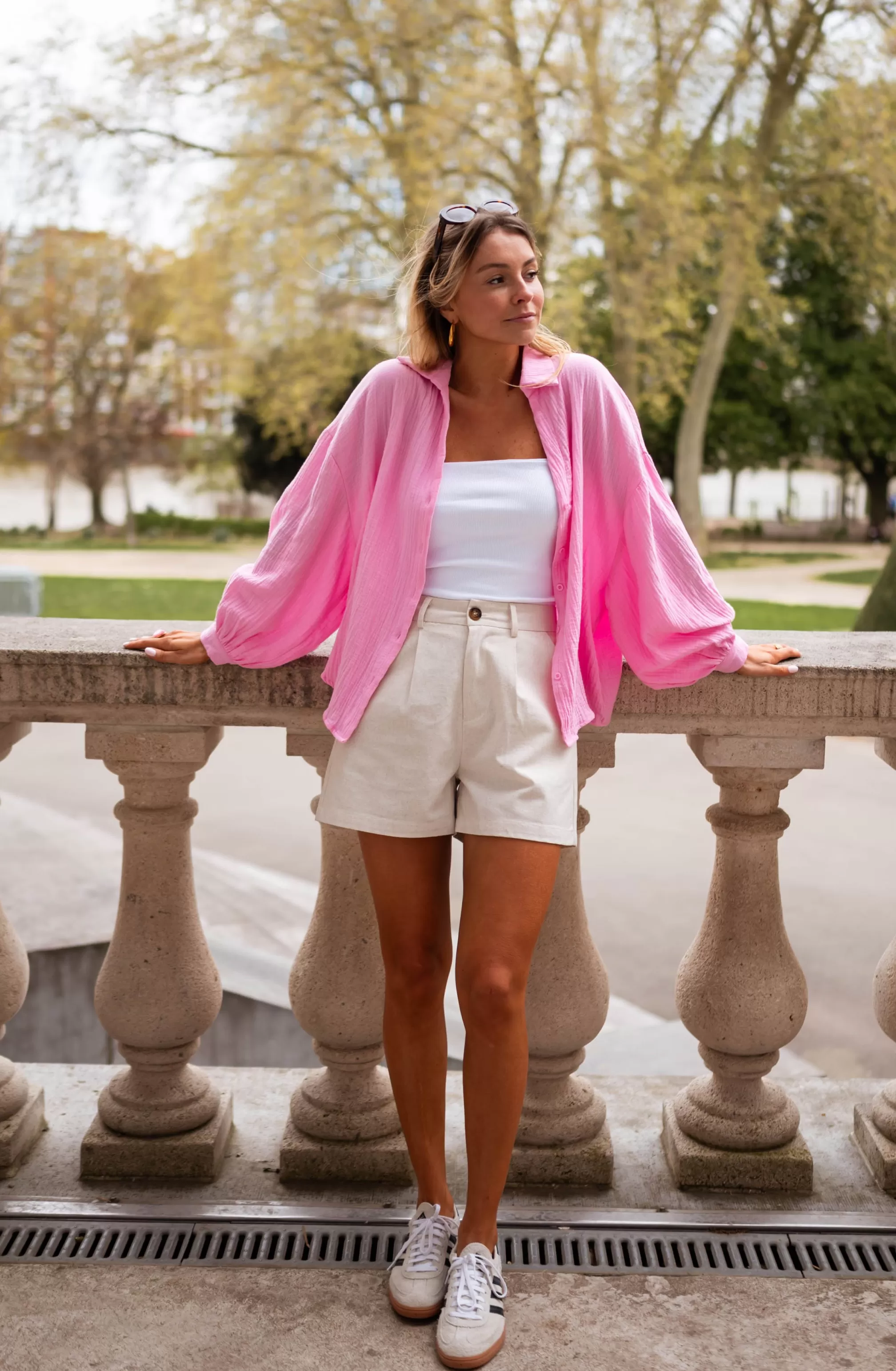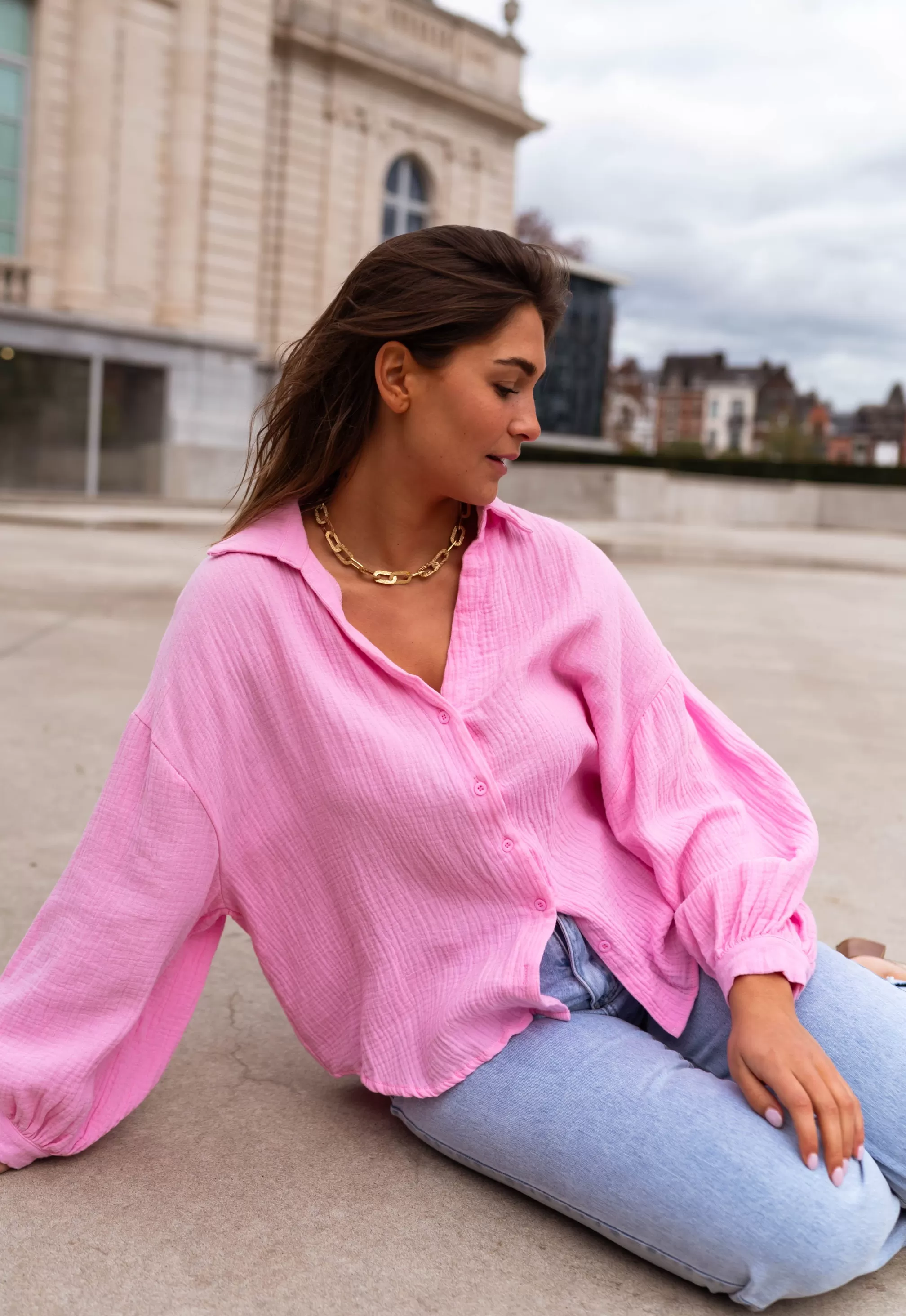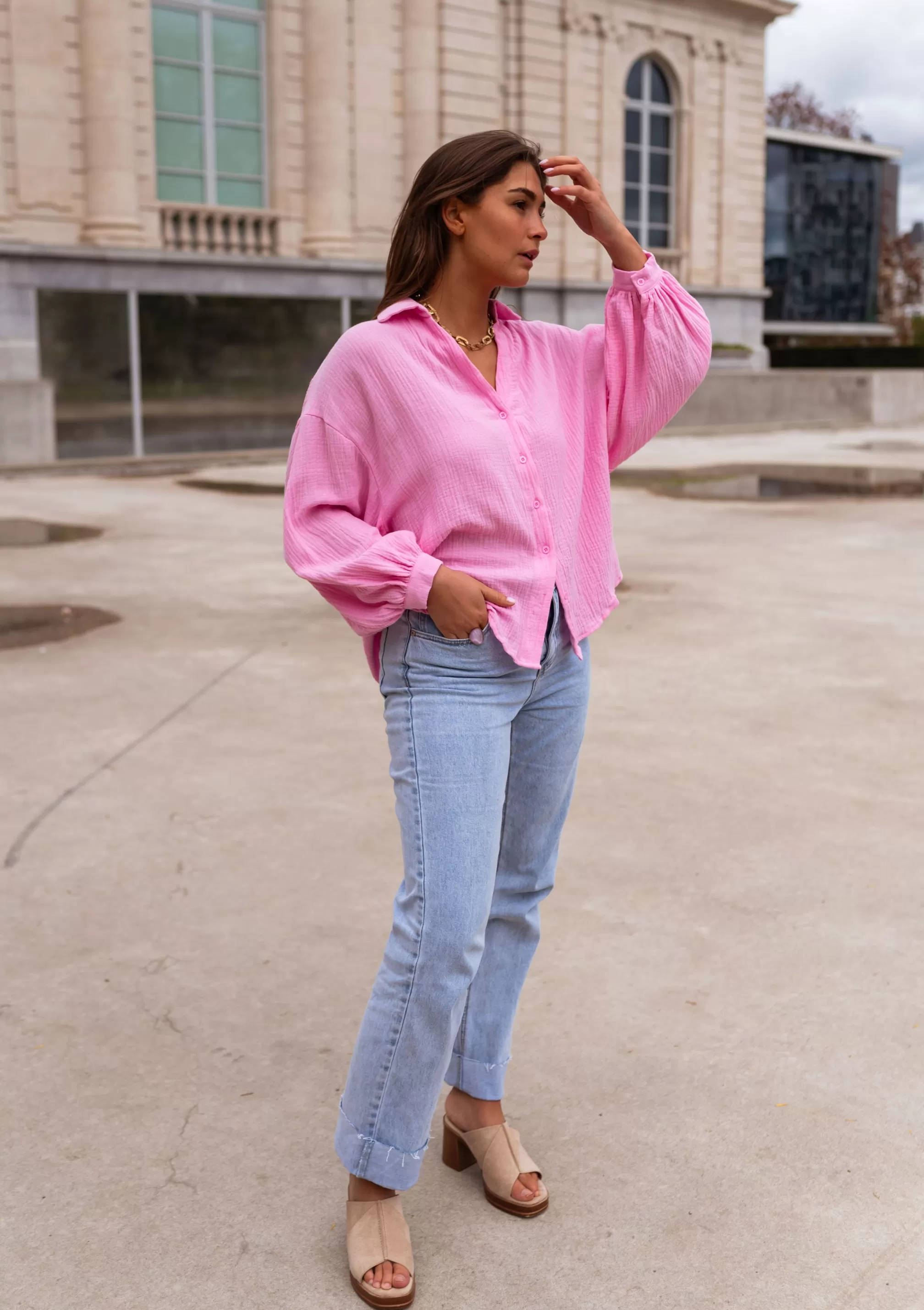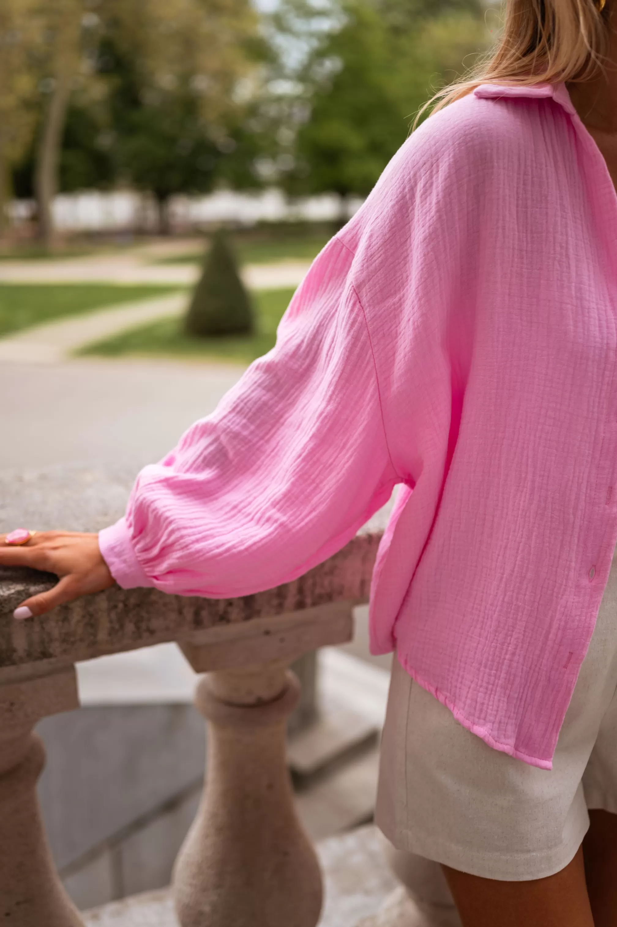 Cotton gauzeLoose shirtNot transparentOphélie is 1m68 and wears a size S-MManon is 1m69 and w…