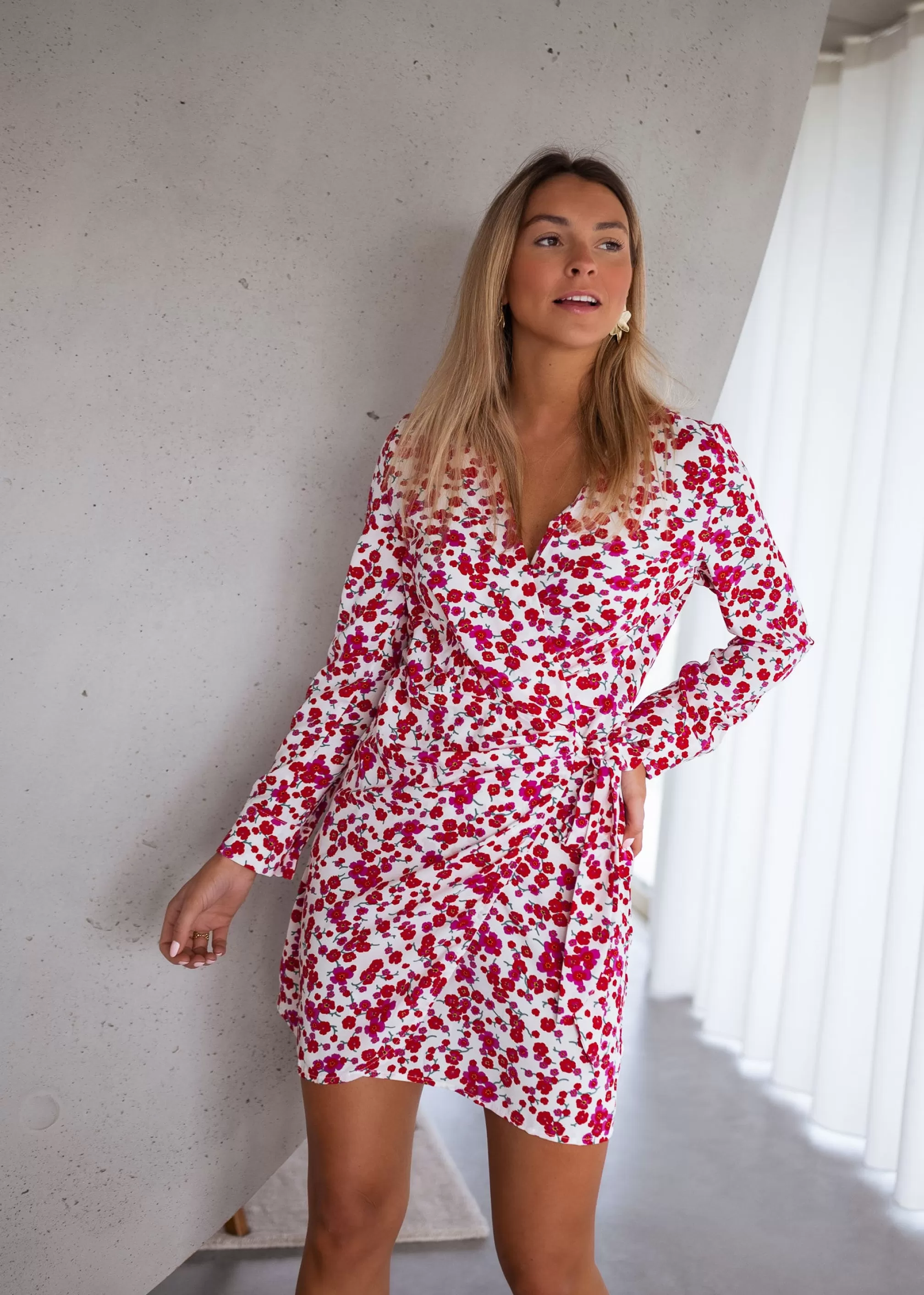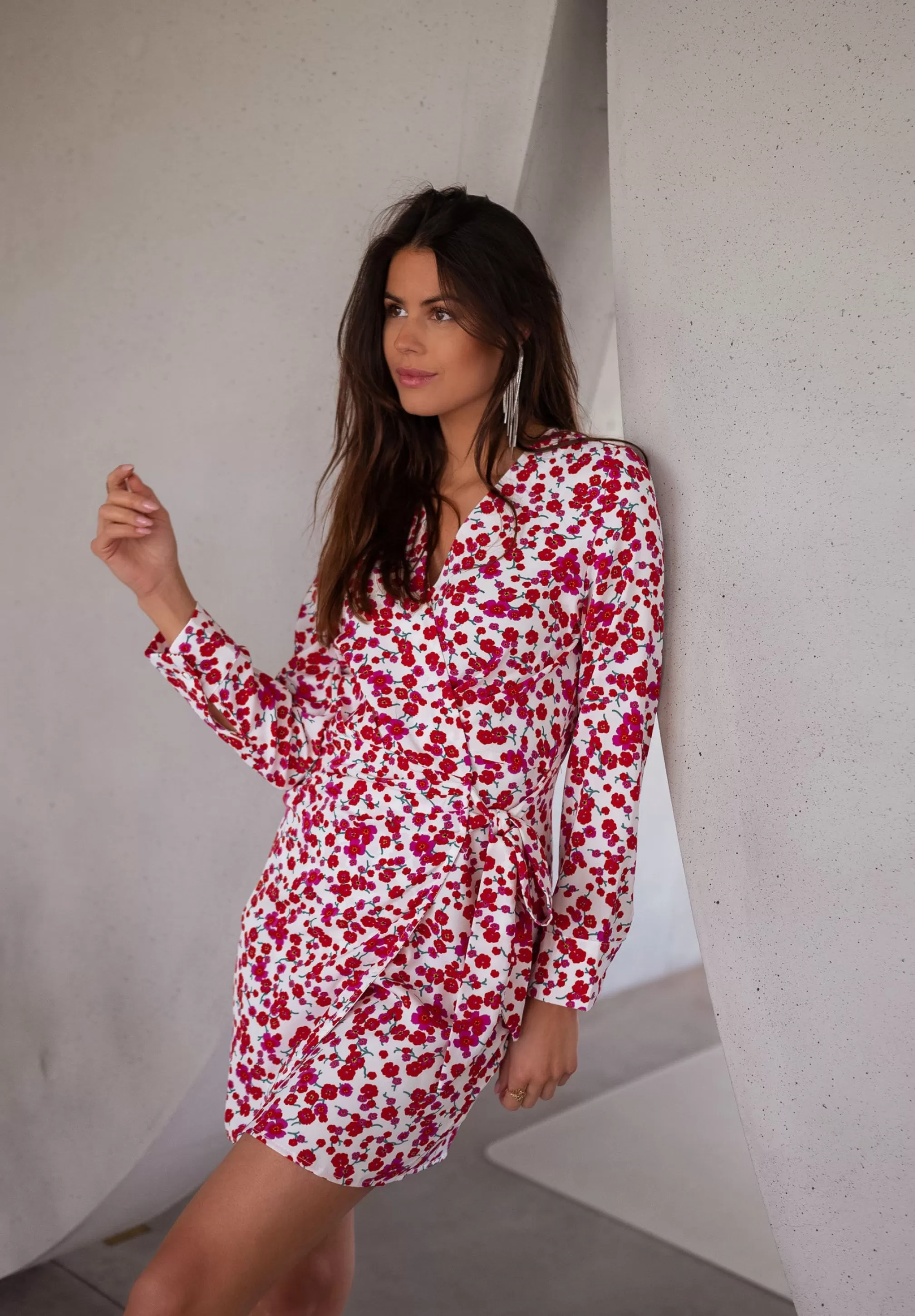 Mini dressWrap front Ophélie is 1m68, Larissa is 1m74 and both wear a size S Long s…