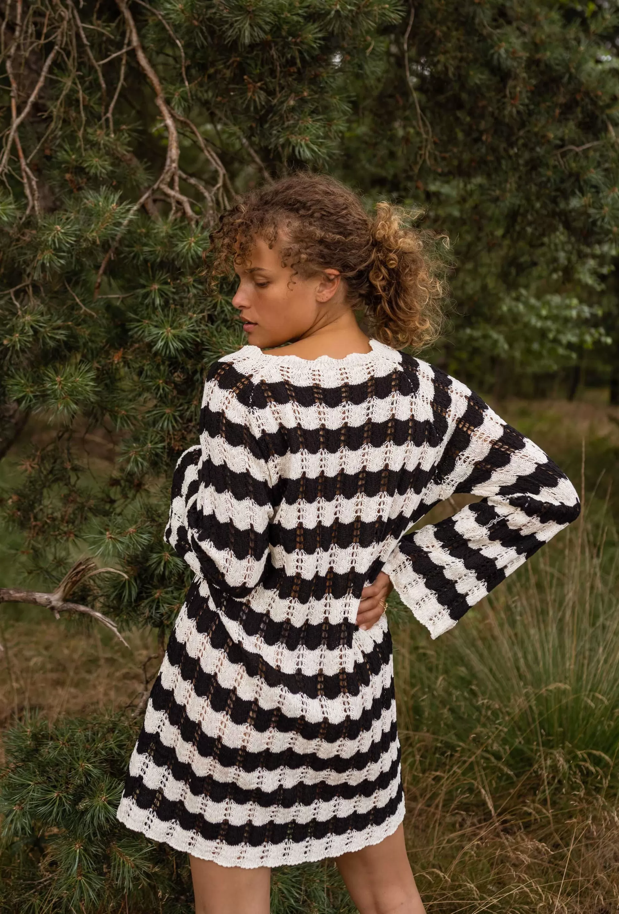 Crochet dressFlared sleevesOphélie is 1m68 and usually wears a size S / Kénia is 1m70 and us…