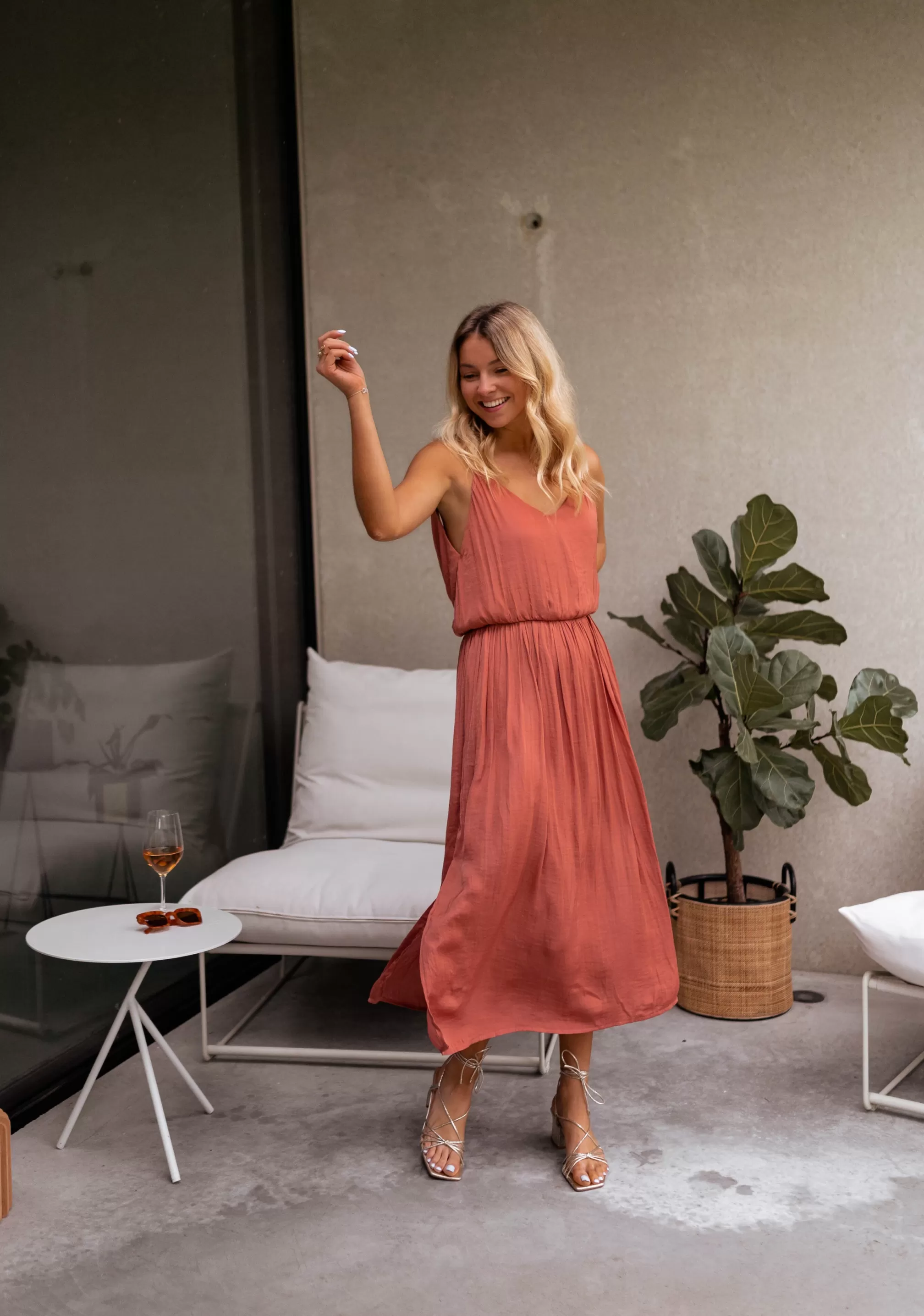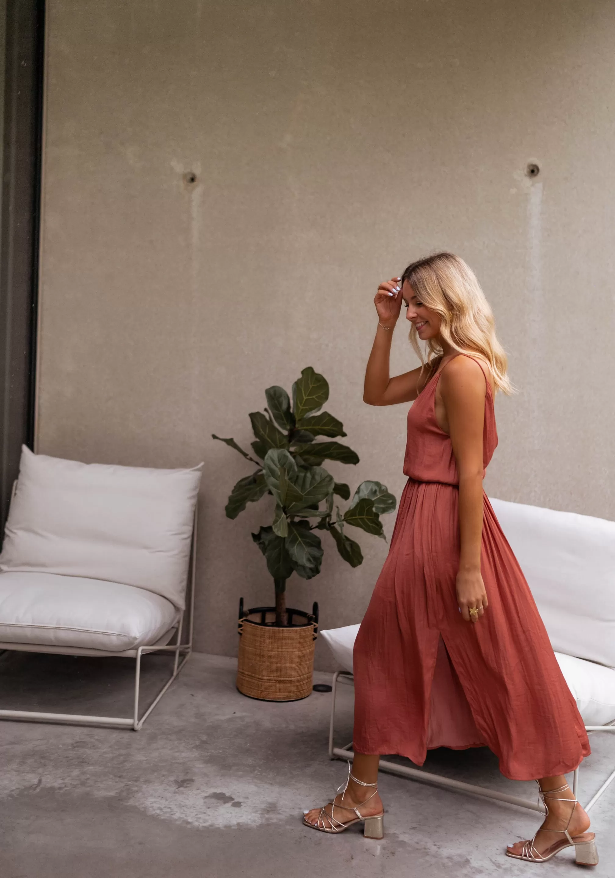 - Deep neckline in the back