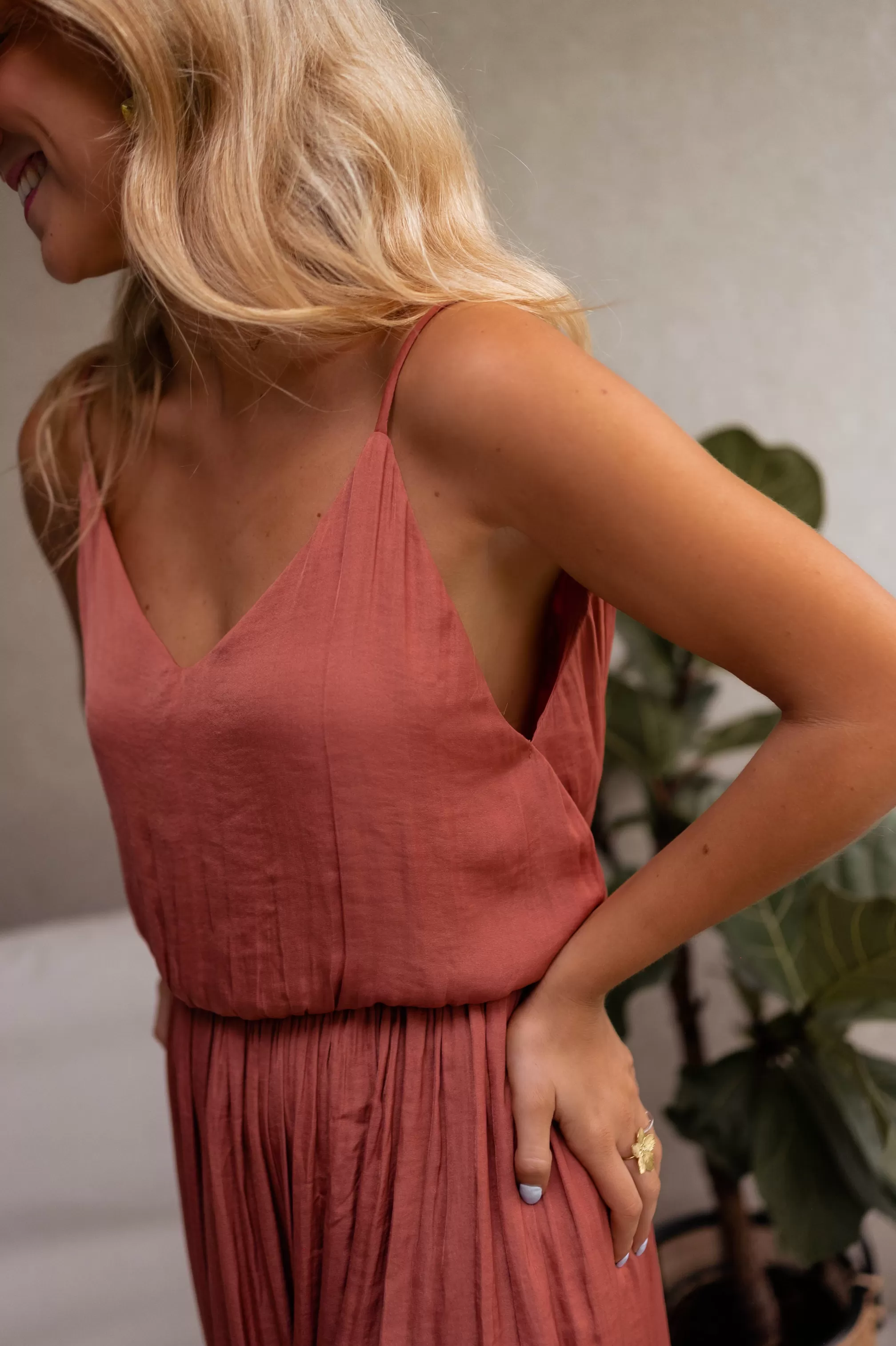 - Non adjustable spaghetti straps