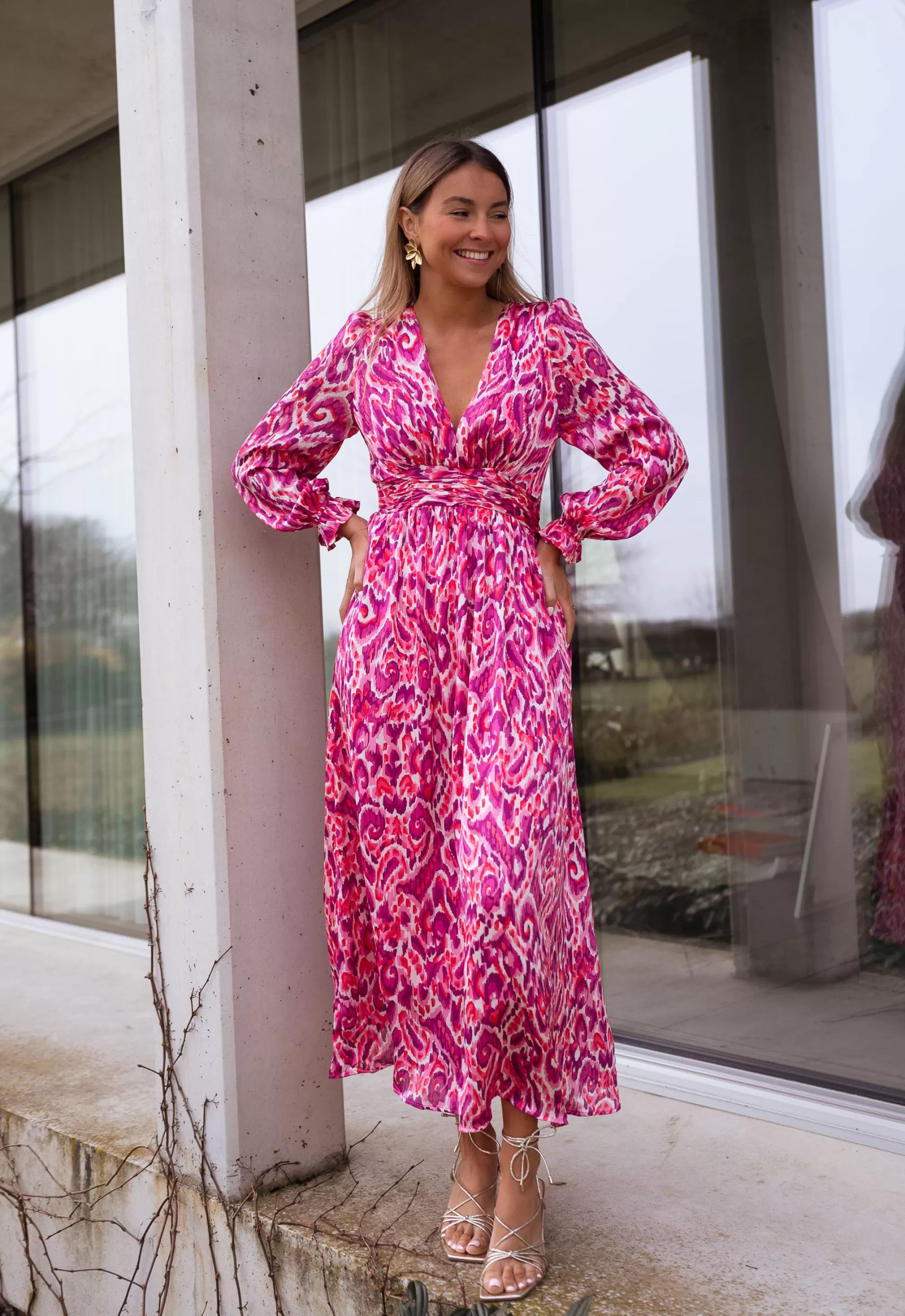 Long sleevesV-neckOphélie is 1m68, Larissa is 1m74 and both wear a size S-MSlightly tight bel…