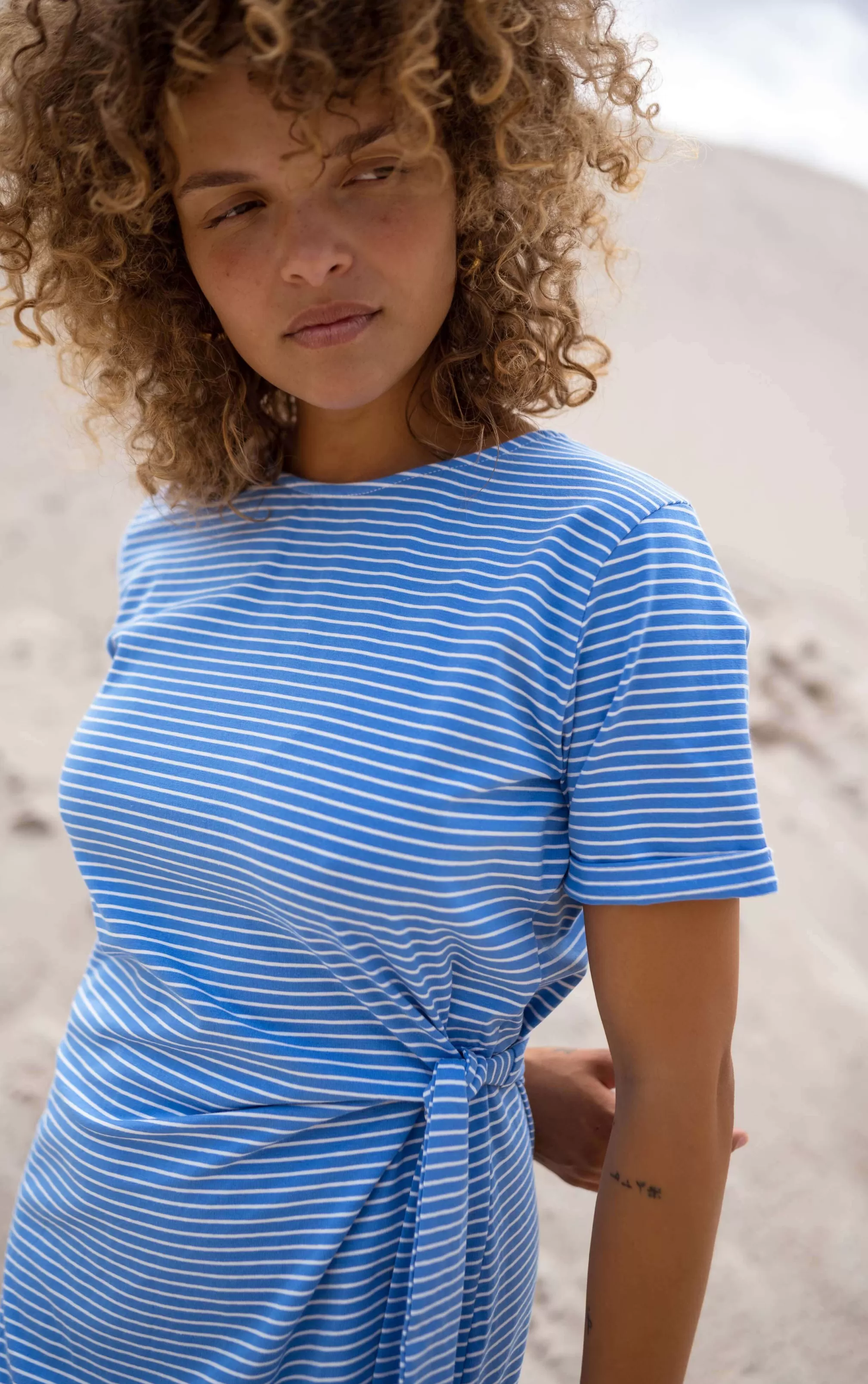 Short sleeves Blue and white Ophélie is 1m68 and wears a size S-M / Kénia is 1m70 …