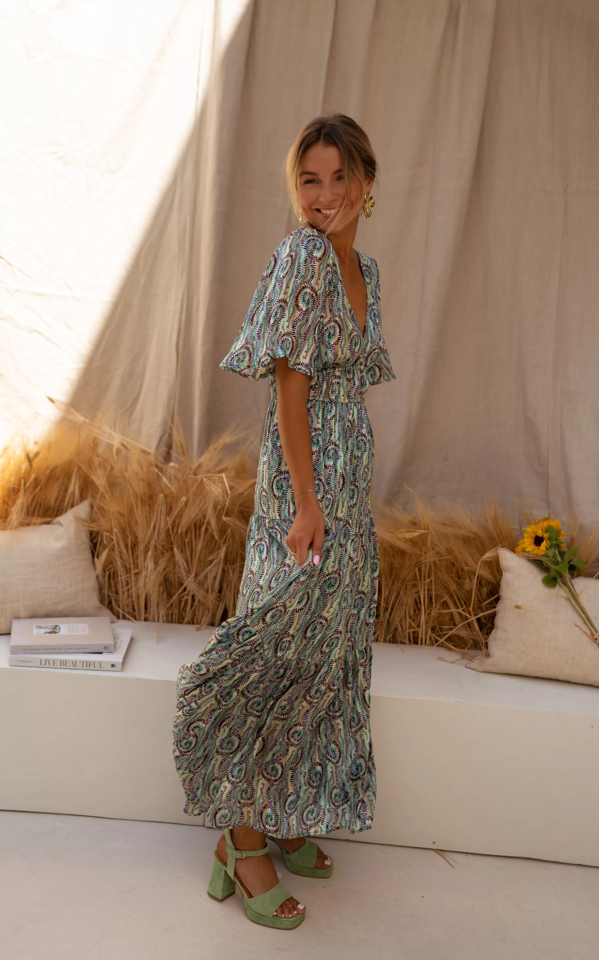 - Slightly flared sleeves