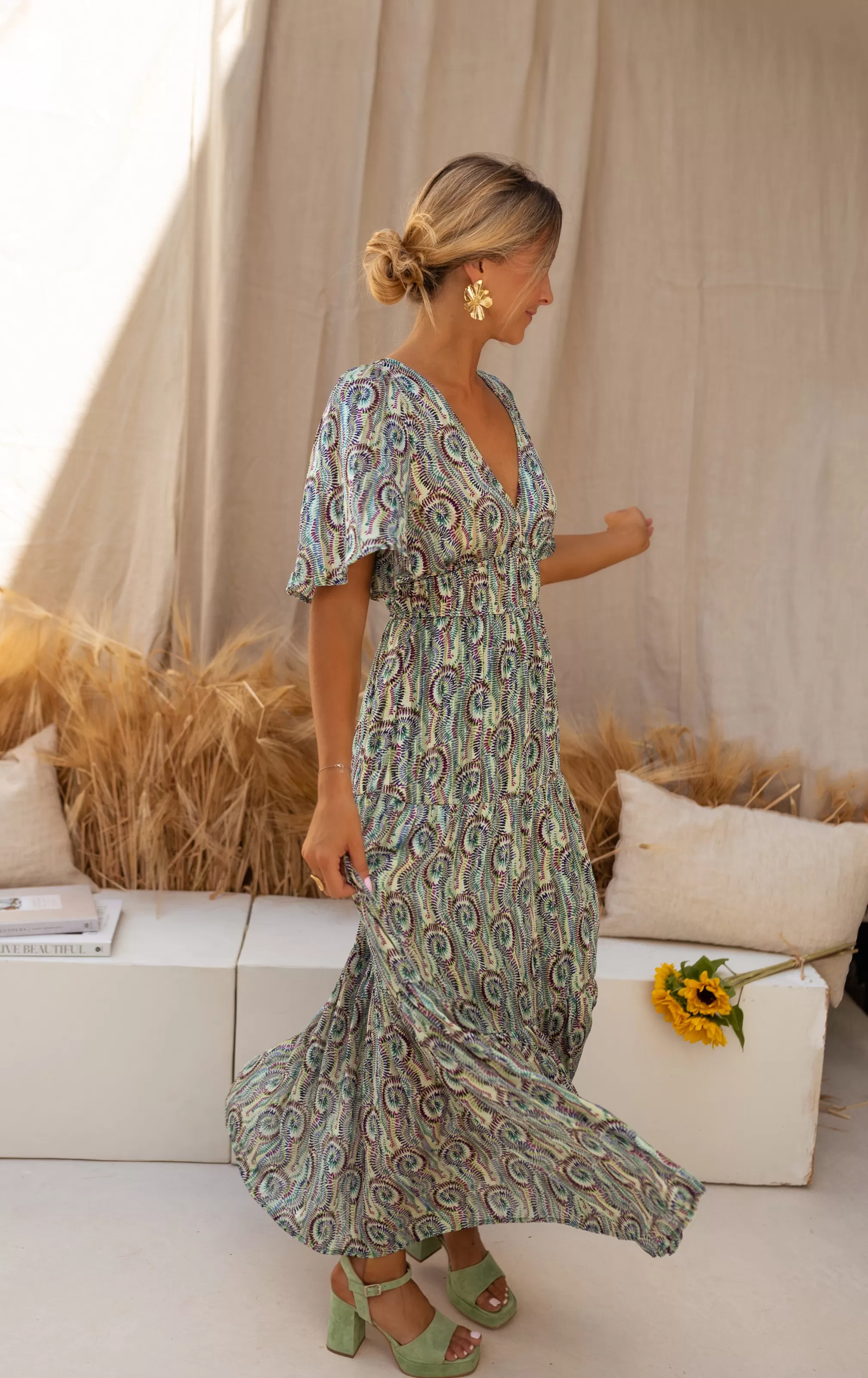 - Deep neckline in the back