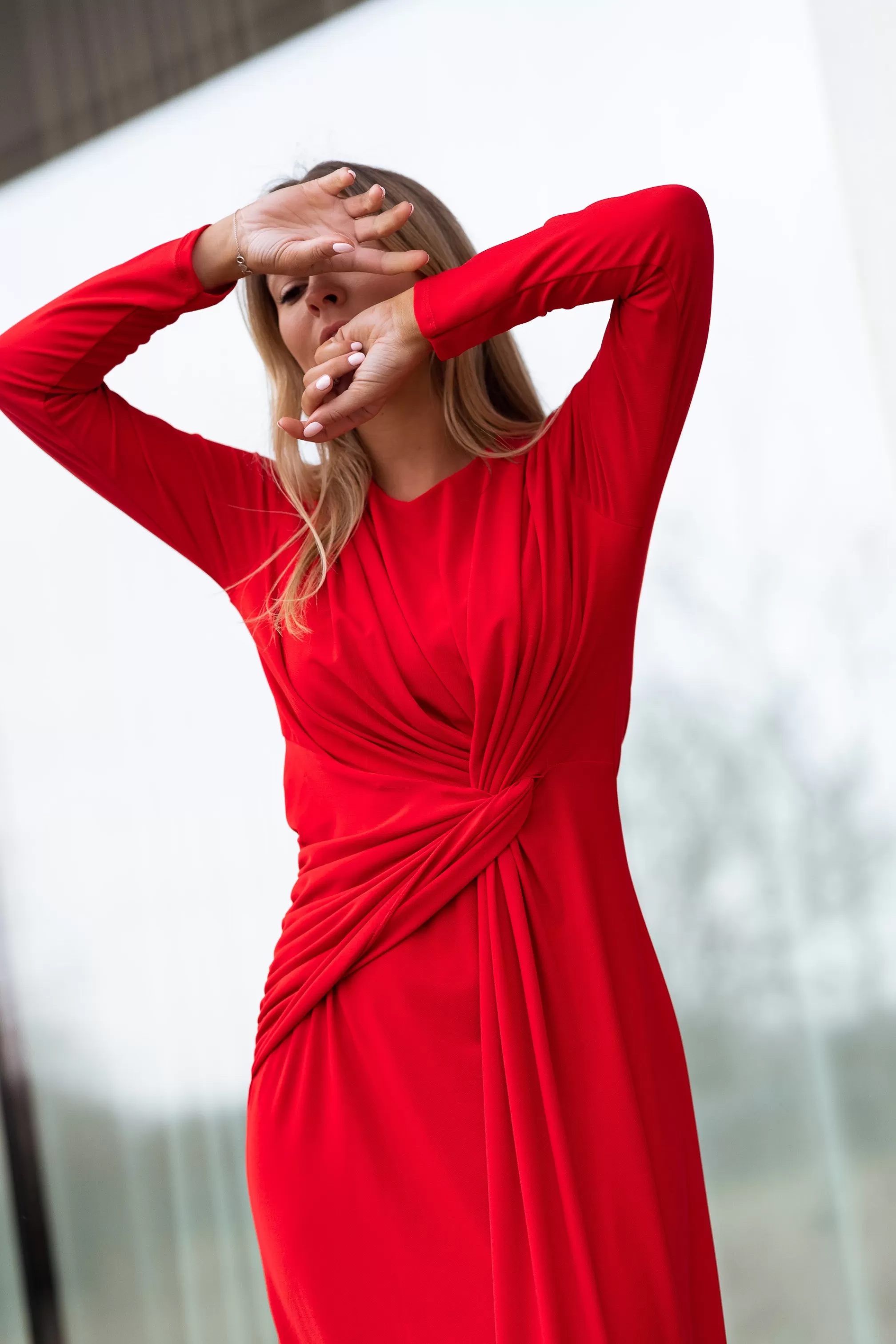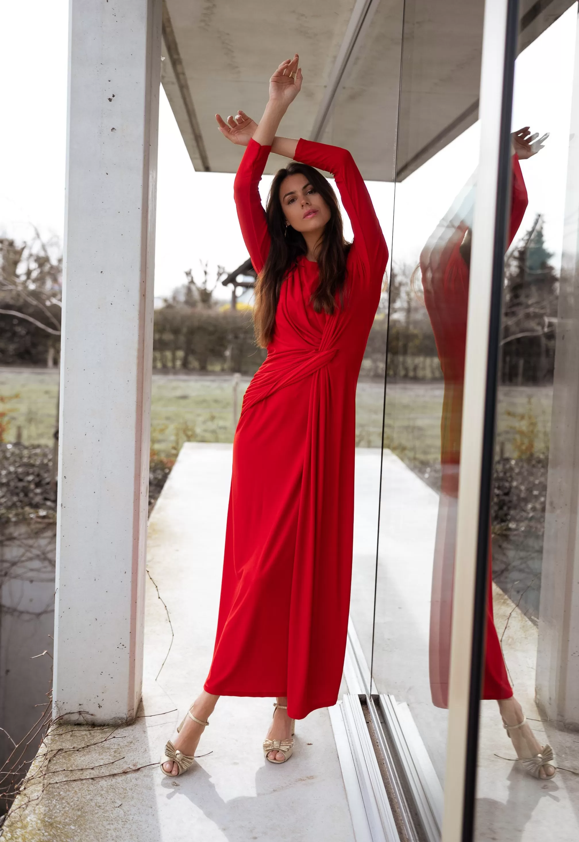 Made in ItalyLong sleevesLong dressCrewneckBow in the fabric on the frontSlightly transparent …