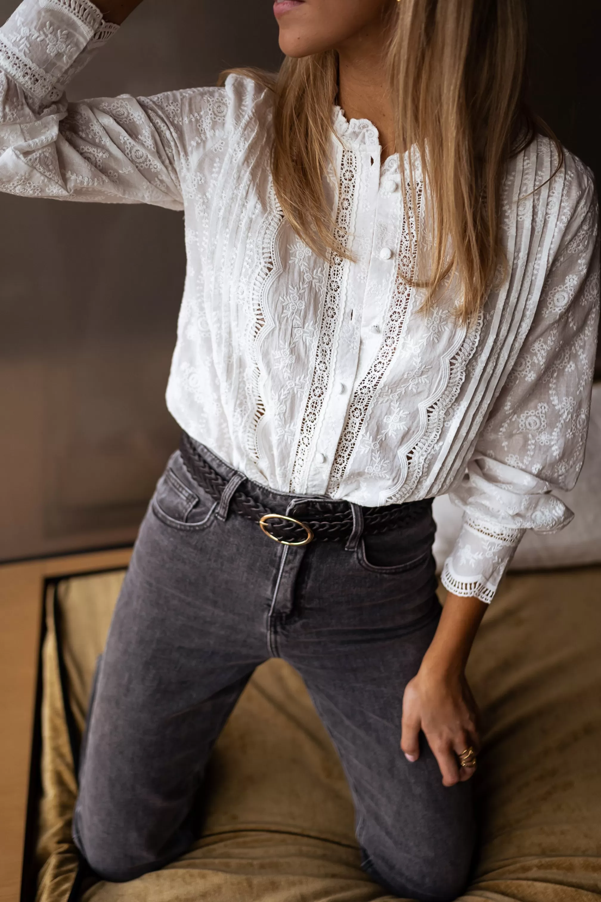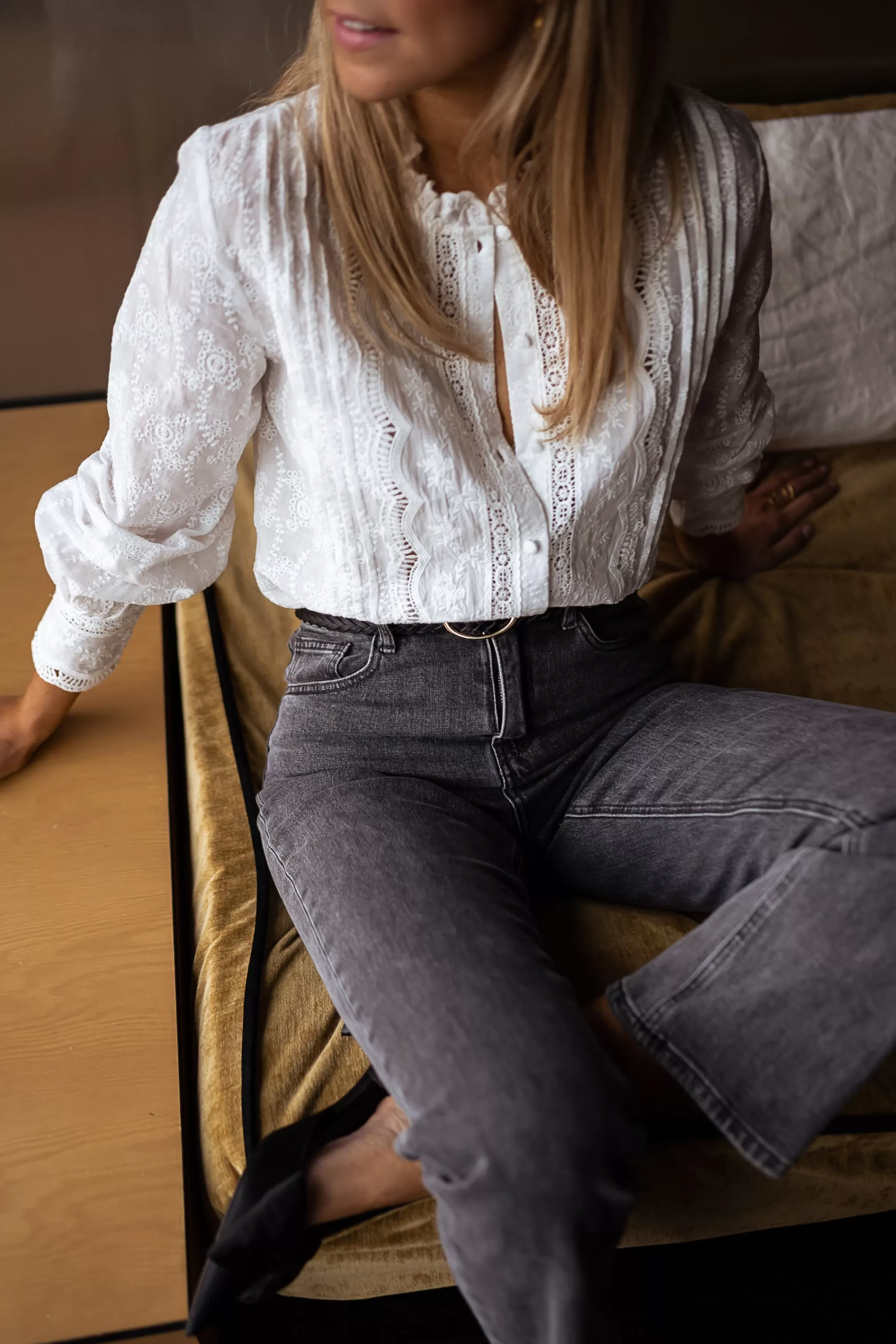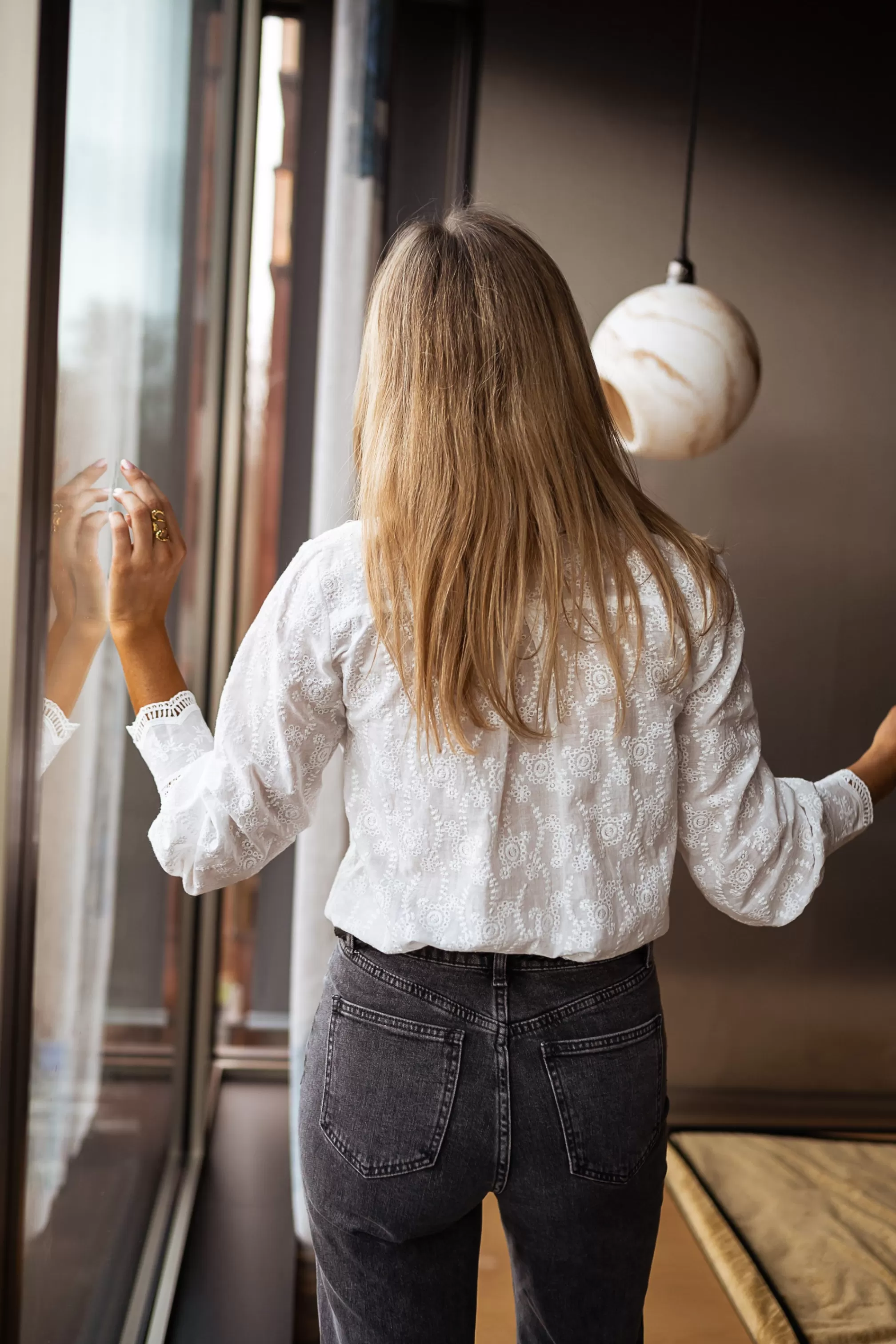 Crewneck Embroidered and lace blouseOphélie is 1m68 and wears a size S-M Long sleev…
