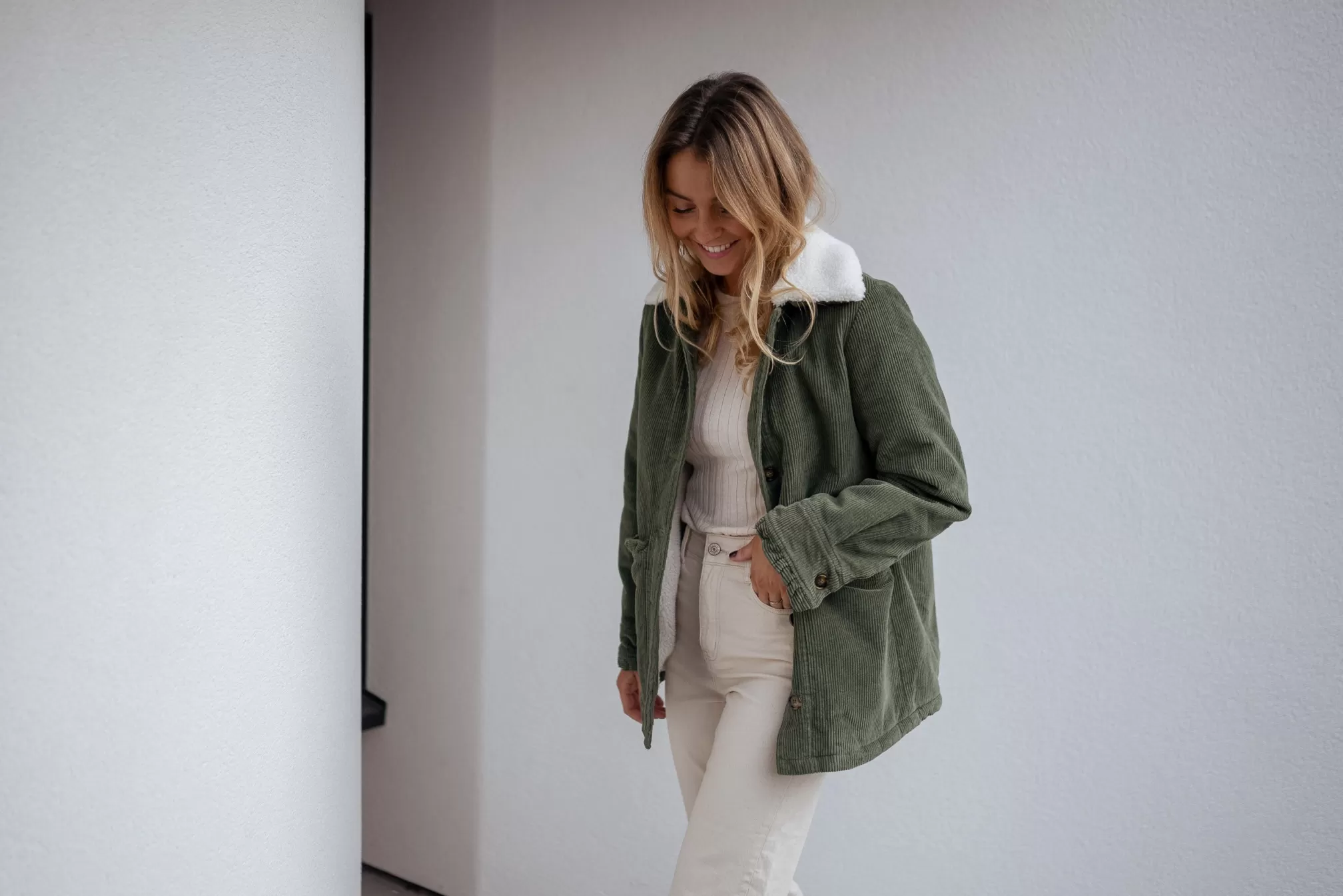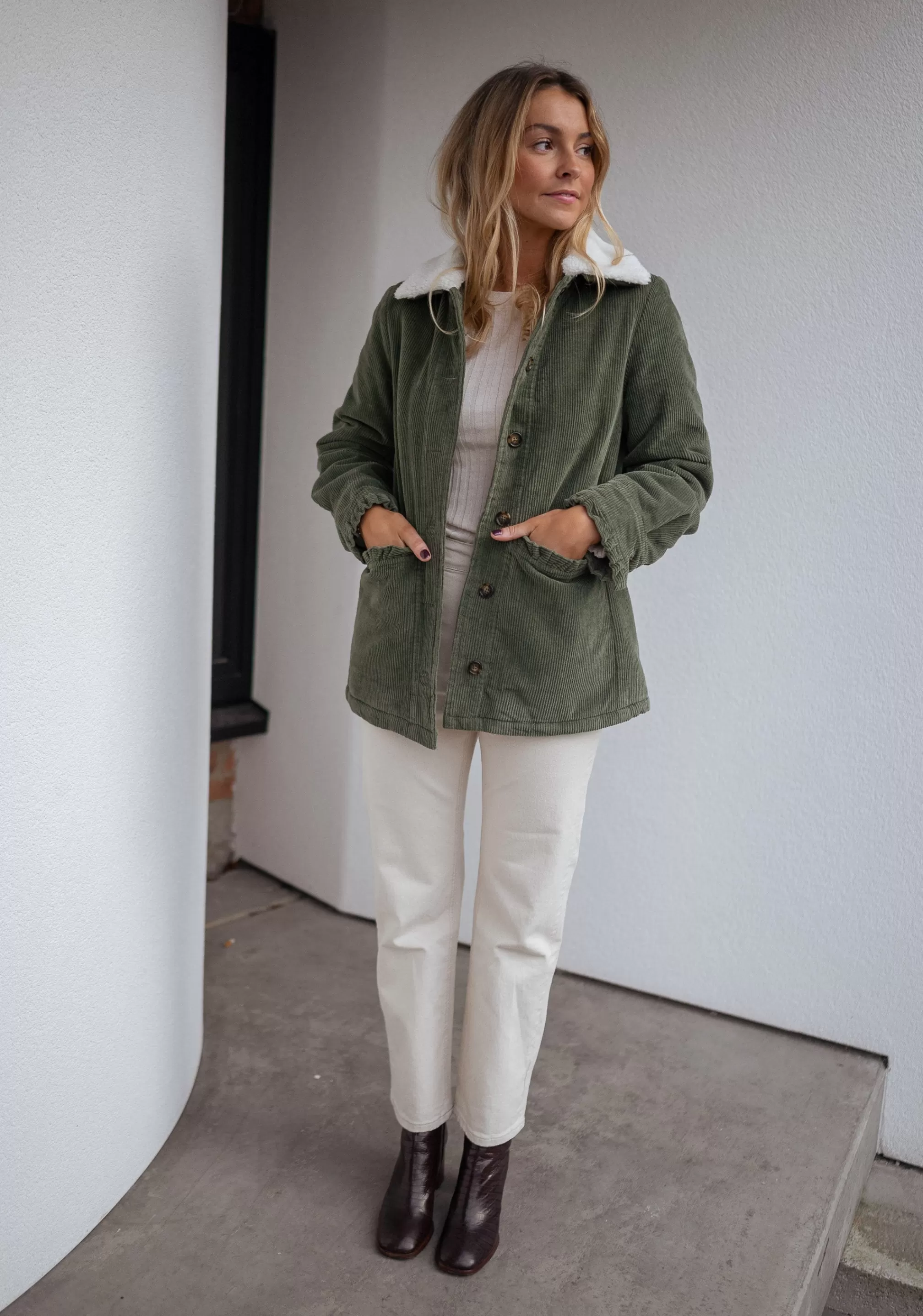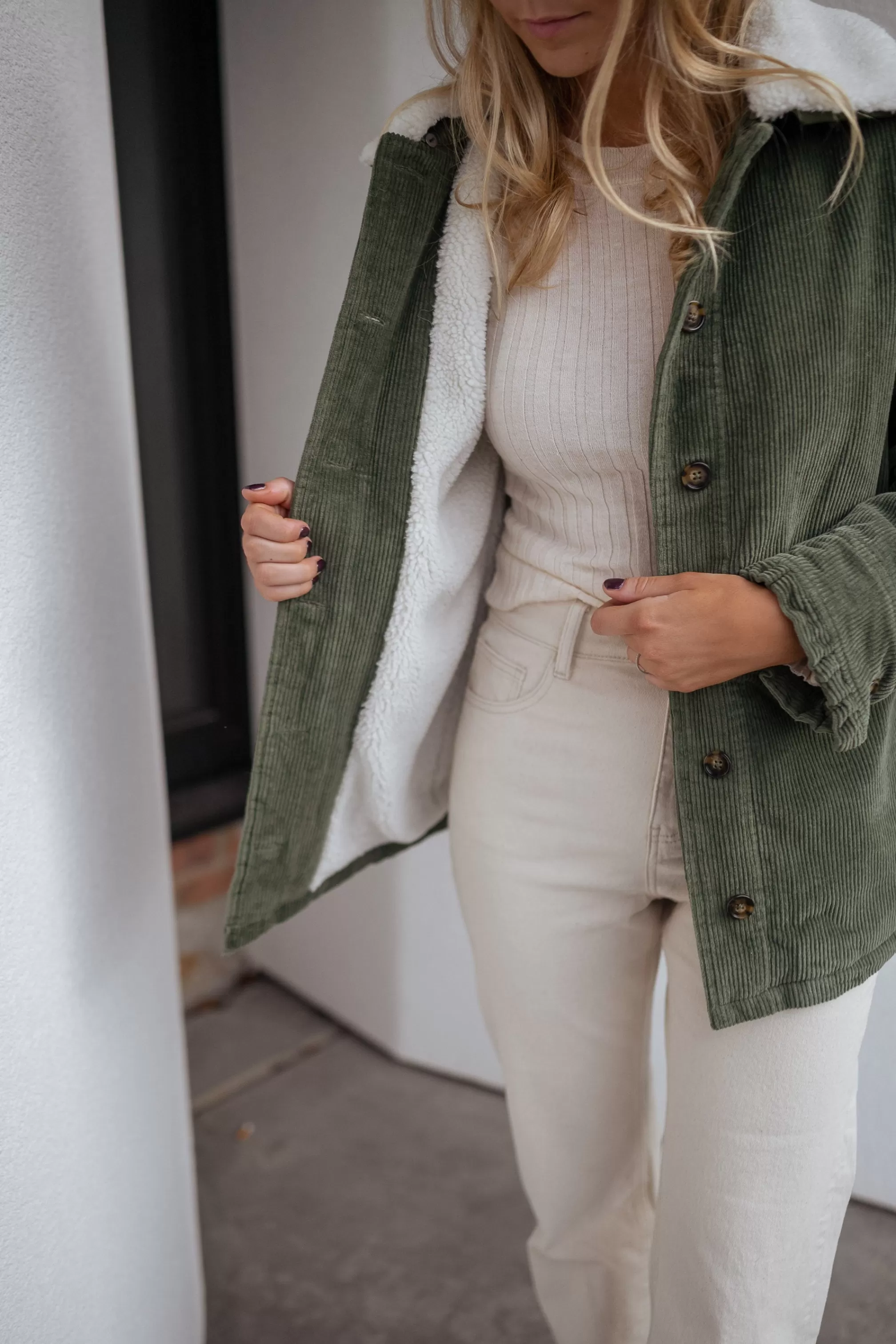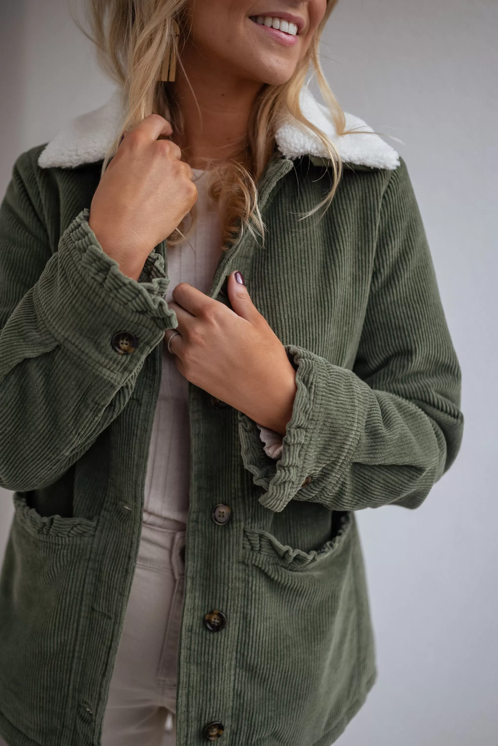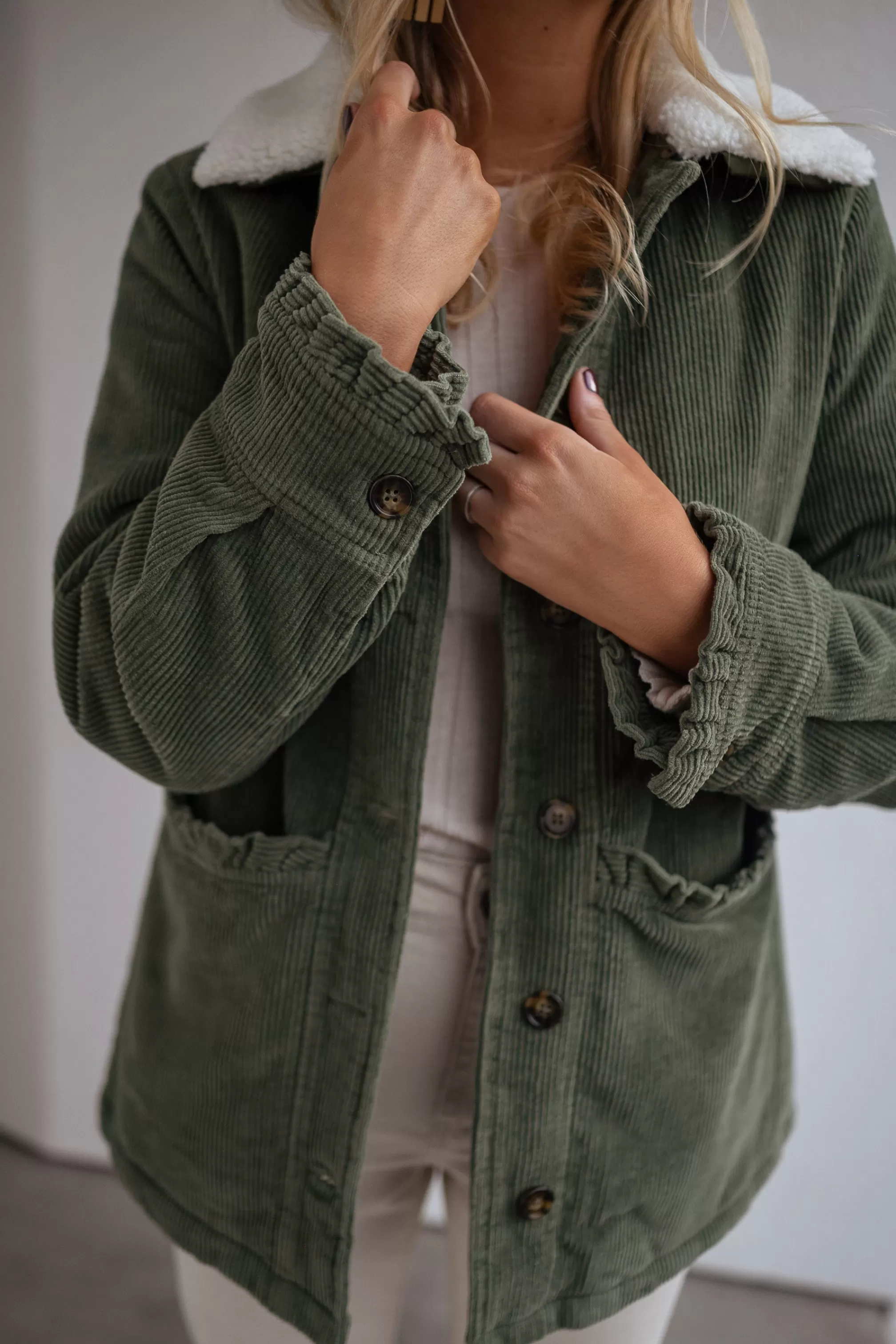 - Ruffles on the pockets and at the wrists