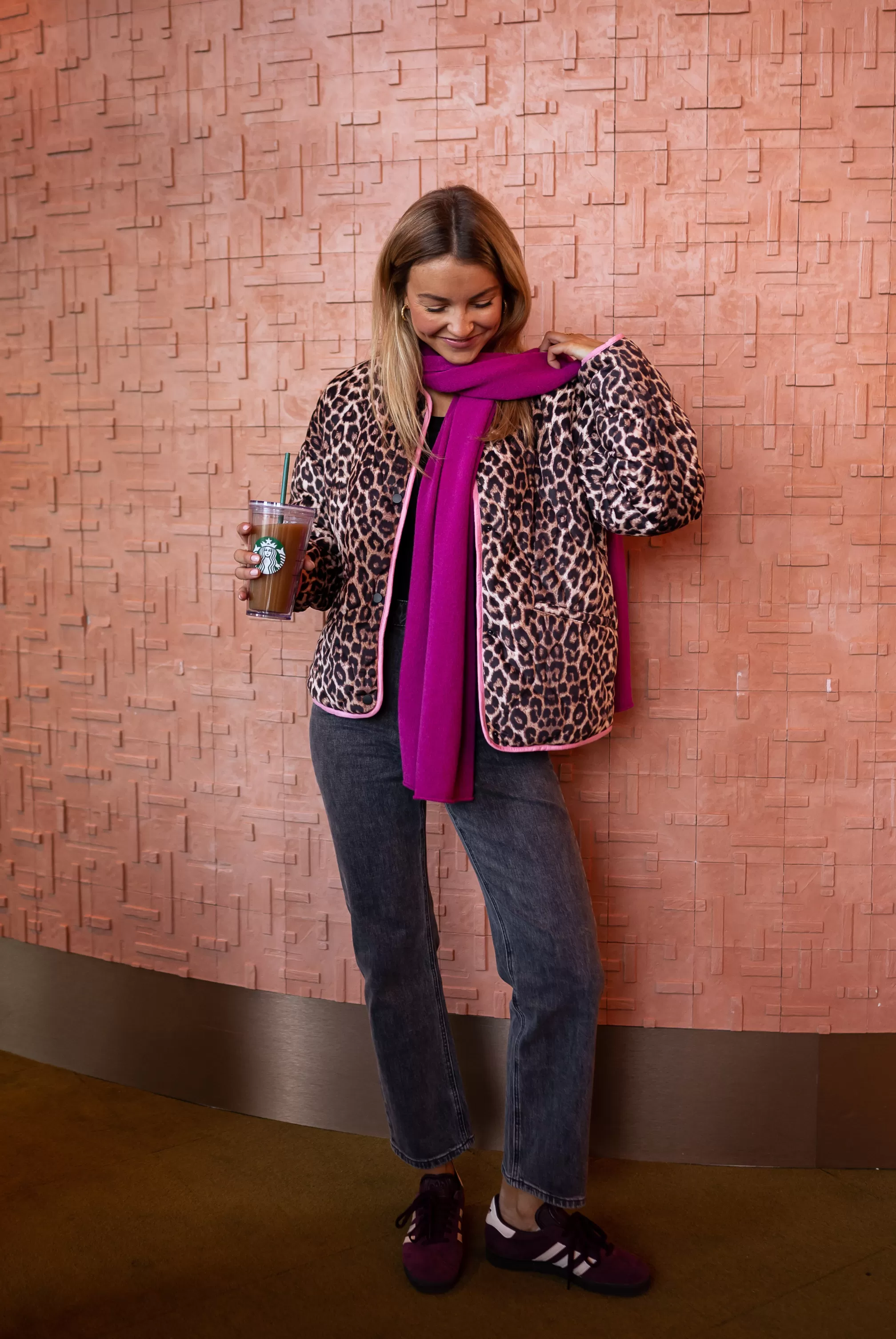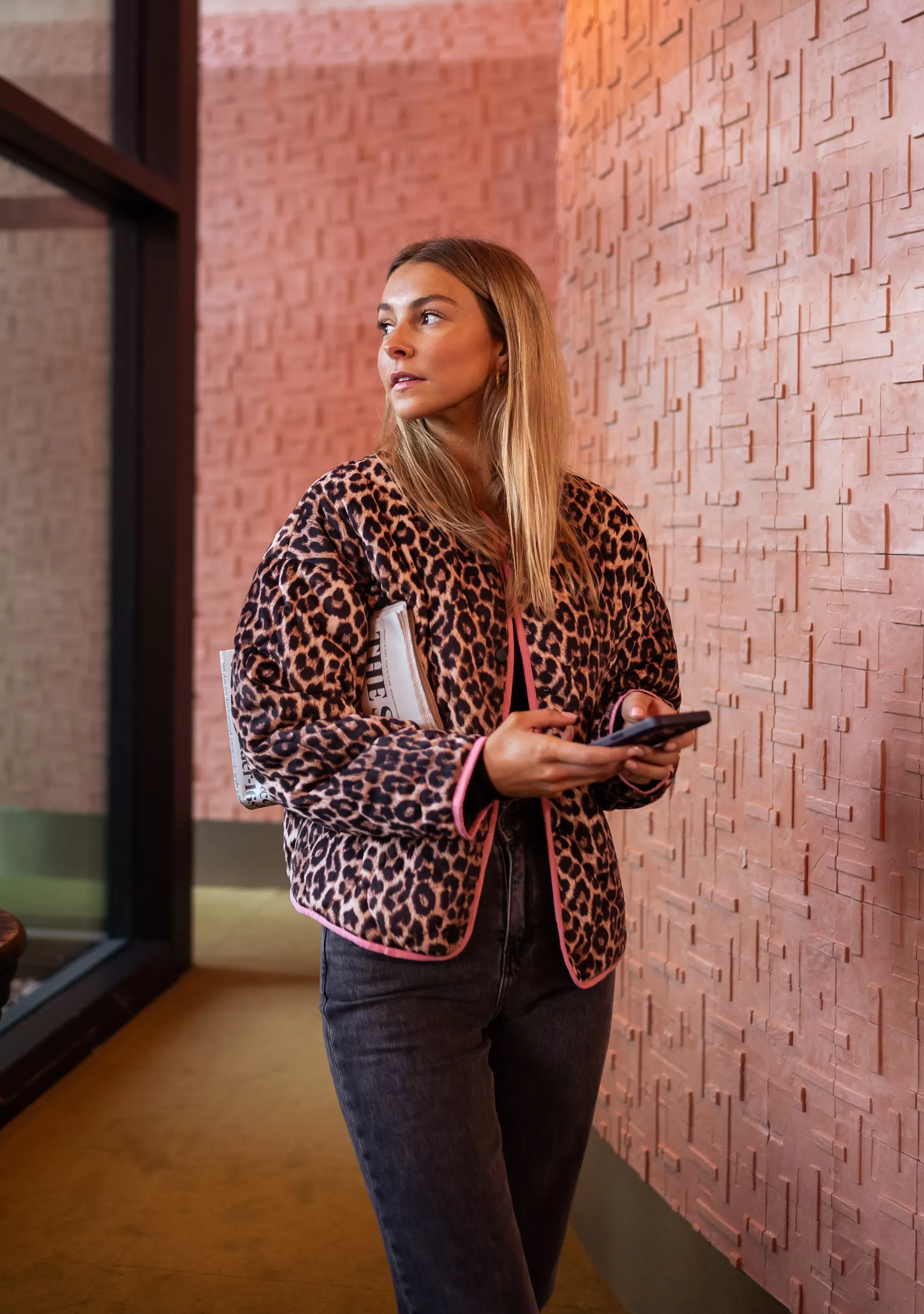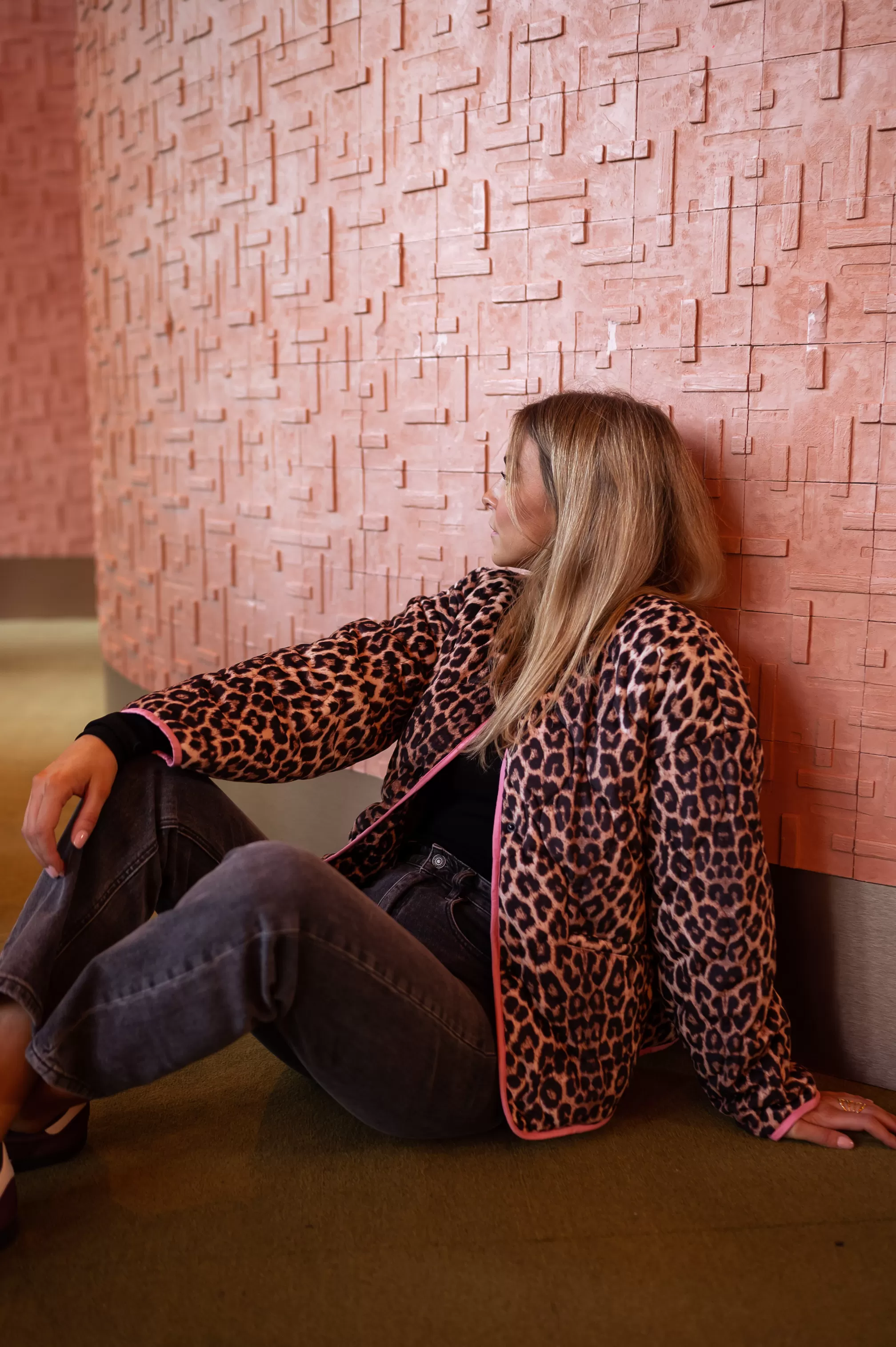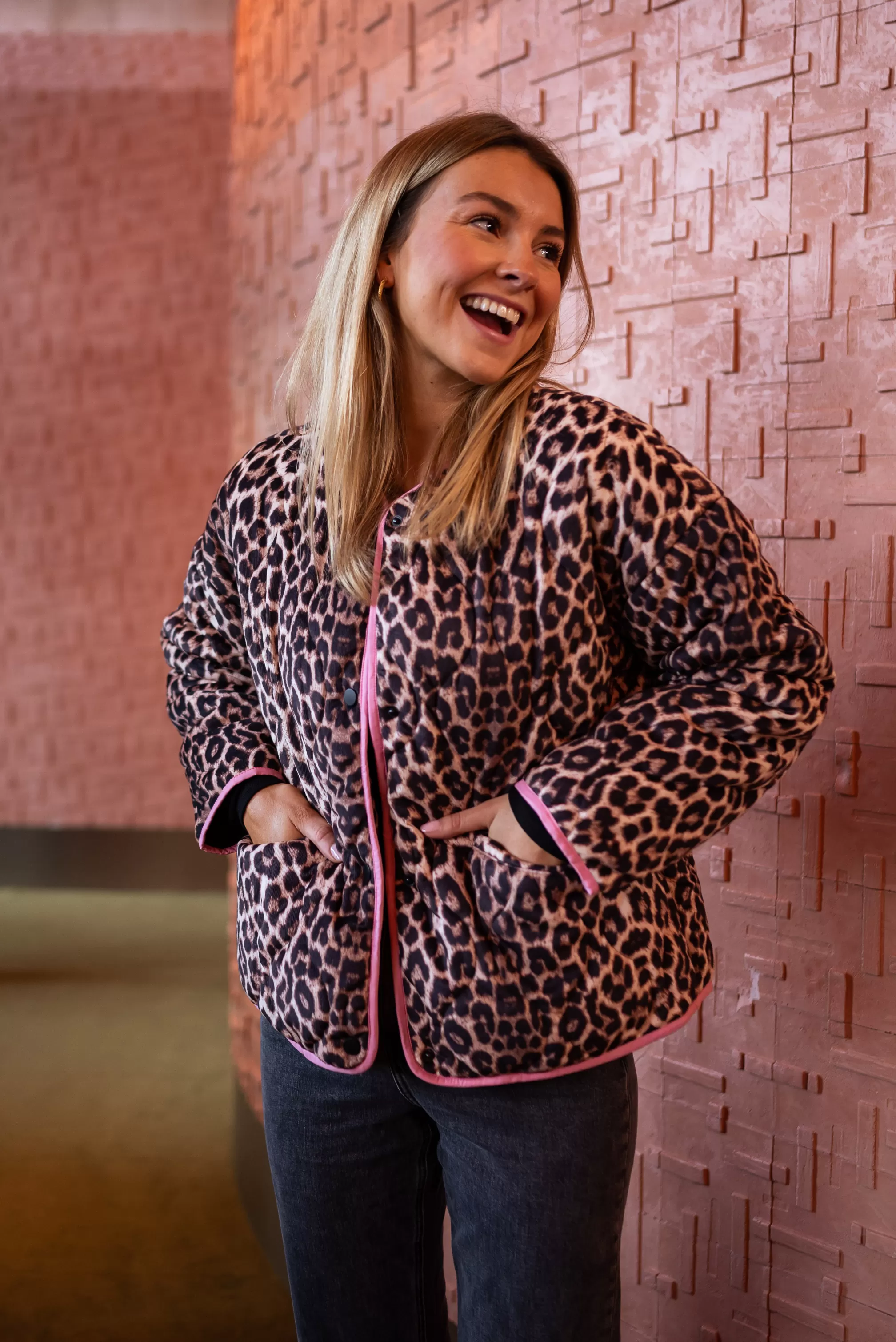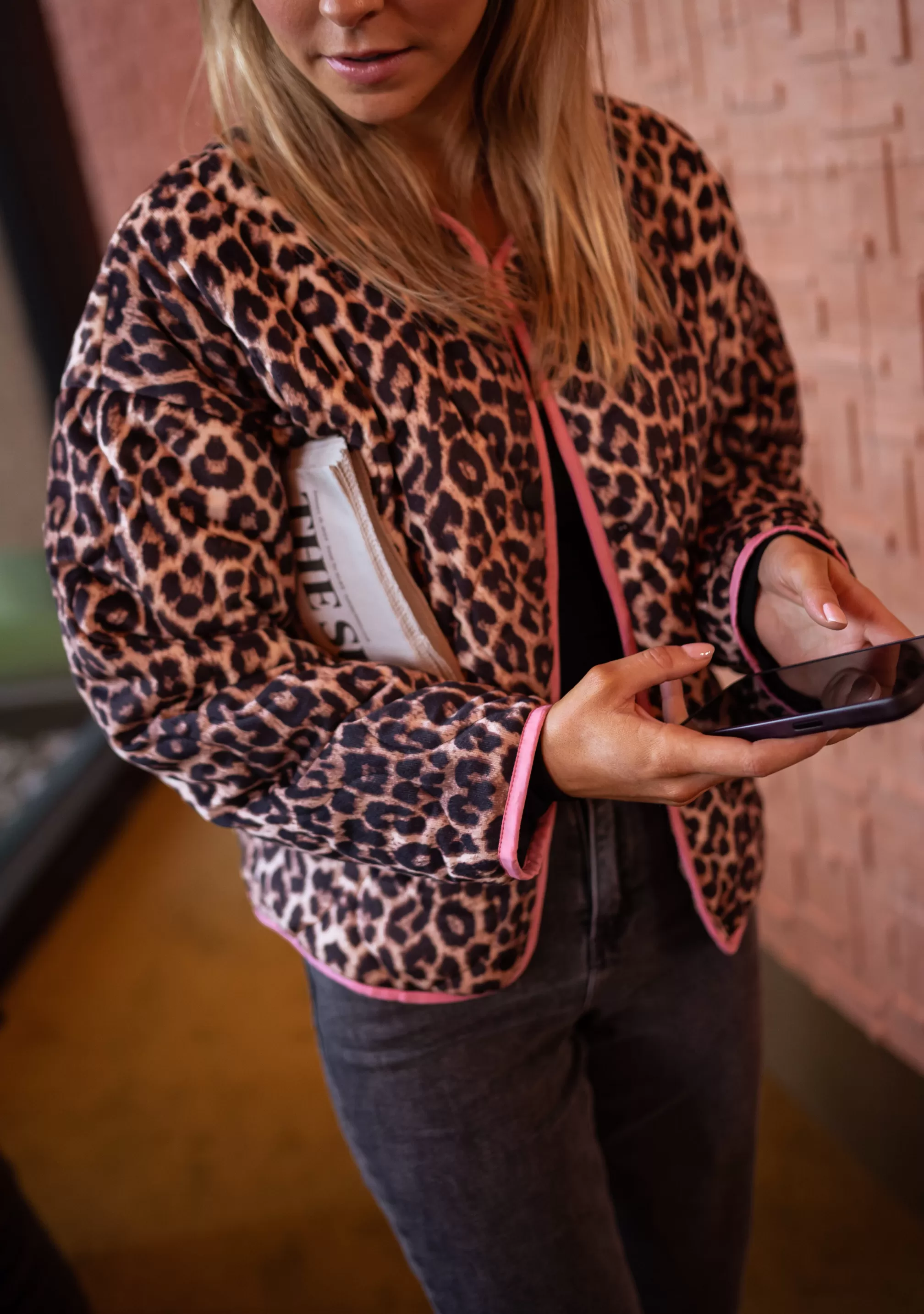 - Leopard jacket with pink edges