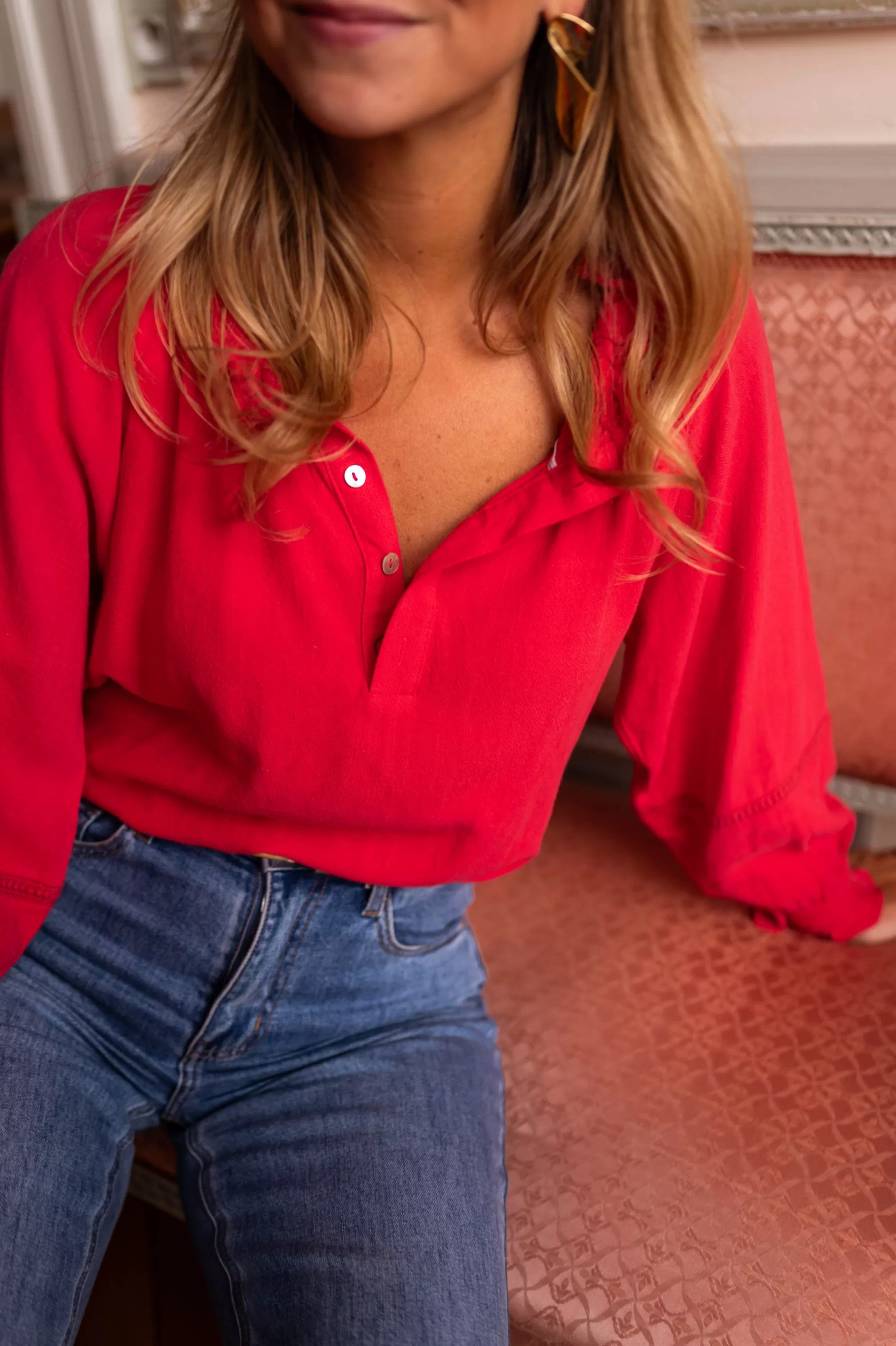 ⅞ th length sleevesV-neck with open buttons Ophélie is 1m68 and wears a size S-MManon …