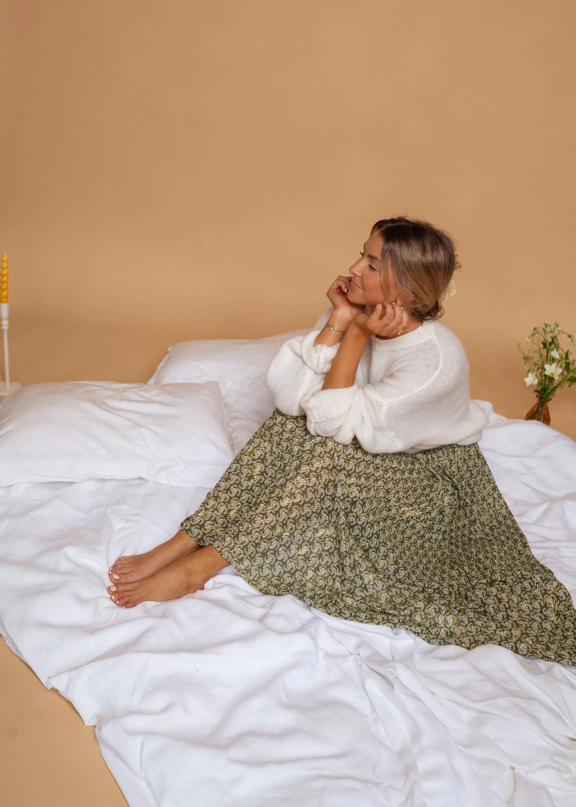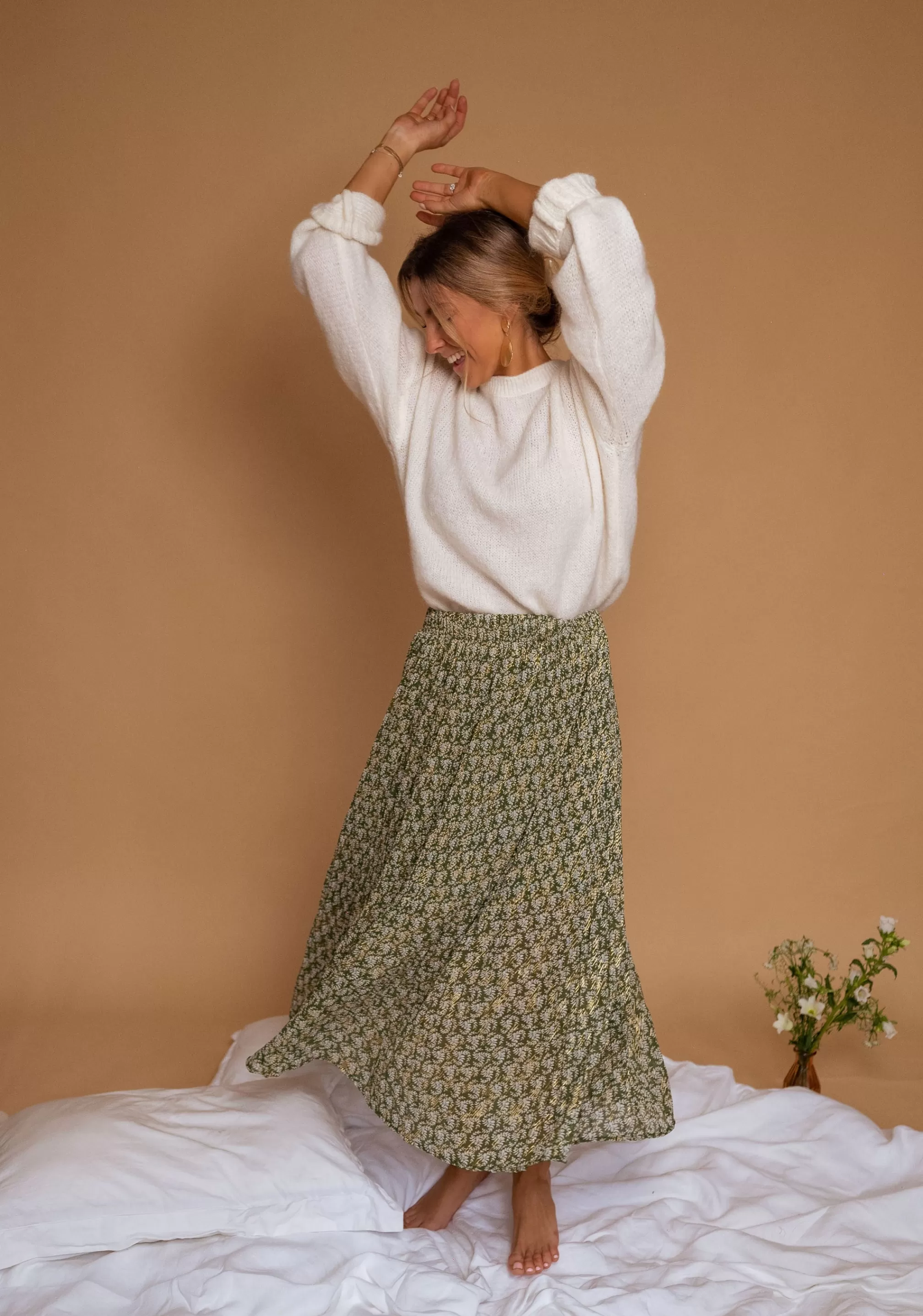 Long skirtGolden lurex in the patternOphelia is 1m68, Larissa is 1m74, and wear a size SPleate…