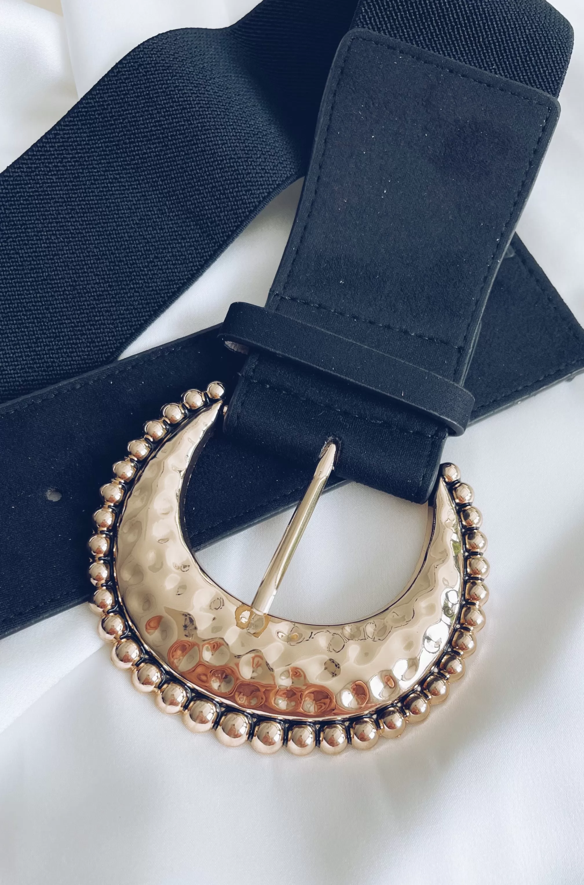 - Golden hammered buckle