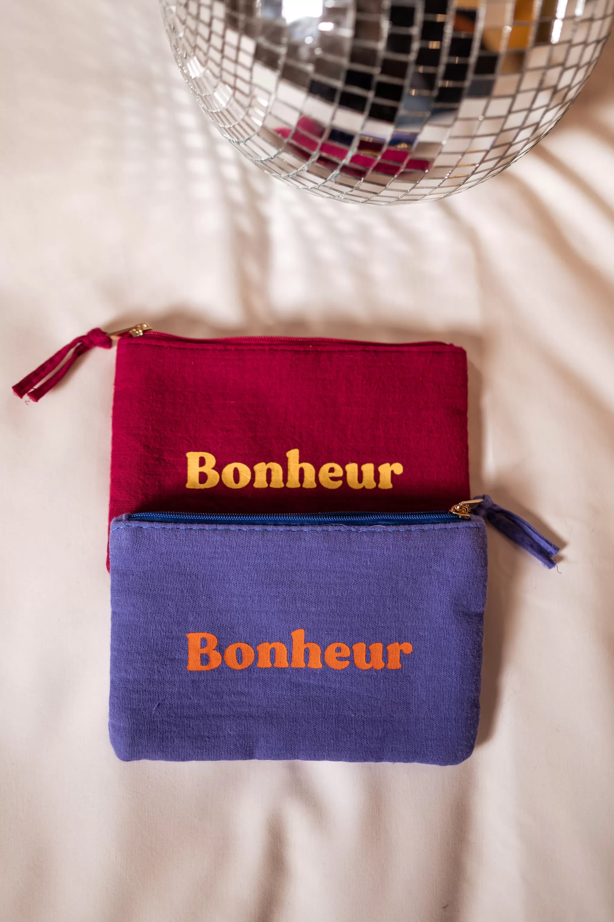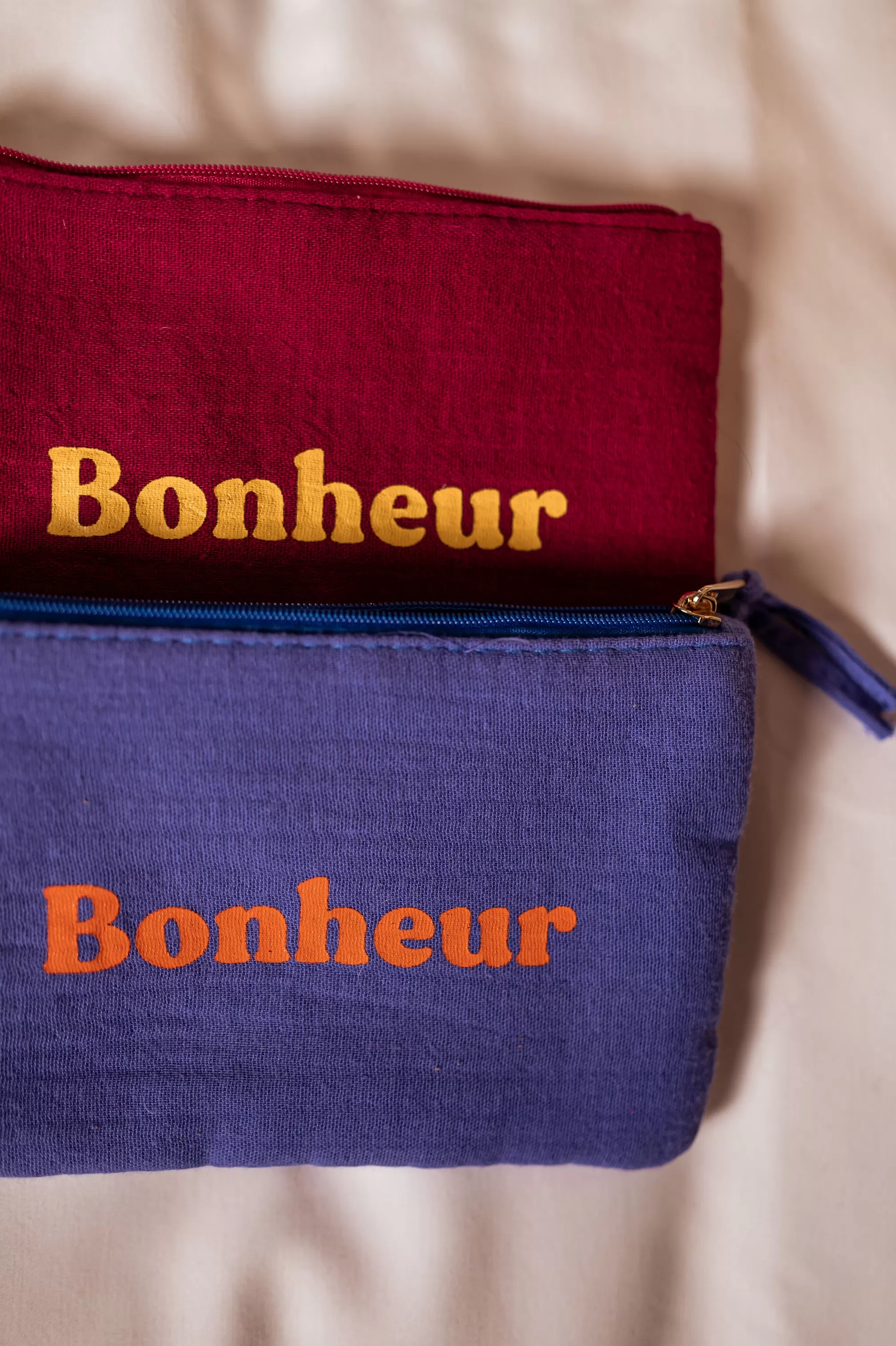 Logo “Bonheur” Majorelle blue background with orange writing “Bonheur” …