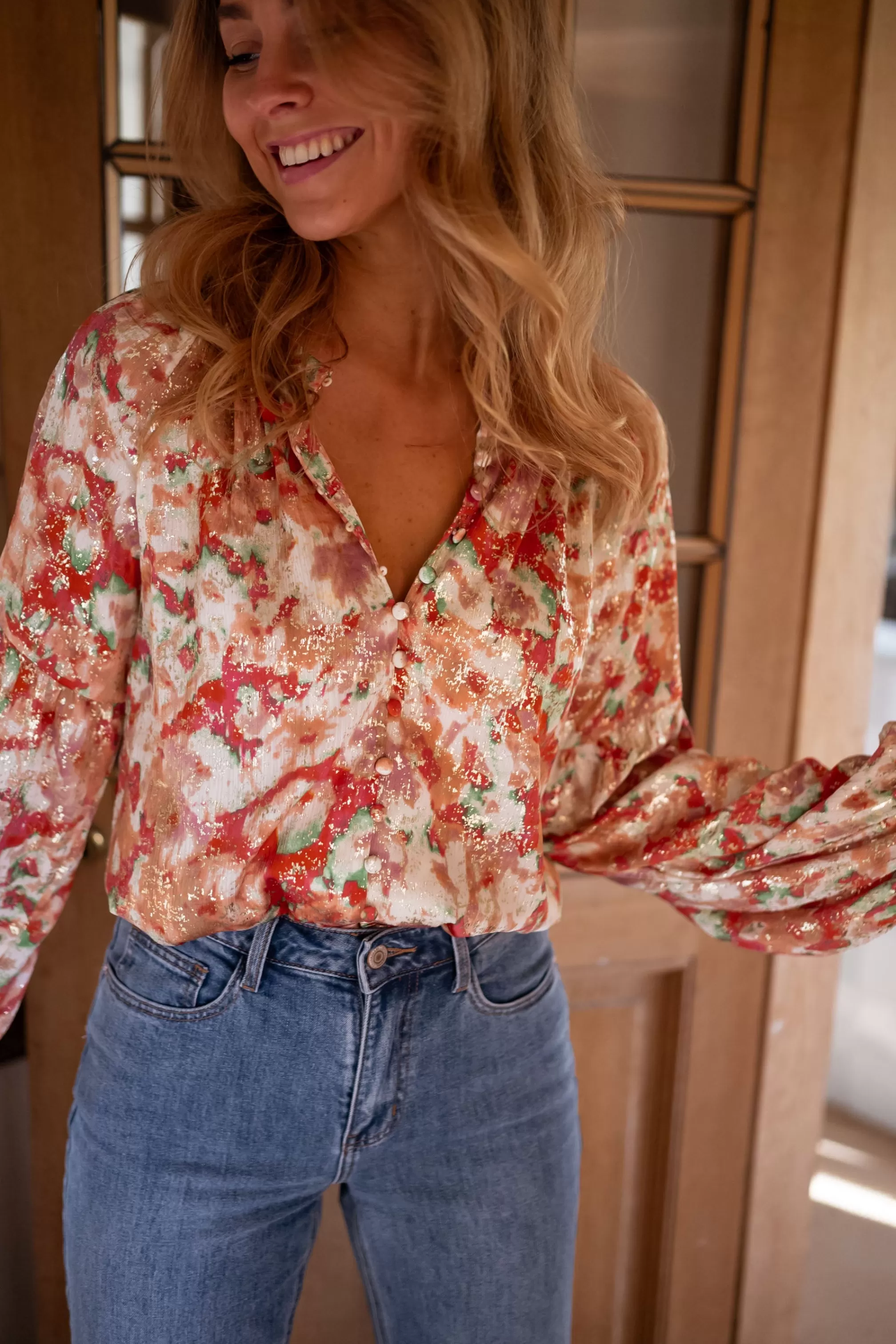 Long sleevesFluidOphelie is 1m68 and wears a size S-MBalloon sleevesButtons all along the blou…