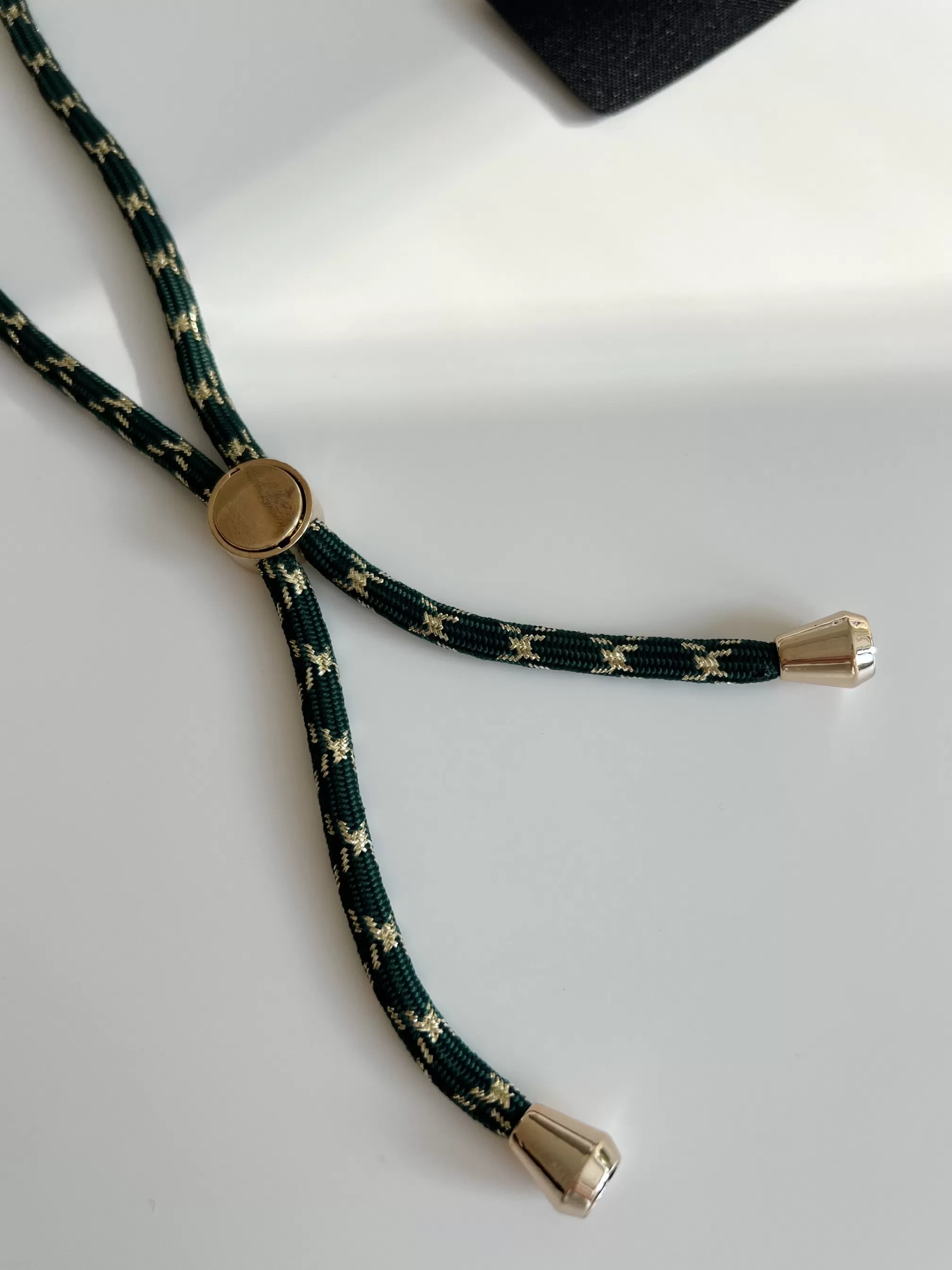- Green lanyard with golden details