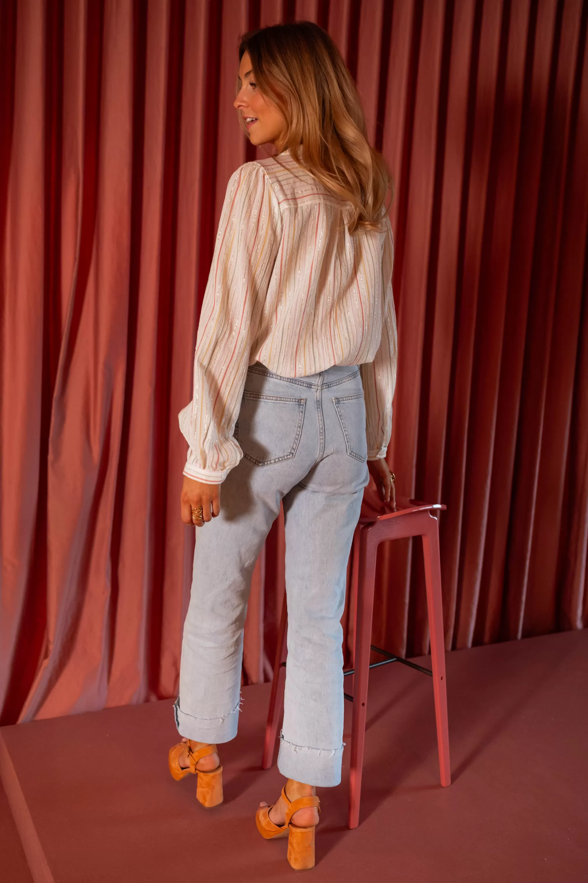 Shirt collarLong sleevesOphelie is 1m68 and wears a size SFluidPastel colored linesSilvery lur…