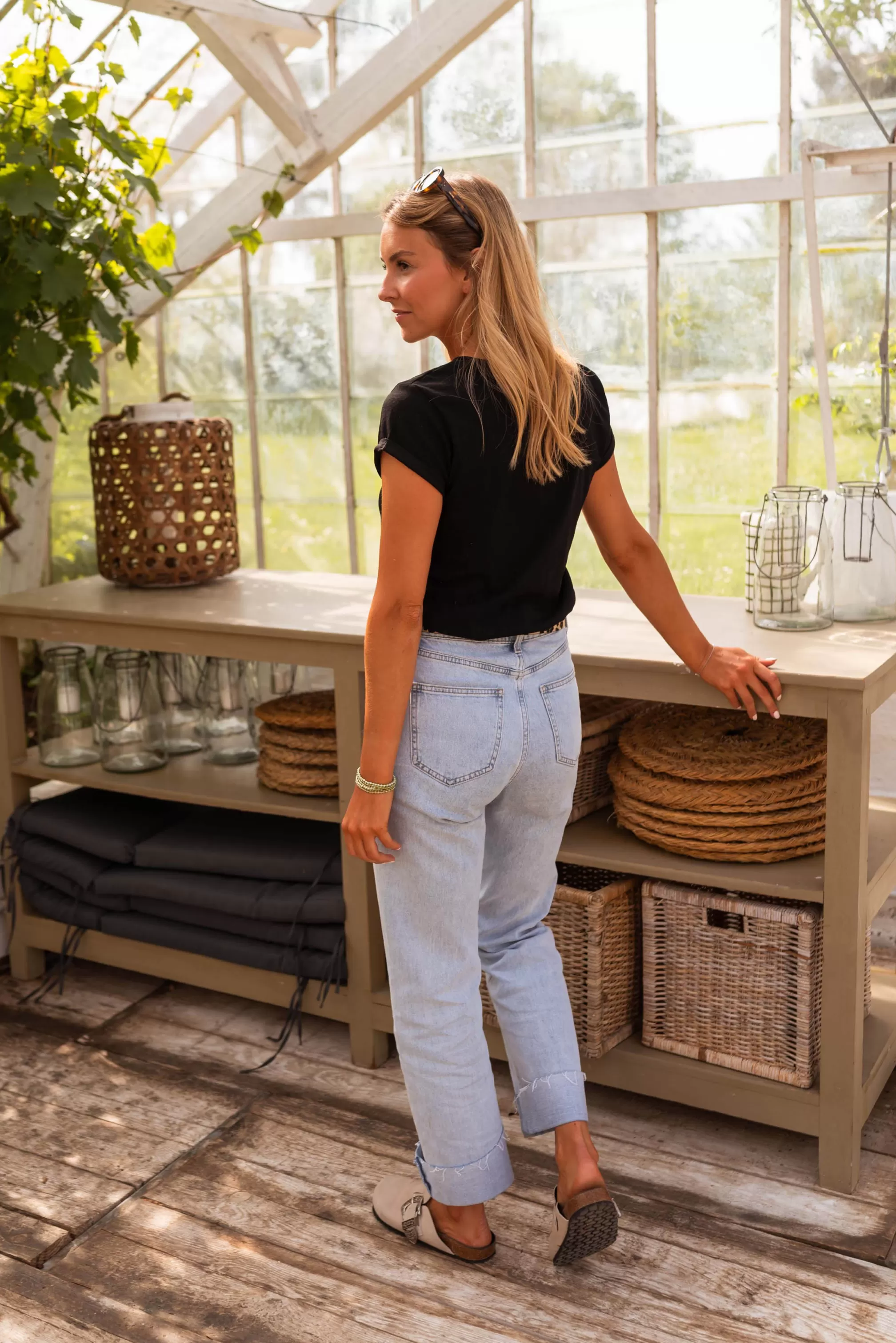 - Short sleeves with turned edges