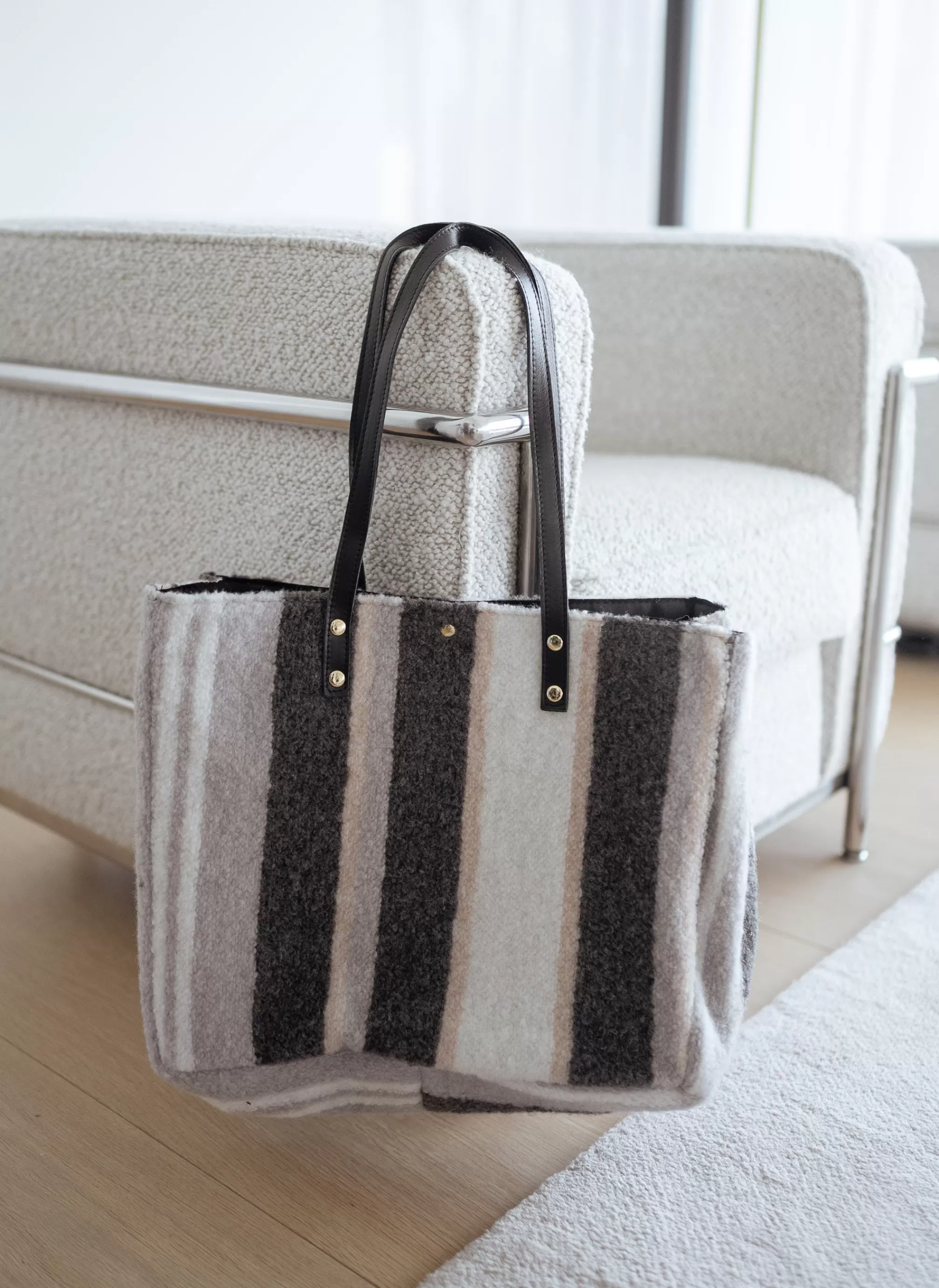 Cabas effectRectangular shapeLeather handleWool effectPocket inside the bag Colors : grey…