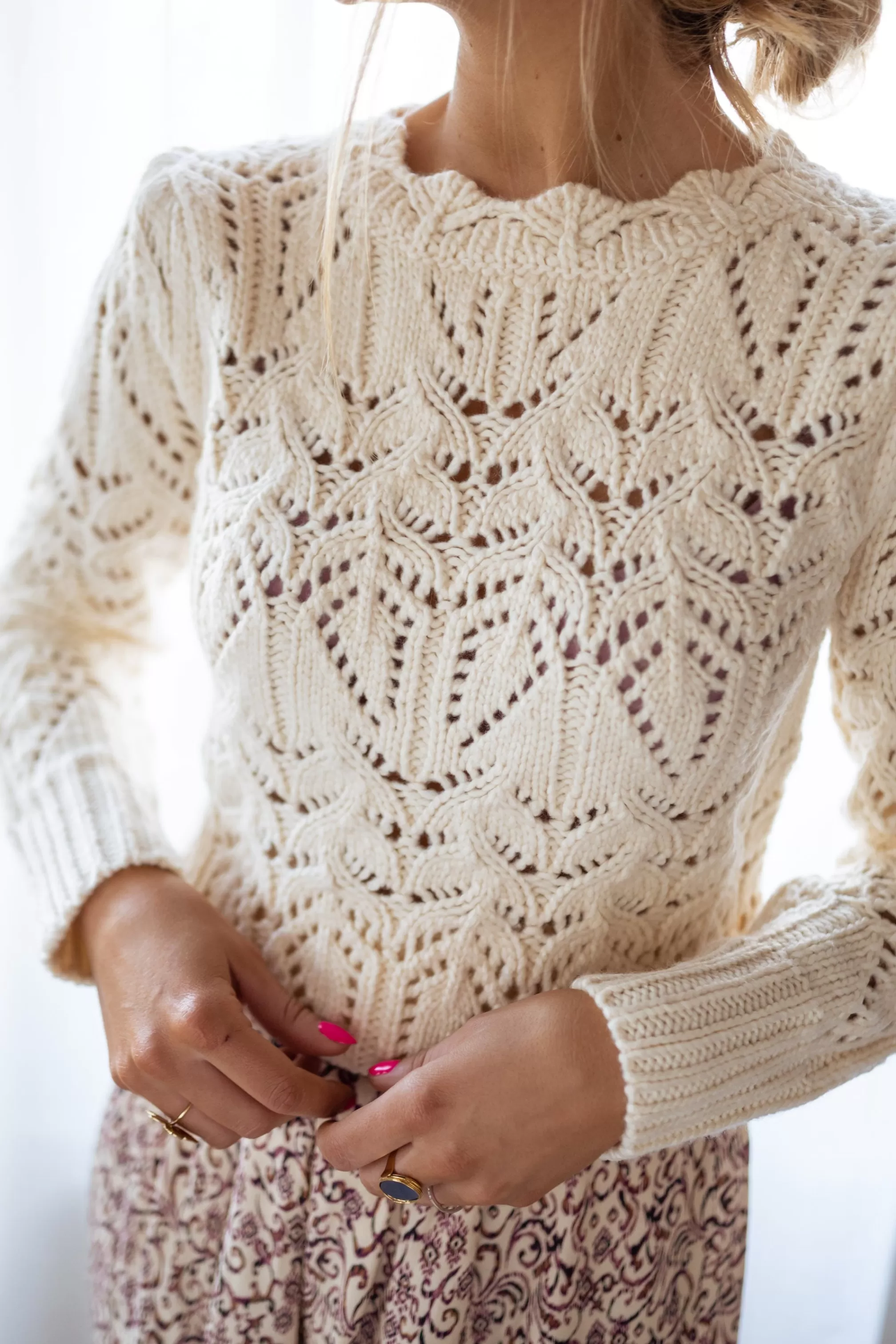 Openwork pattern CrewneckOphélie is 1m68, Larissa is 1m74 and both usually wear a size S…