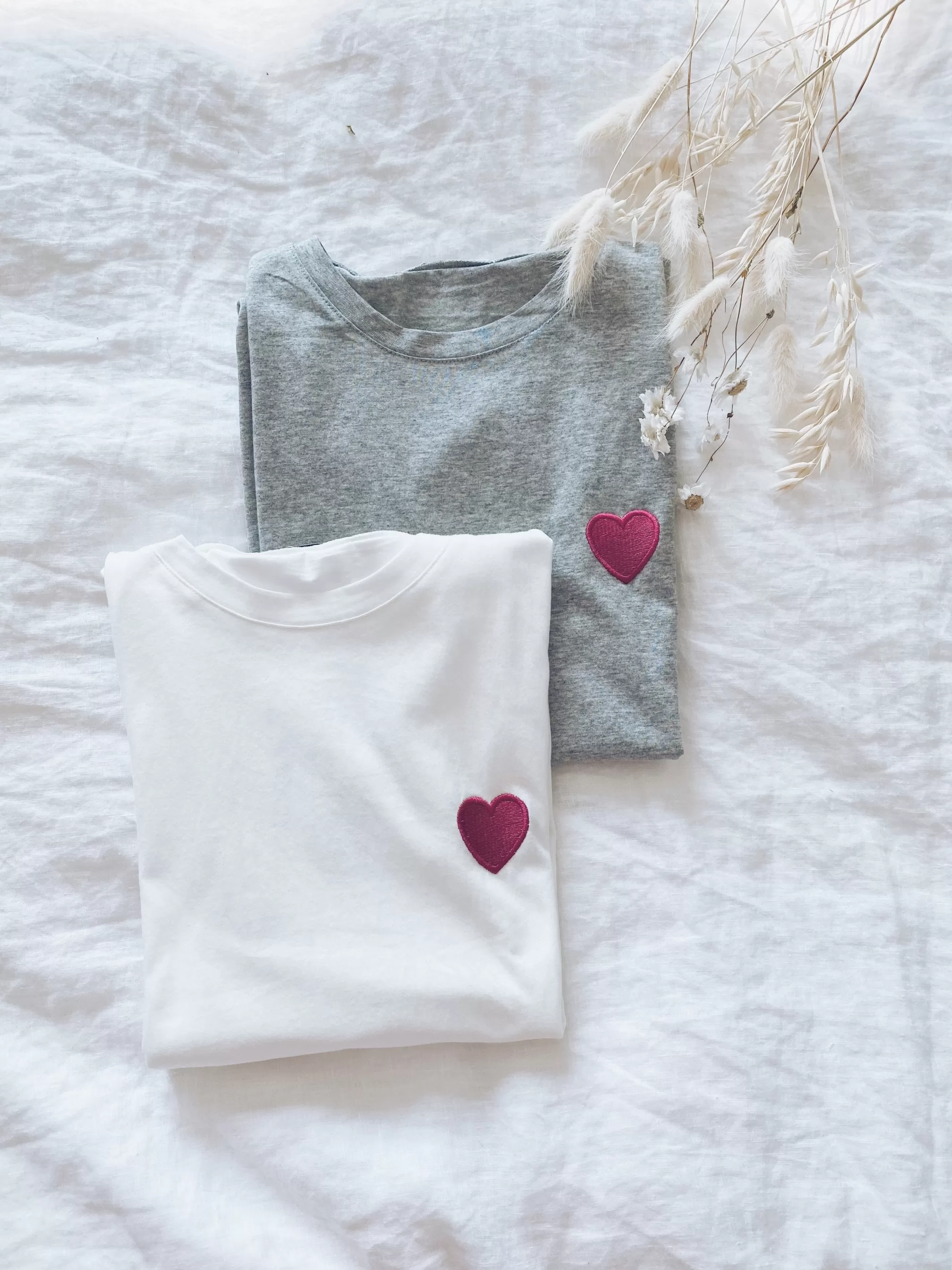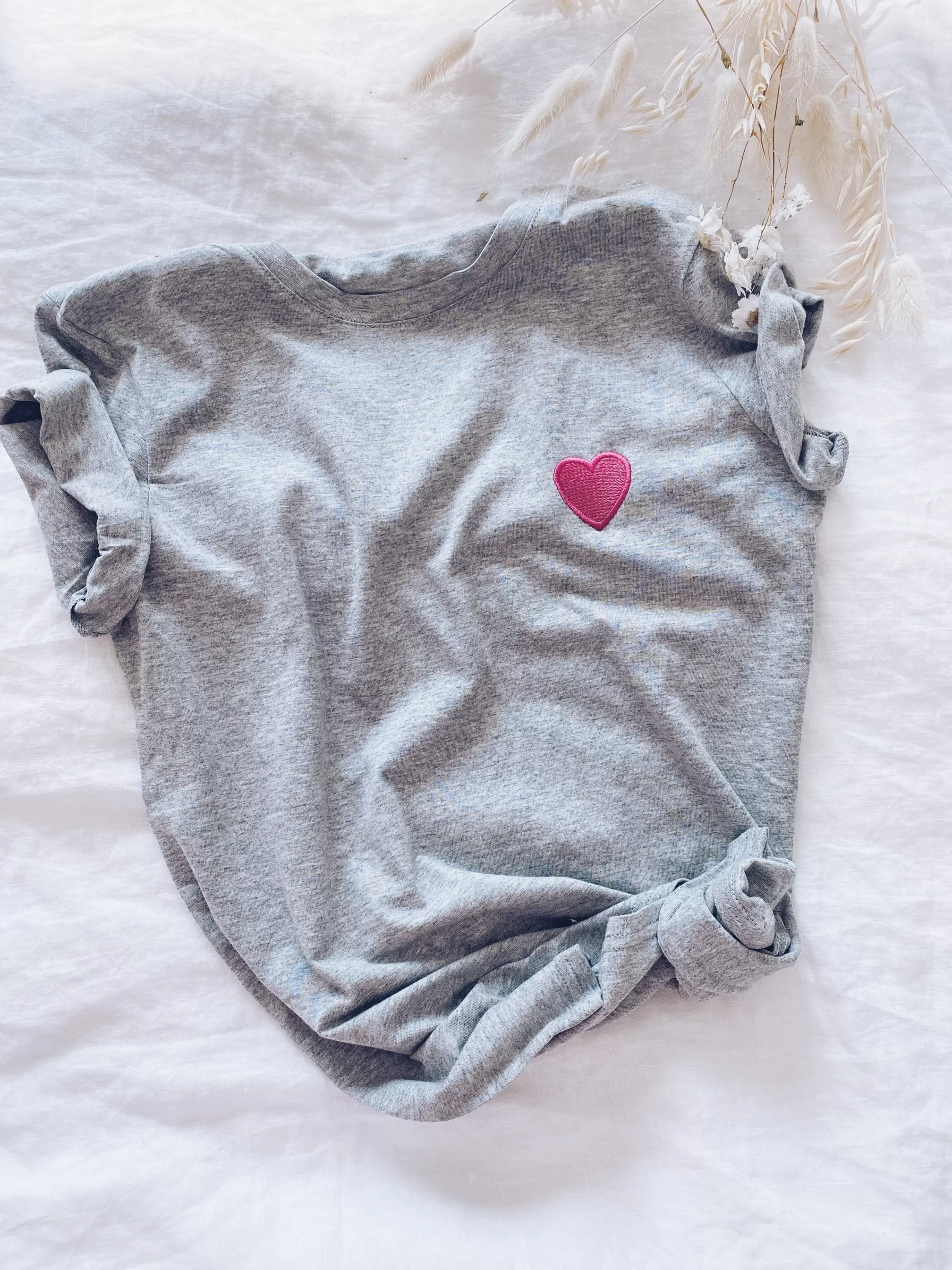 Short sleevesPink heartRound collarColors: White – GraySizes: S-M / M-LS-M : Length 62 cm – Wi…