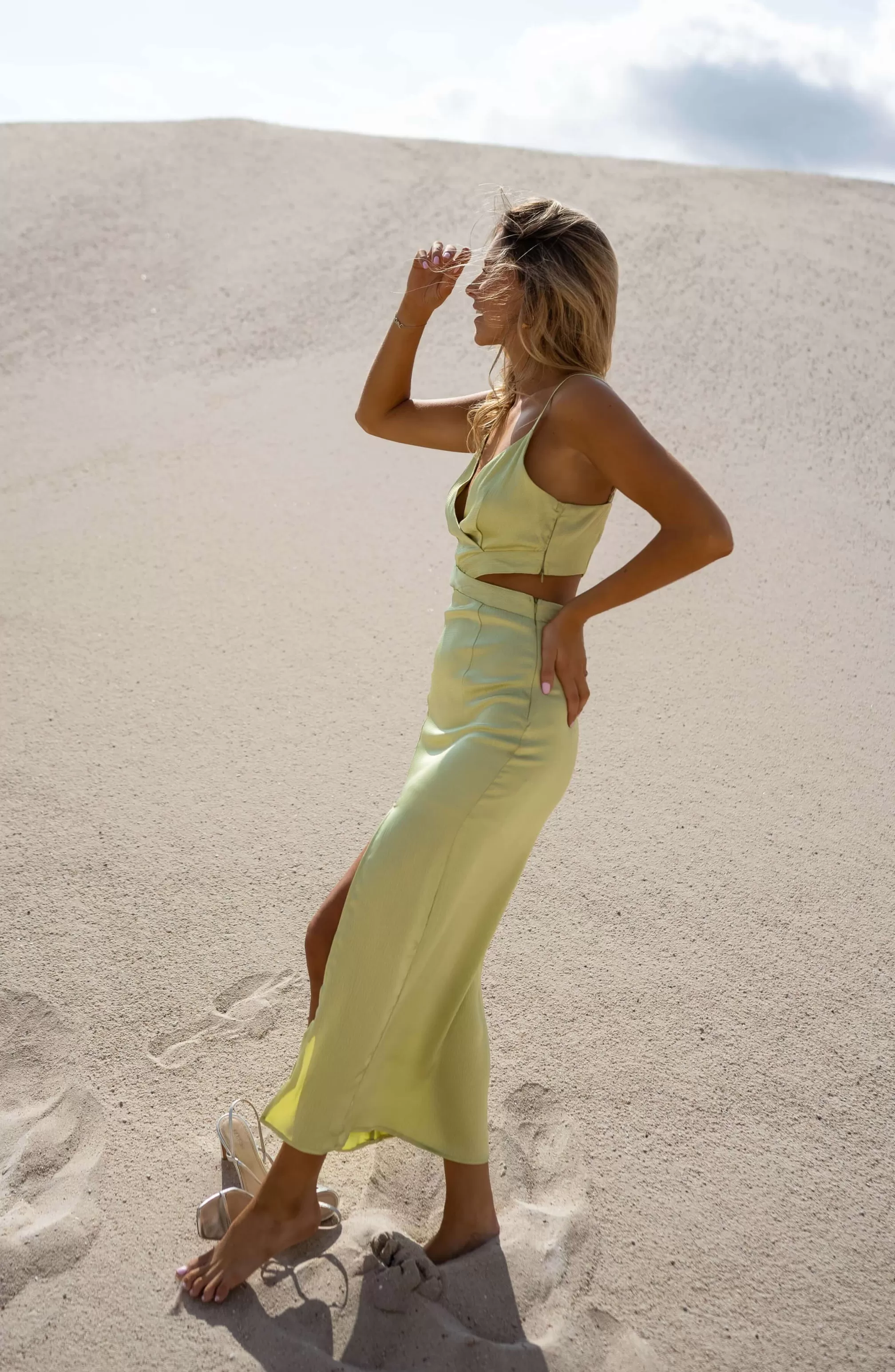 - Side zippers at bust and skirt
