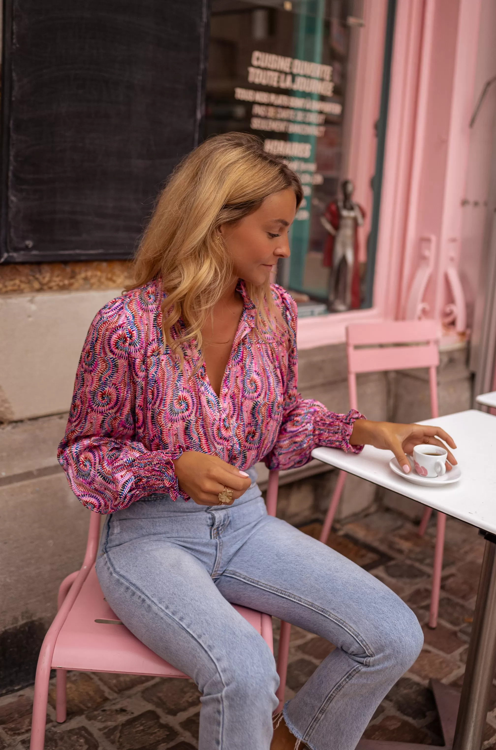 Long sleevesElastic at the wrists Buttons all along the blouse Silk effect Patt…
