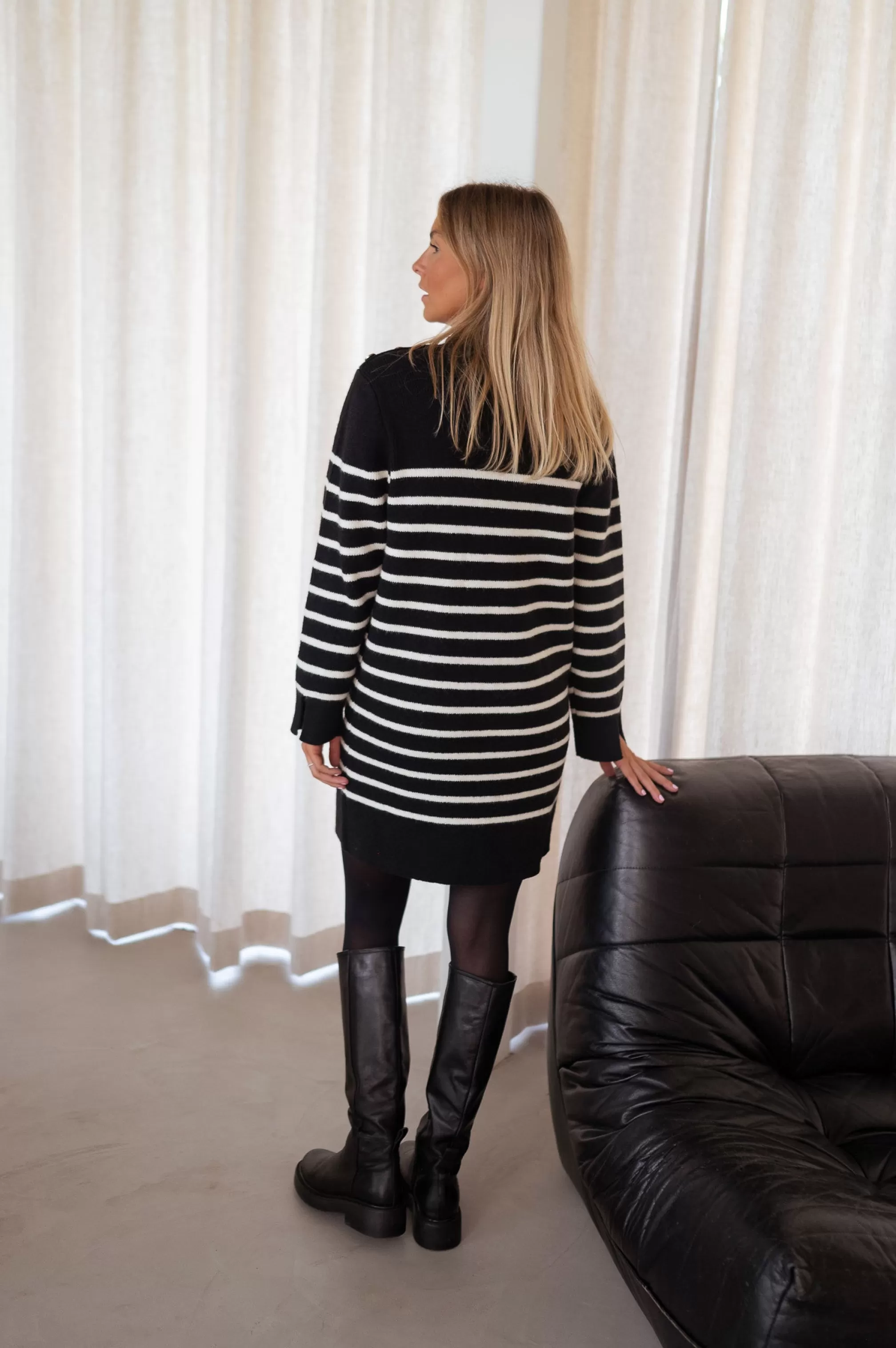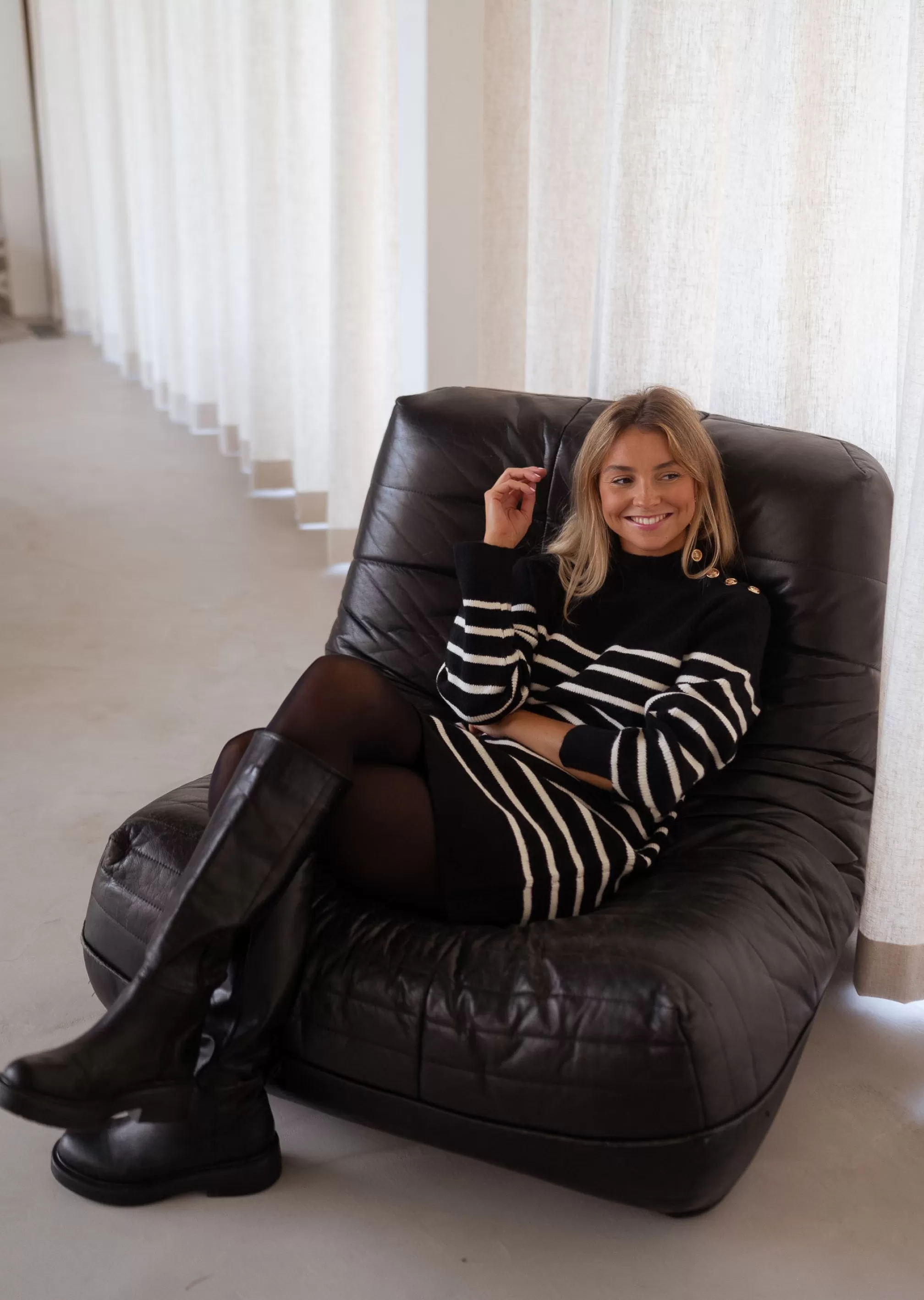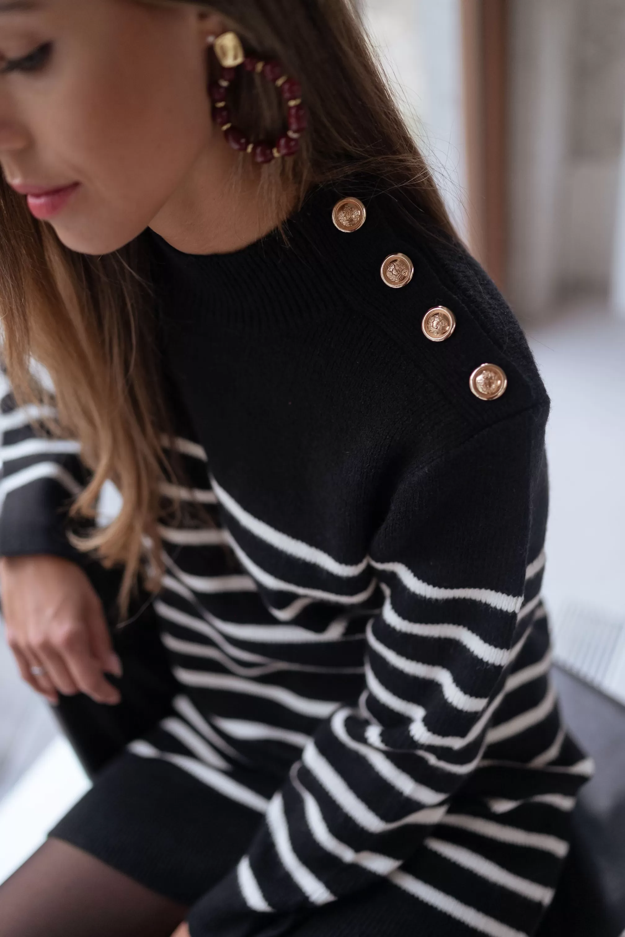 Long sleevesMockneckGolden buttons on the shoulder Black background with ecru linesOne si…