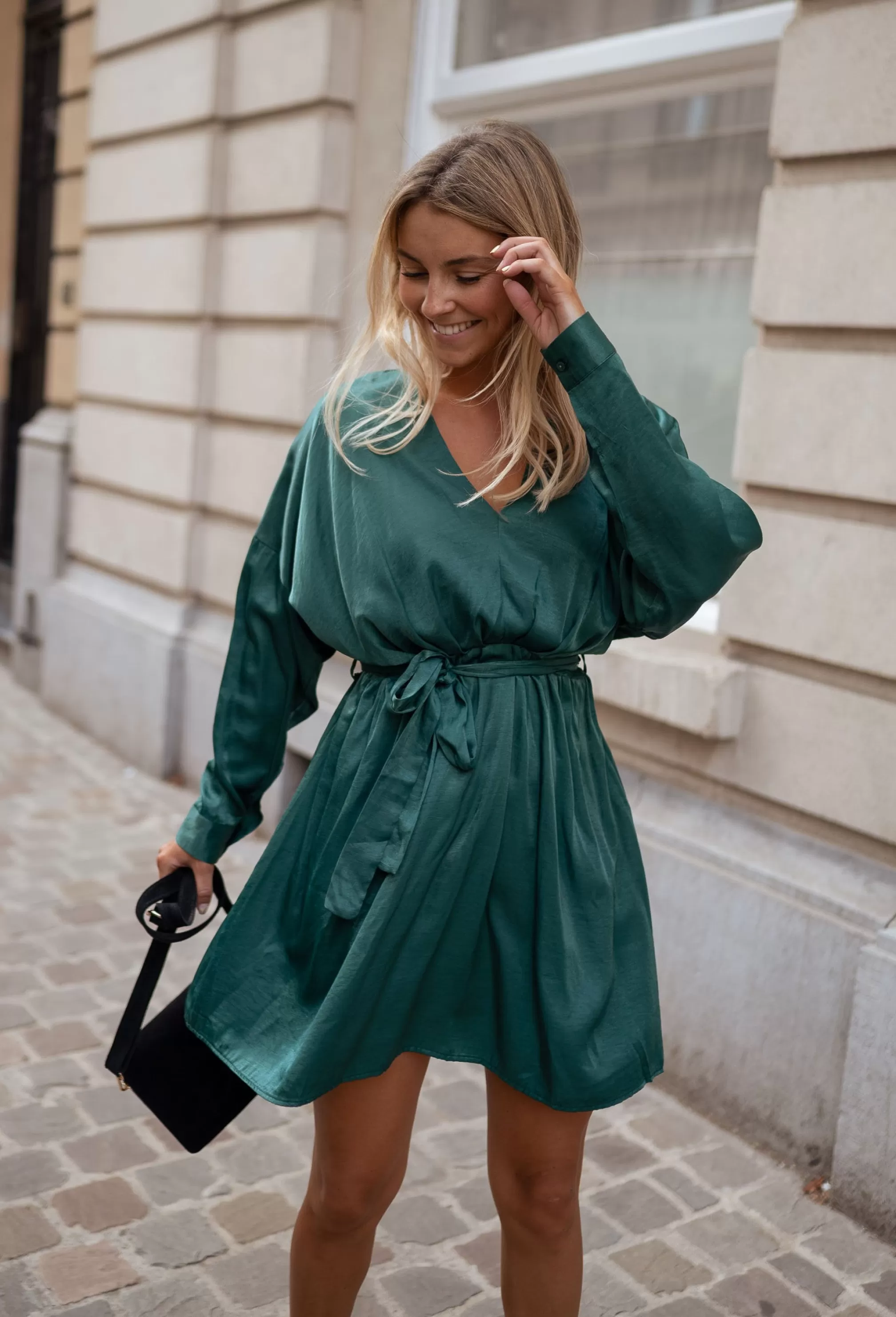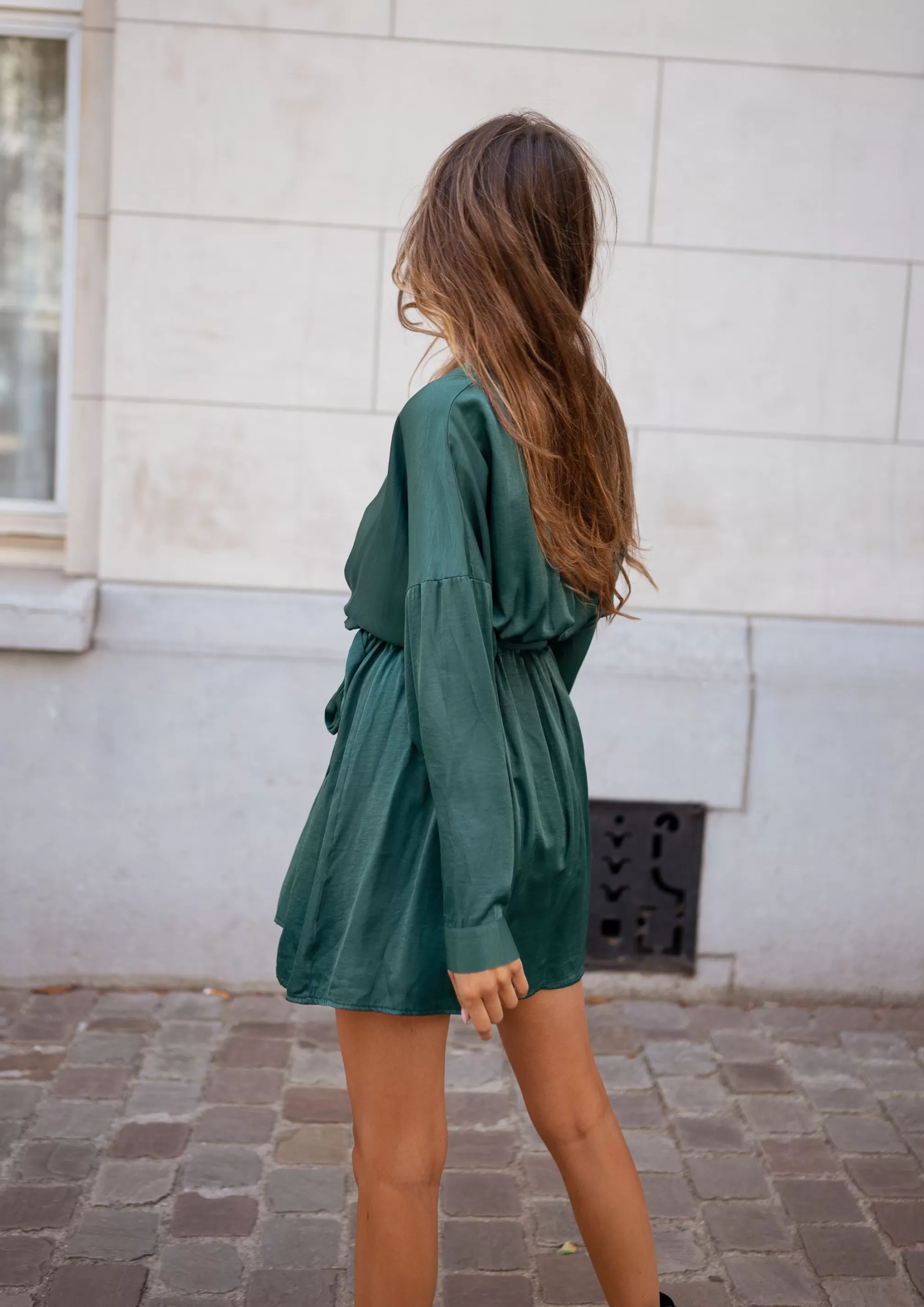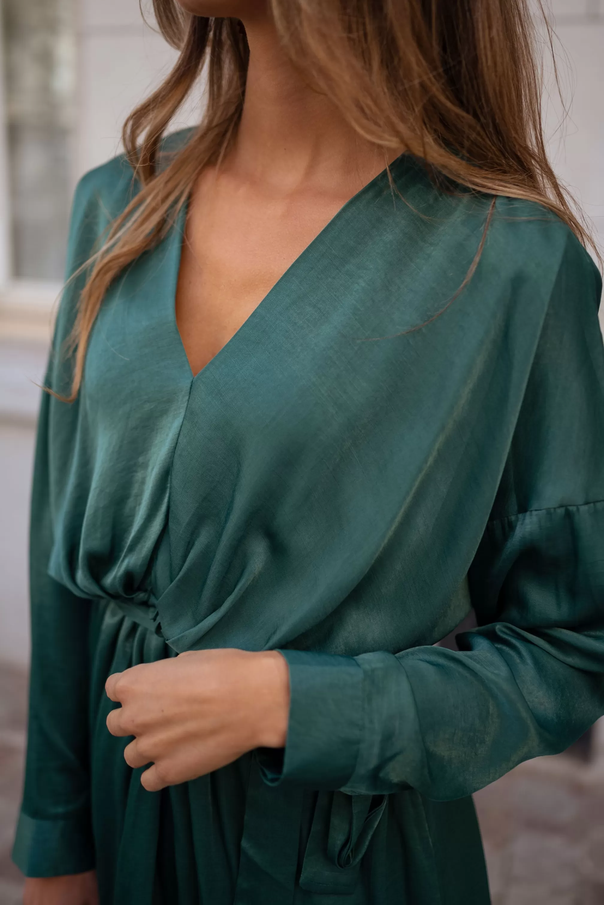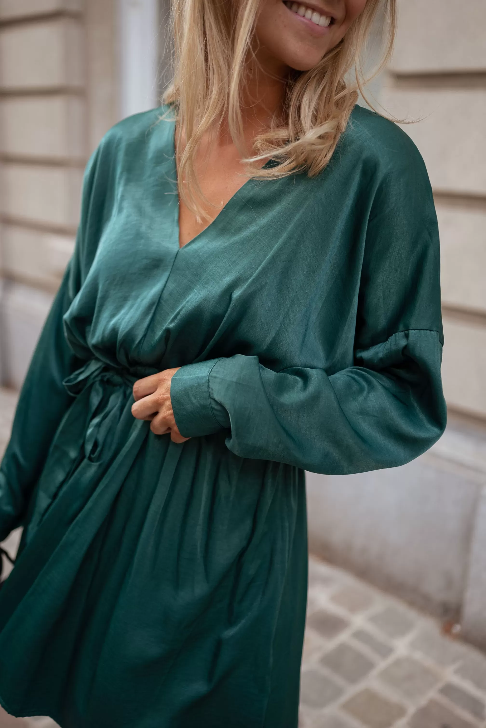 Long sleevesV-neck Belt provided Slightly flared sleevesNot linedElastic in the back…