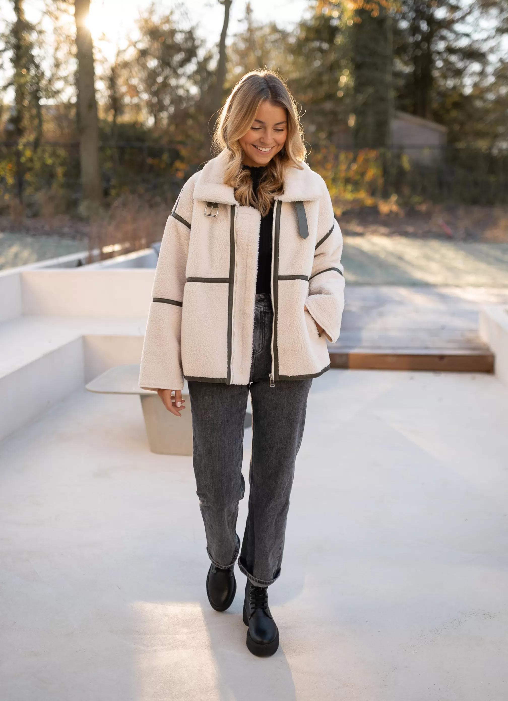 Long sleevesKhaki finish SOFT Warm coat LooseLined Silvery finishColors : …