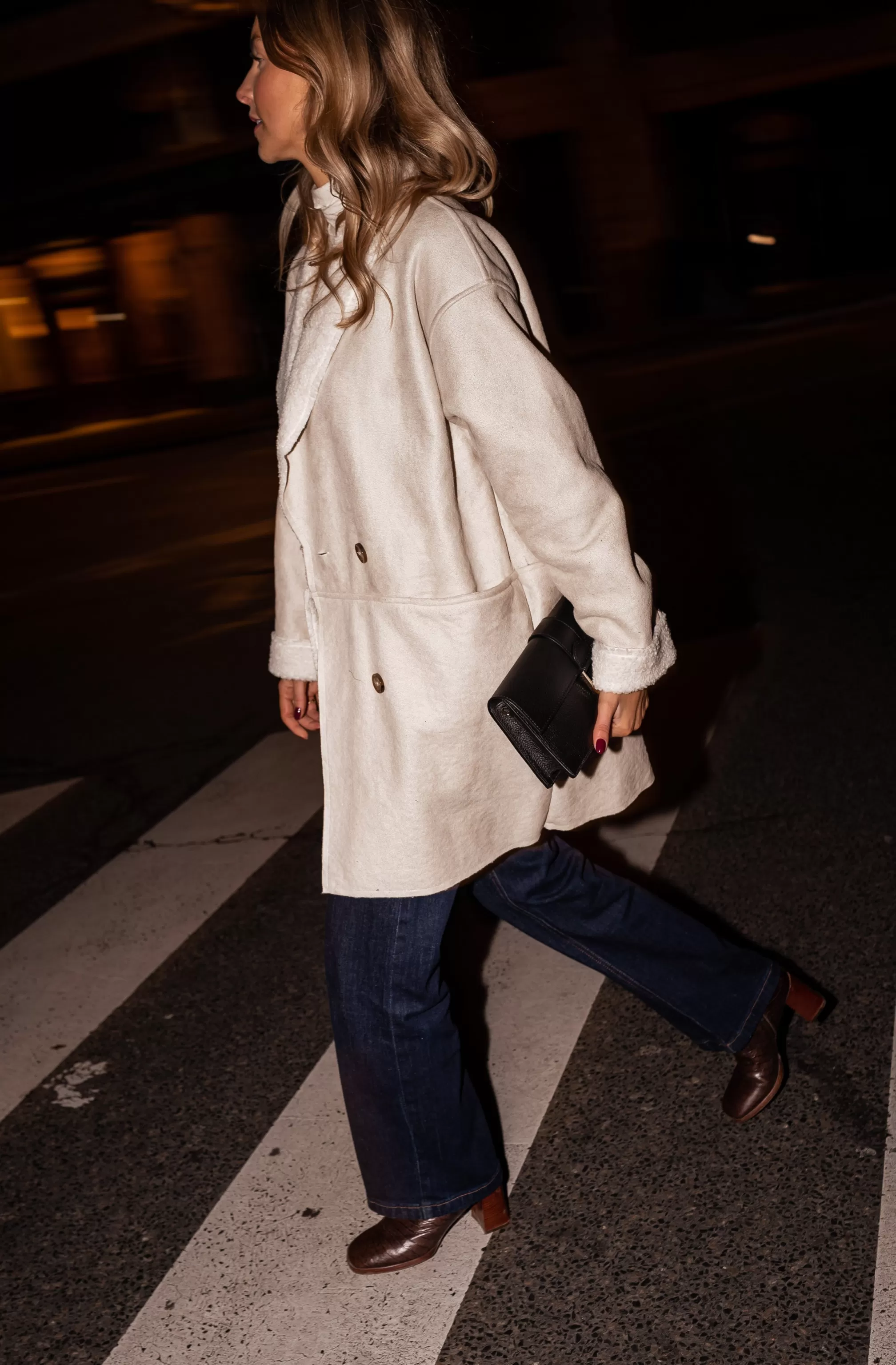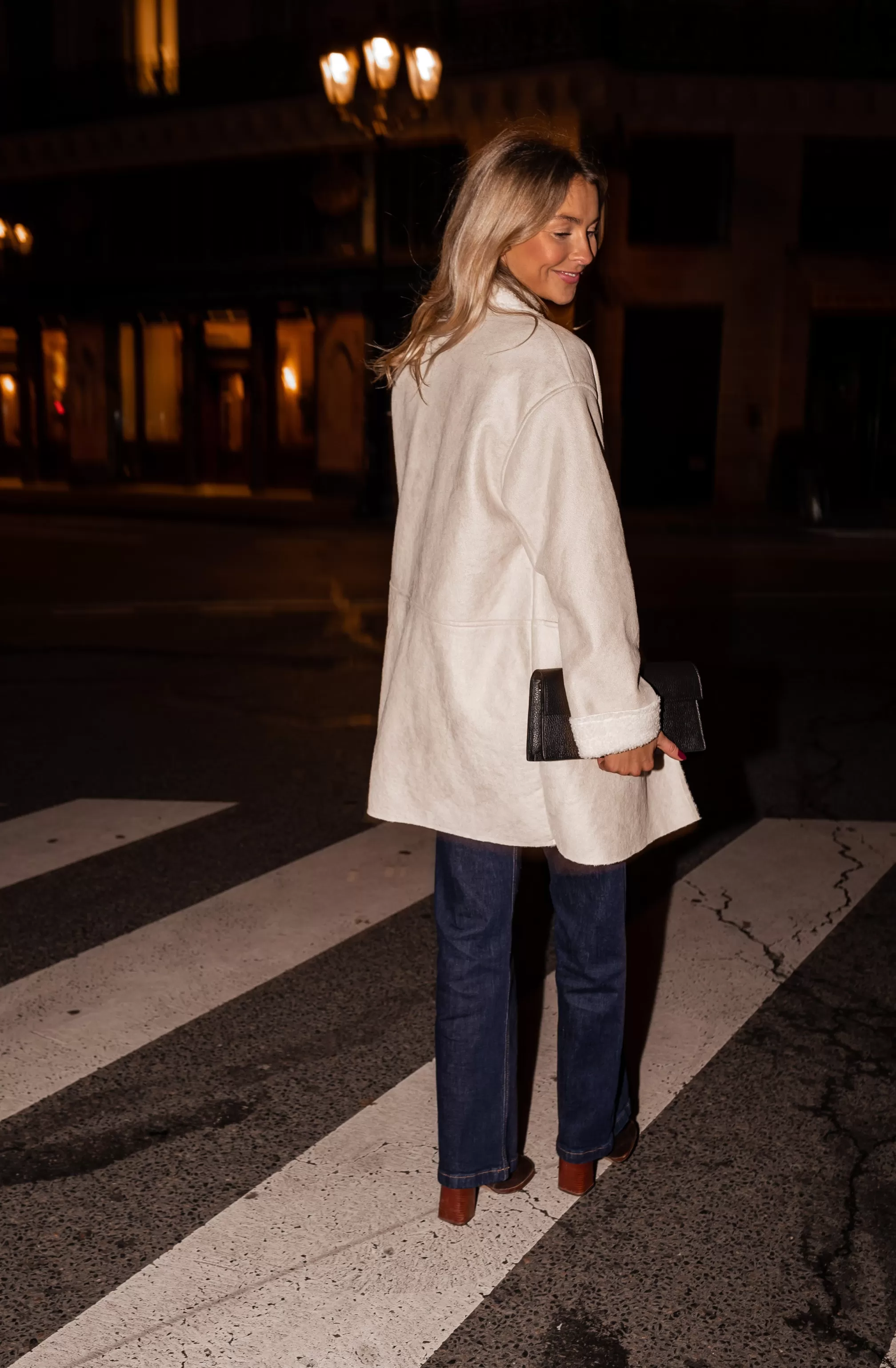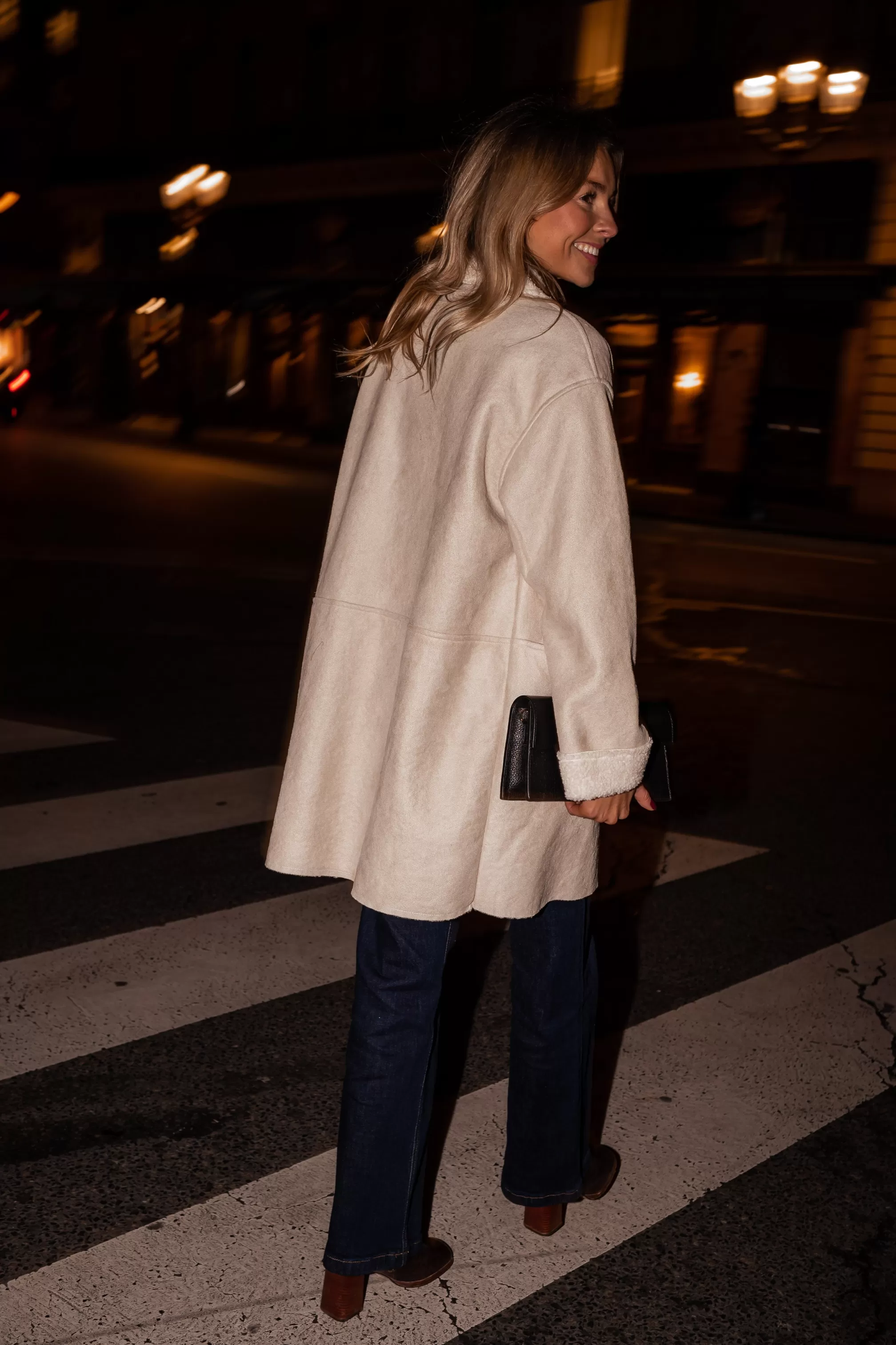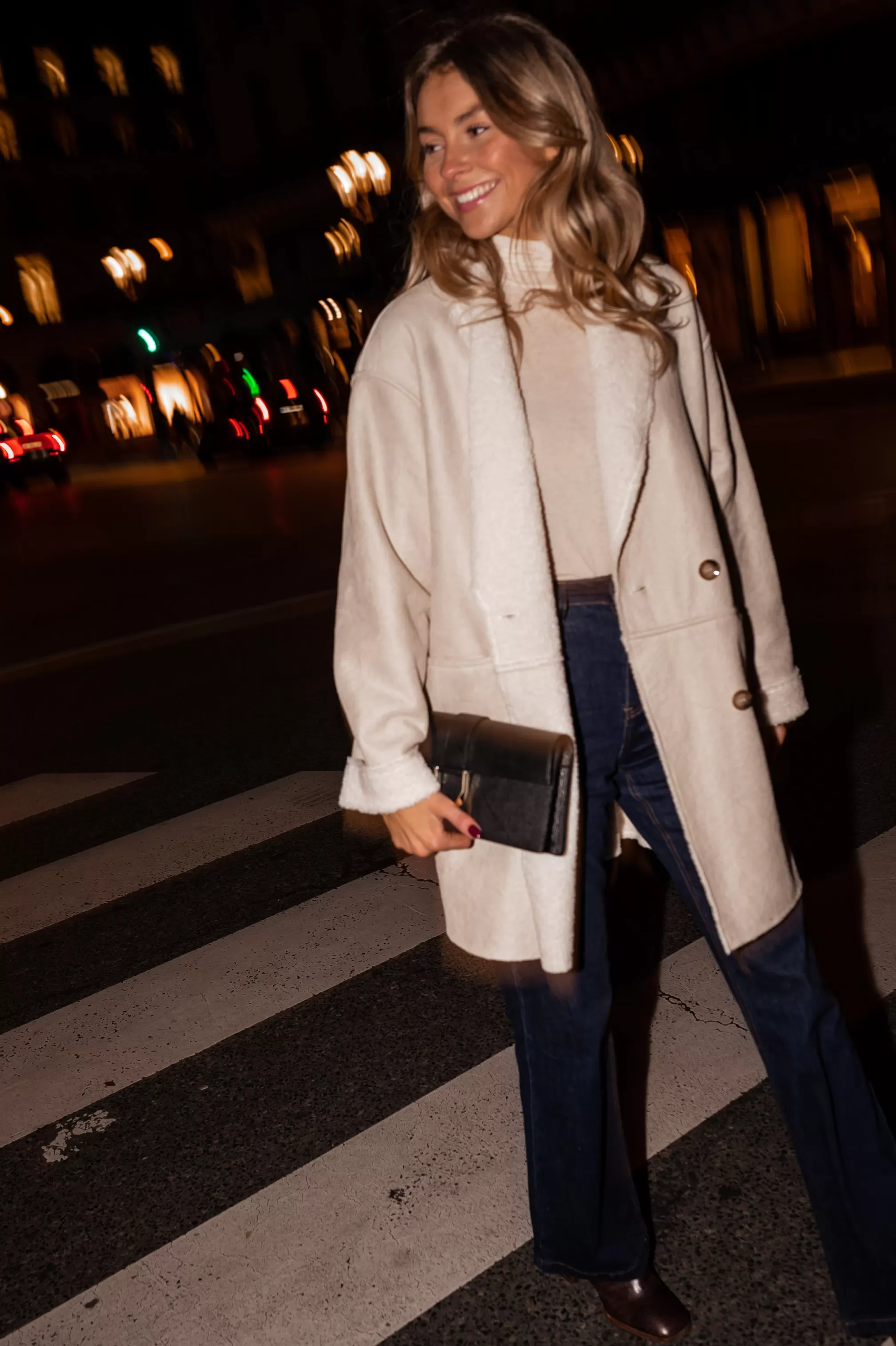 - Beige faux sheep fur coat