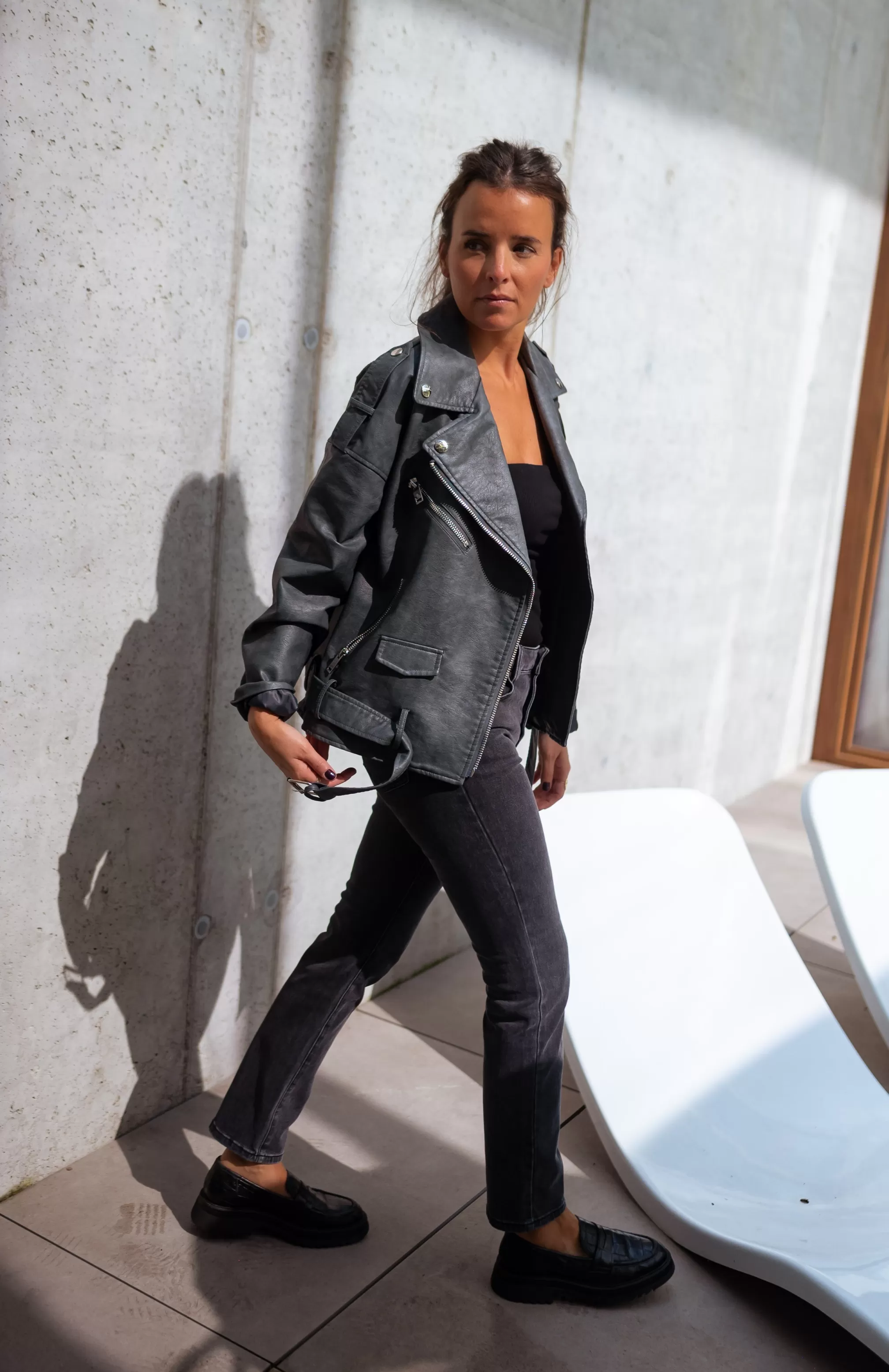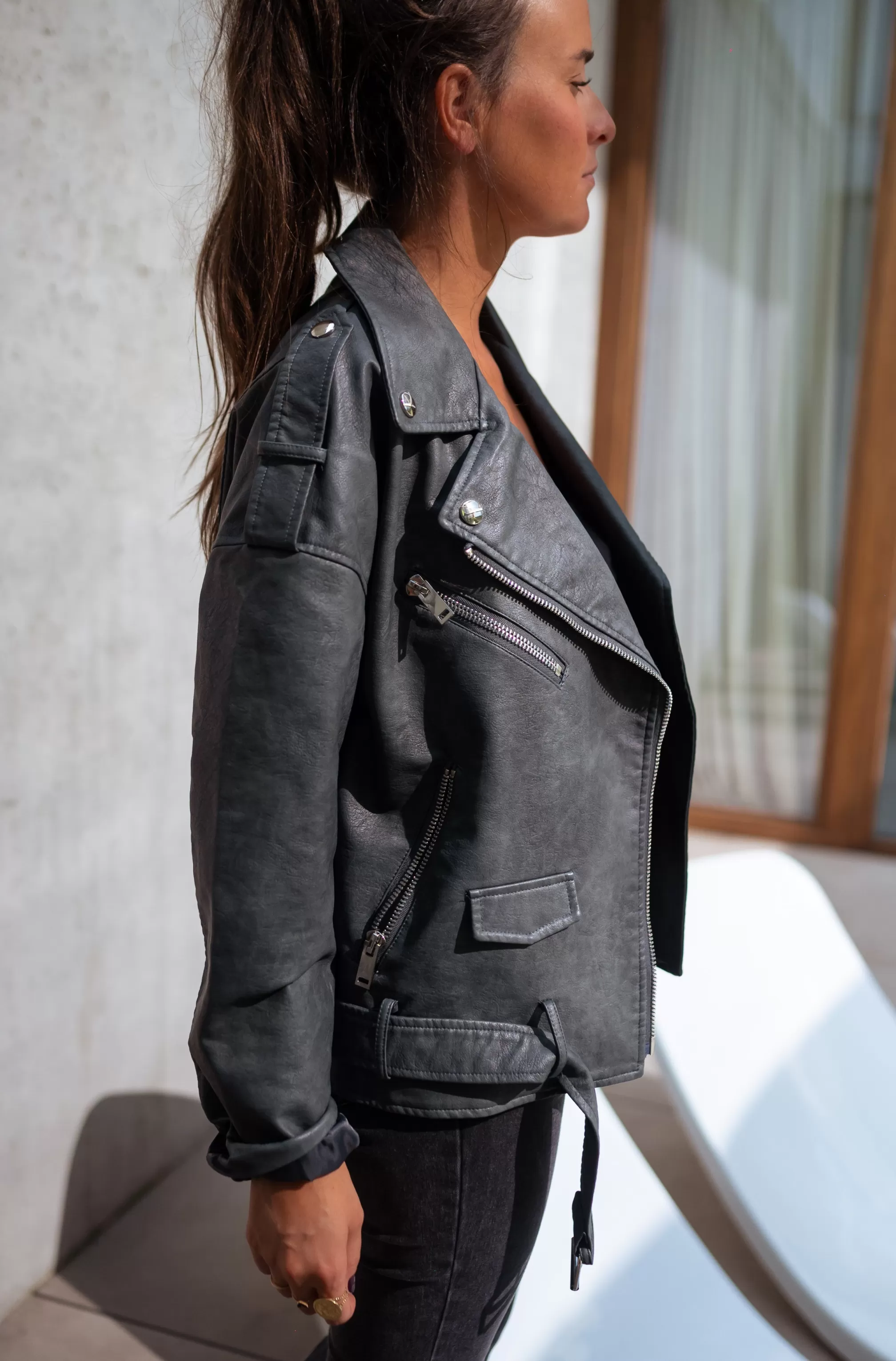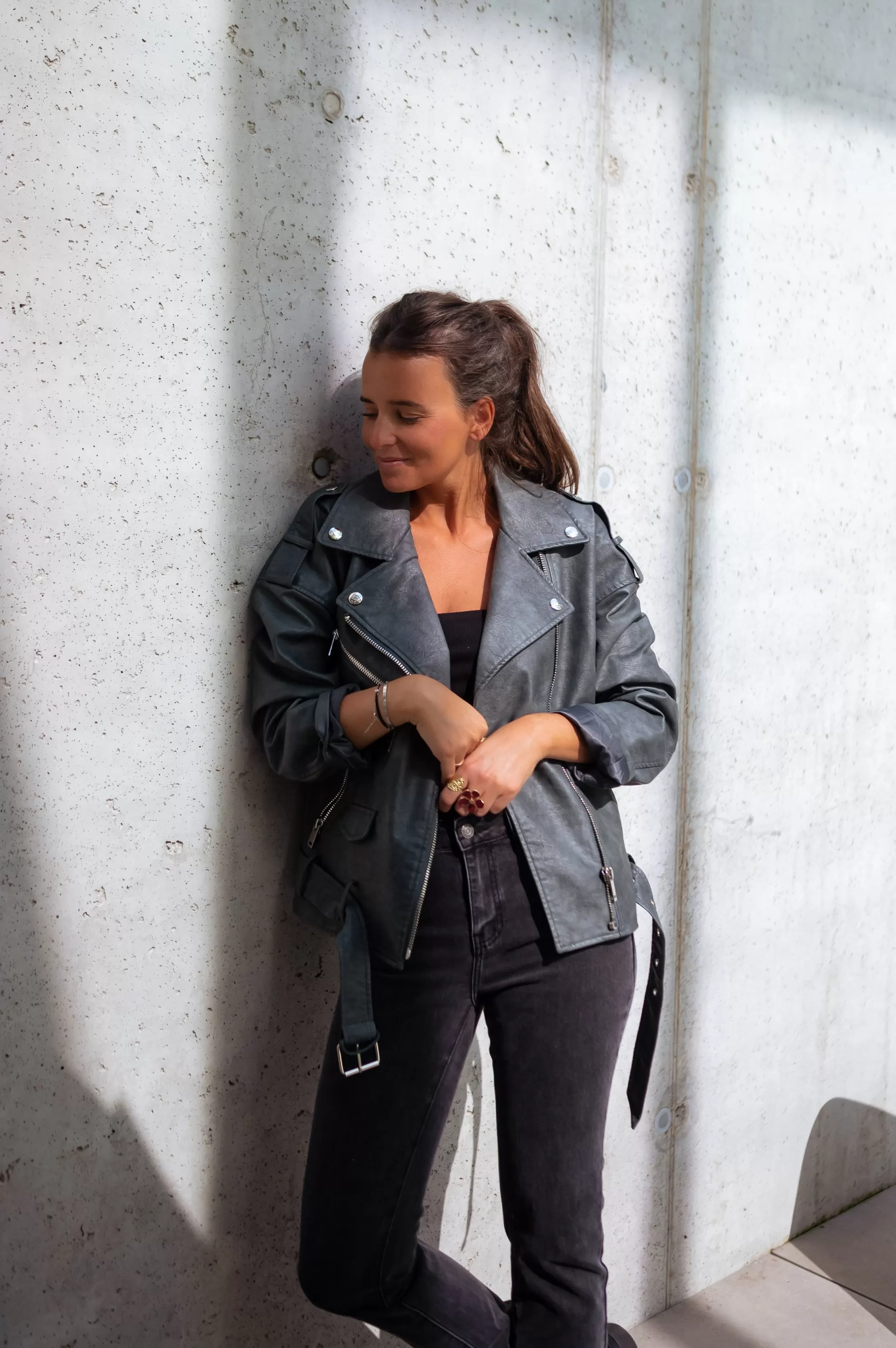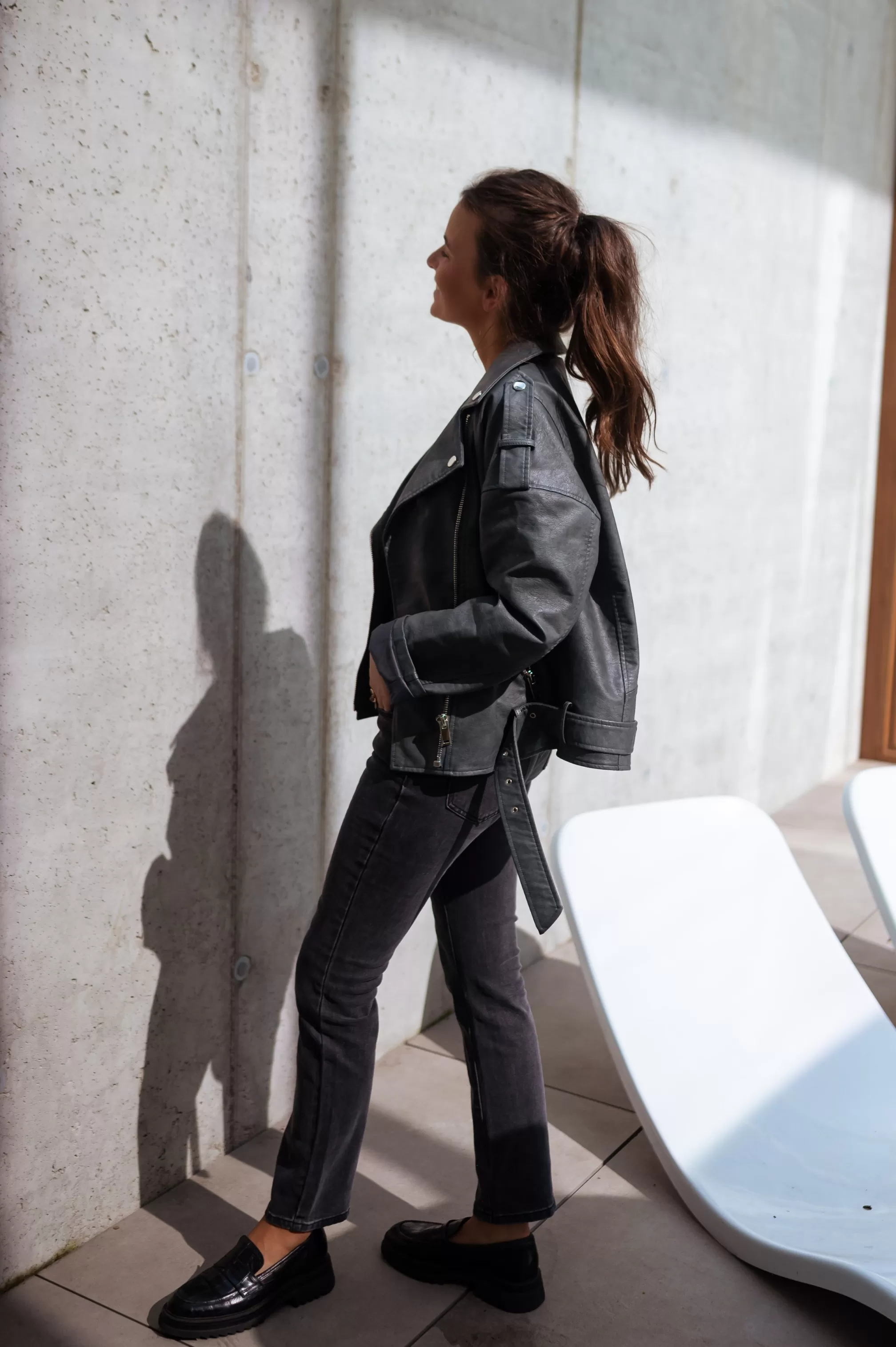Long sleevesLeather effectSoft LinedSilvery buttons and zipperSlightly looseBelt at the b…