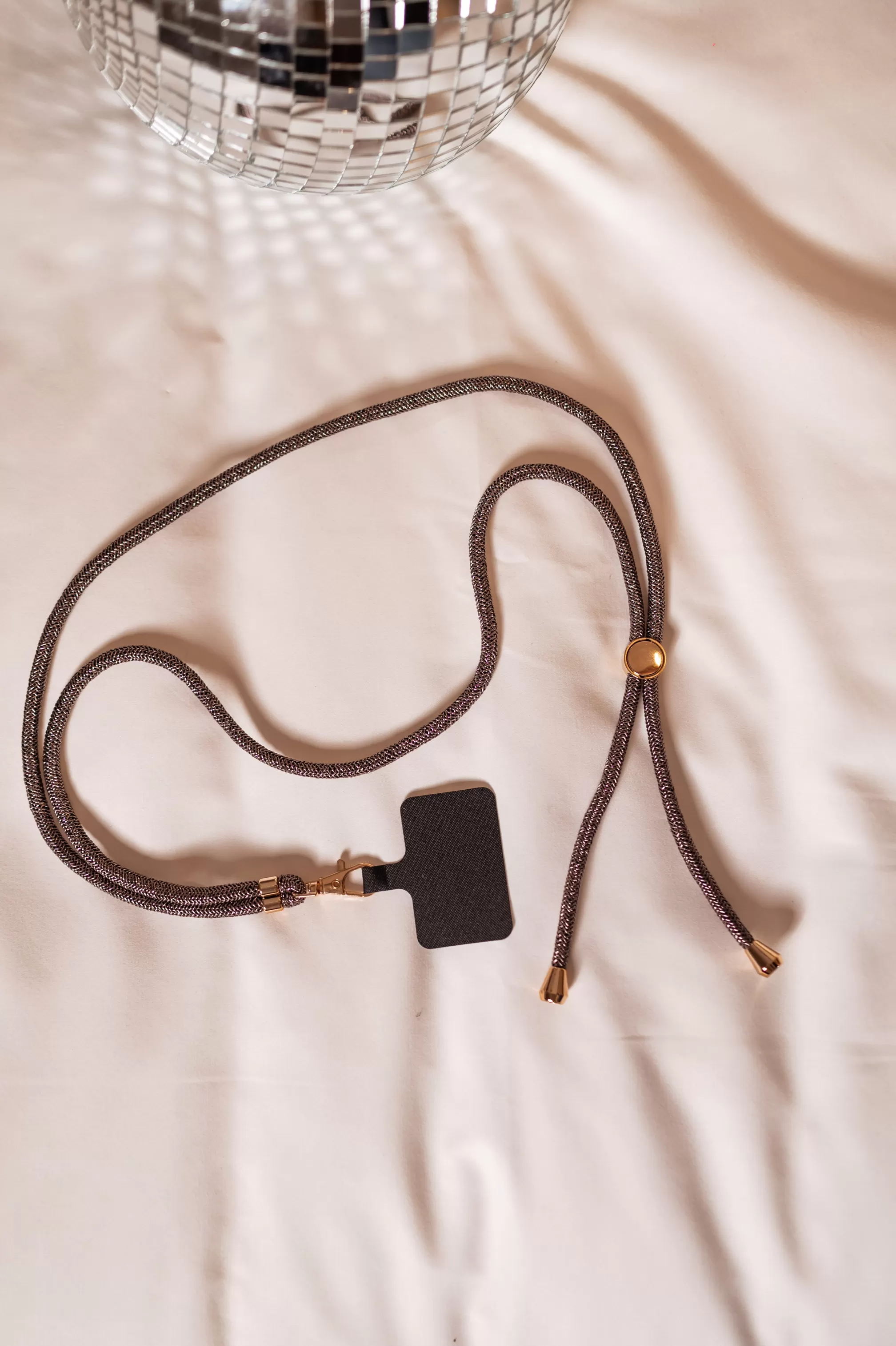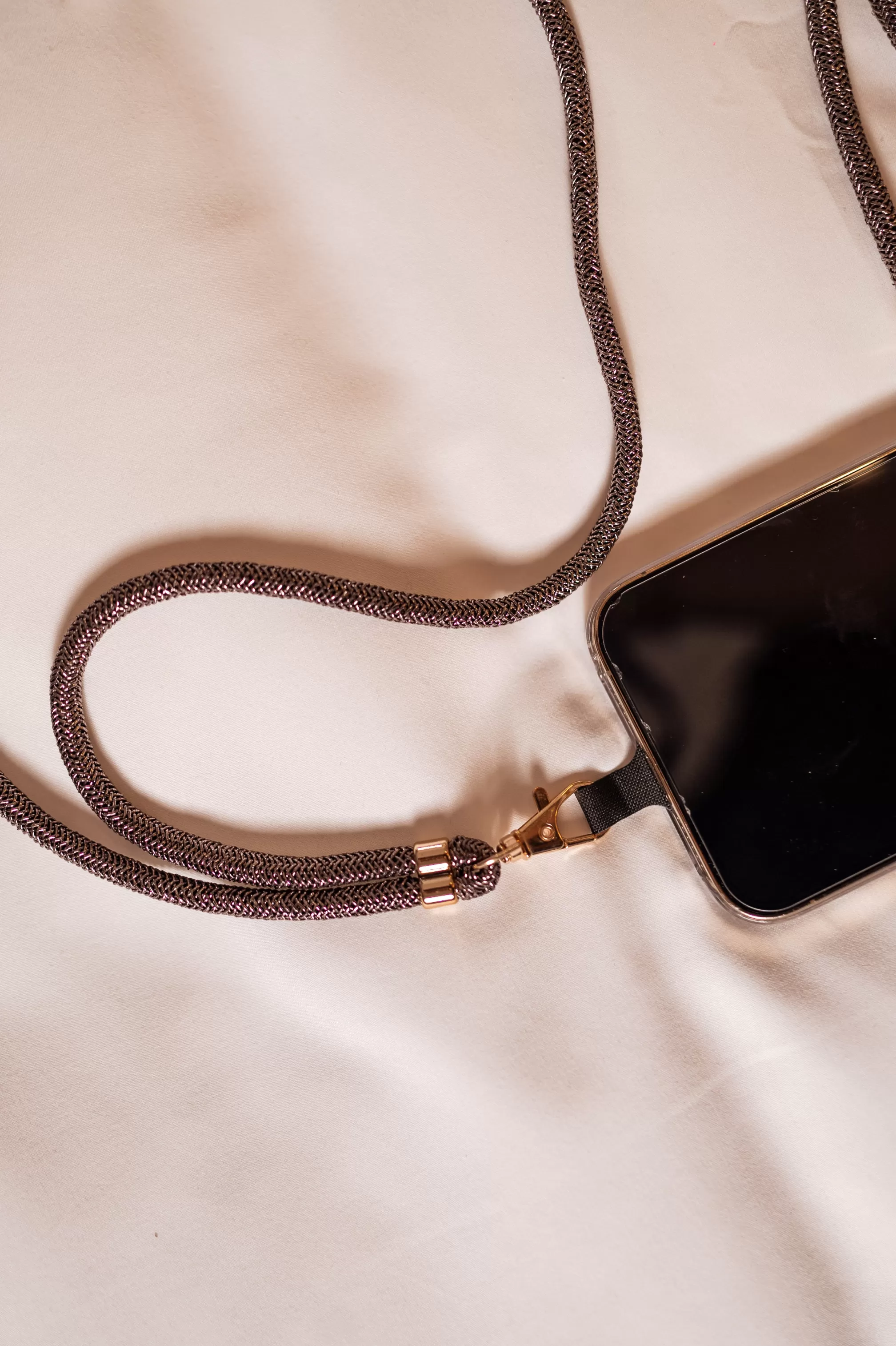 Soft braided lanyardSilvery finishClear plastic to insert in the phone case in order to use th…