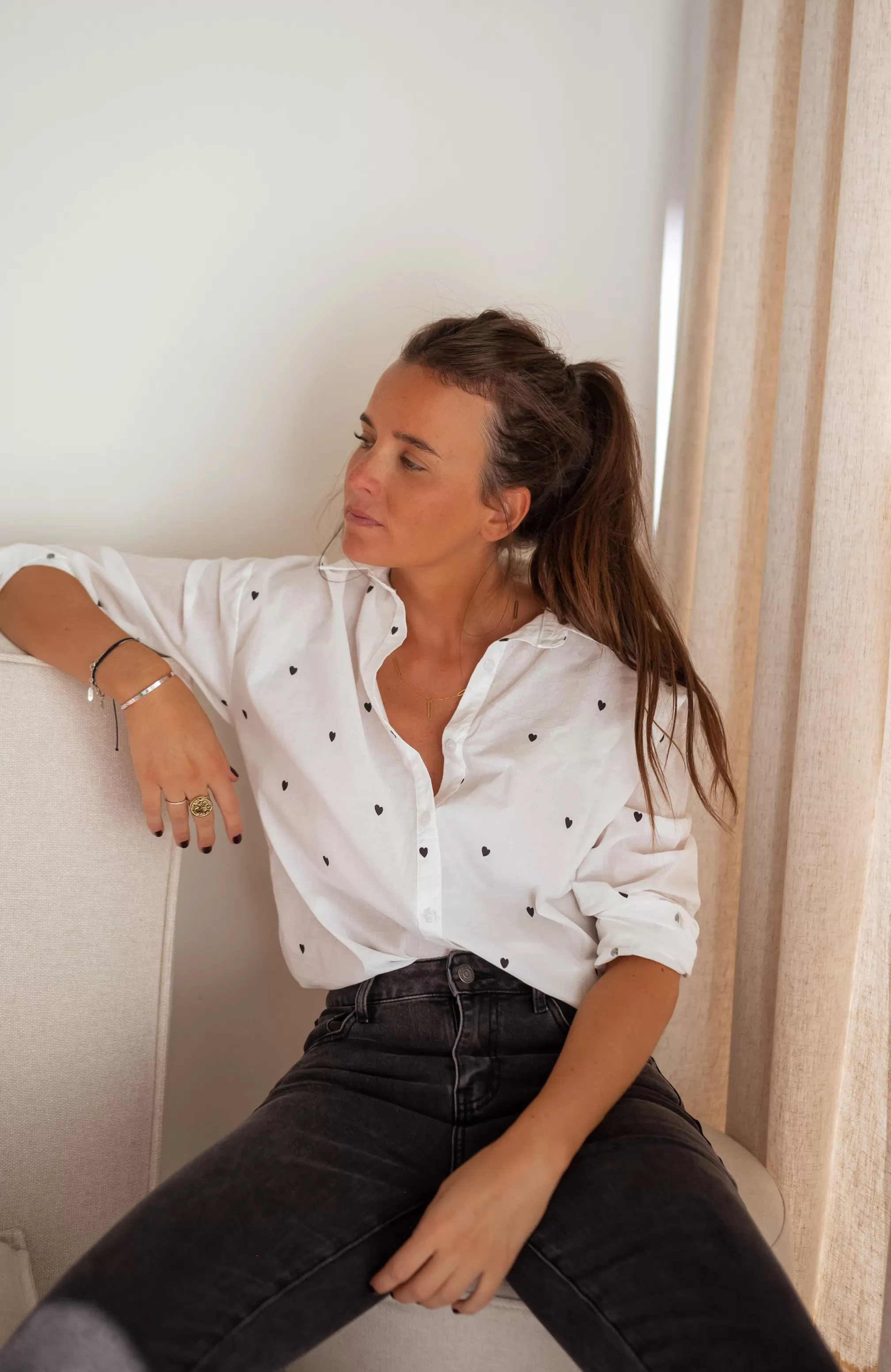 Long sleeves Black hearts Buttons all along the shirt Bralette recommended flesh color Sizes:…